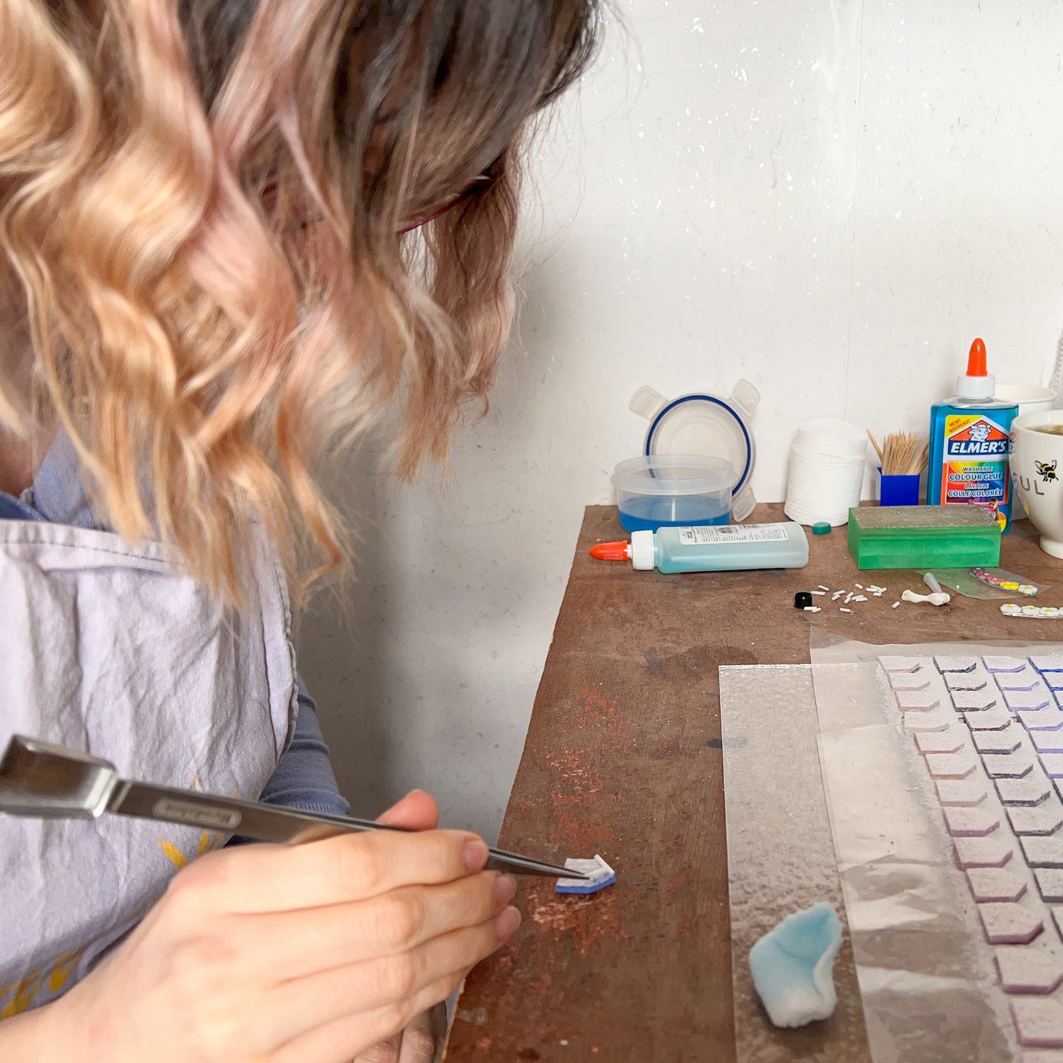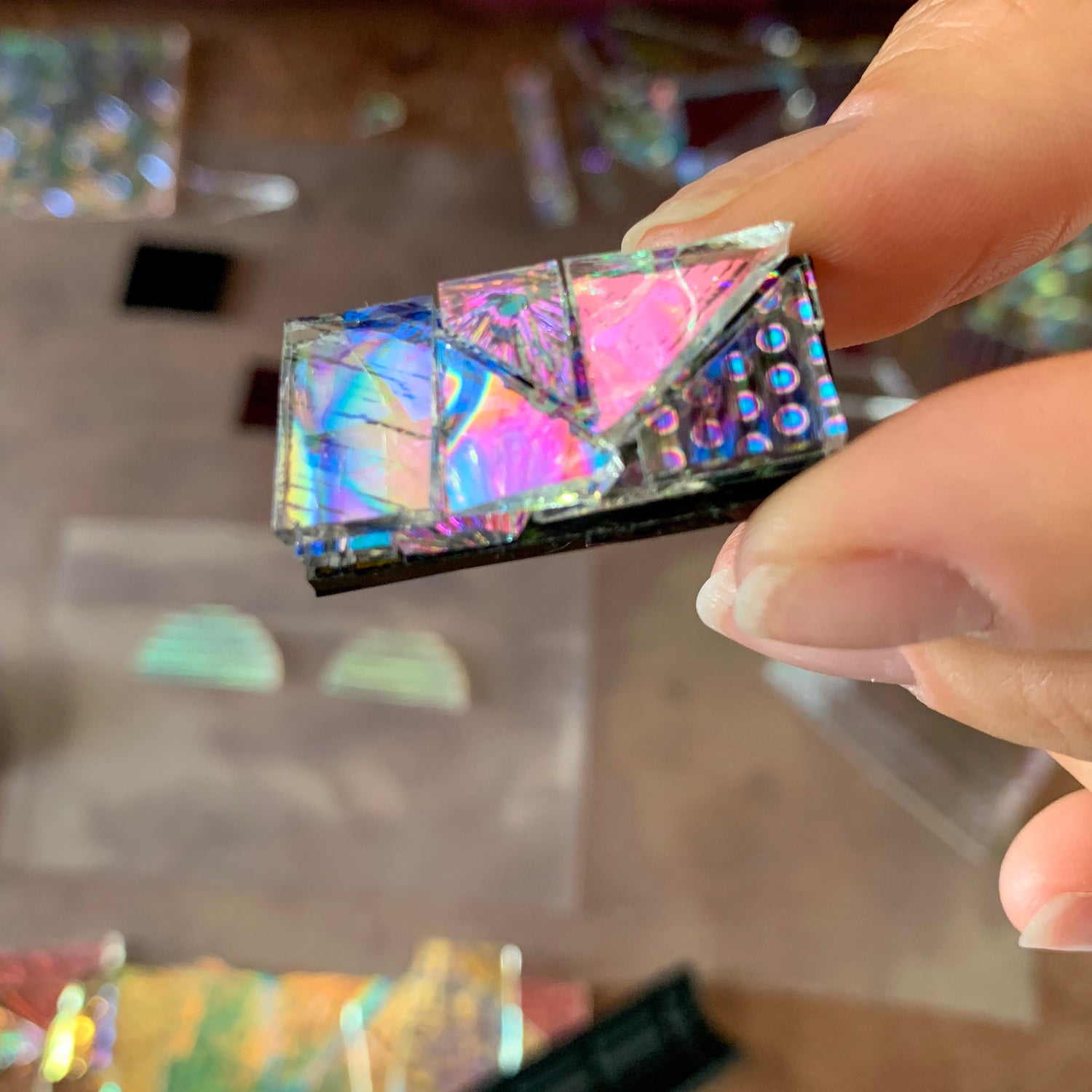I layer glass on top of each other. For example, the “Classic” collection will have 3 layers of glass. However, for the “Signature” collection there are 10+ pieces of glass.