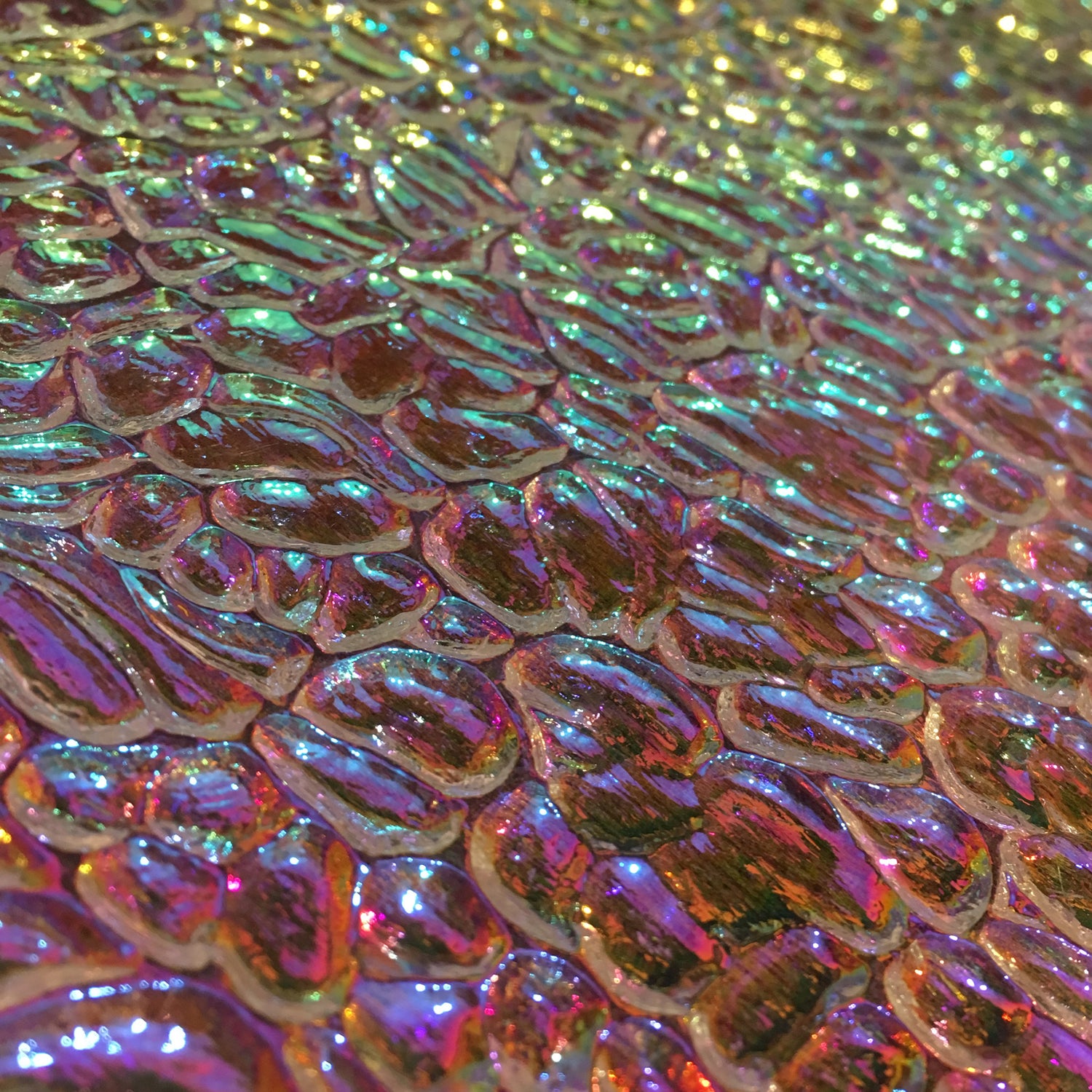 I like to work with opaque and translucent coloured but my favourite is dichroic glass. It is beautifully sparkly and has such depth of colour which is hard to capture in photographs, it’s so eye catching and unique.