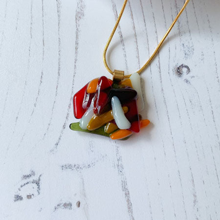 This autumn leaf abstract glass necklace is a handmade necklace that is inspired by one of my favourite styles of creating necklaces.