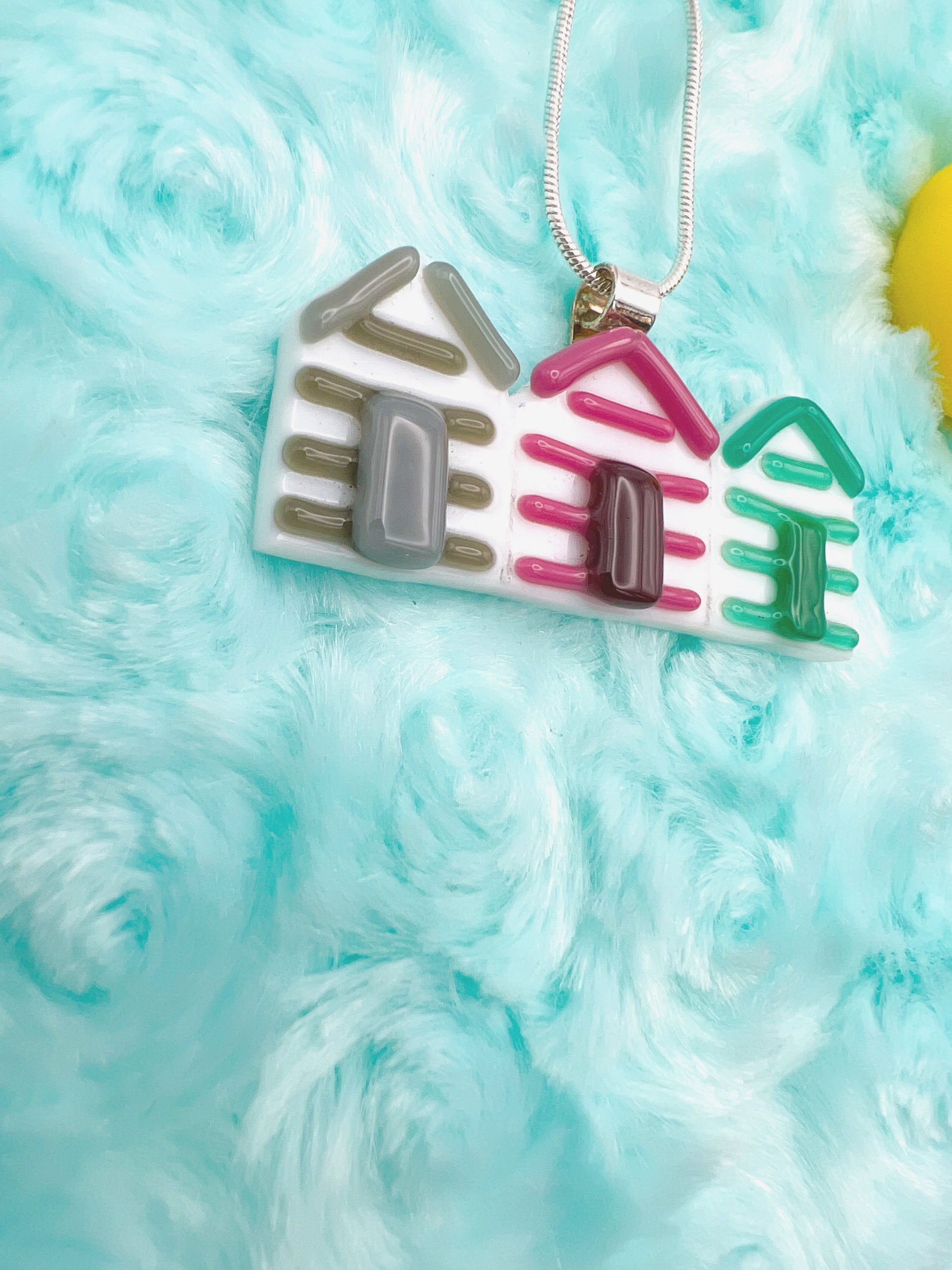 This triple beach hut necklace is a handmade necklace inspired by the playful side in all of us!