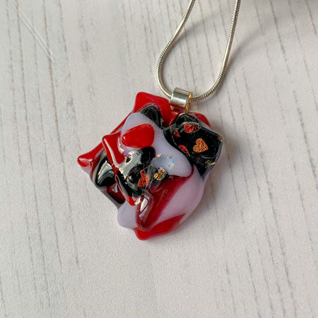 When I make my abstract necklaces, I stack, overlap, layer and balance different coloured glass on top of each other. This creates a one of a kind necklace that I'm always excited to take out of the kiln.