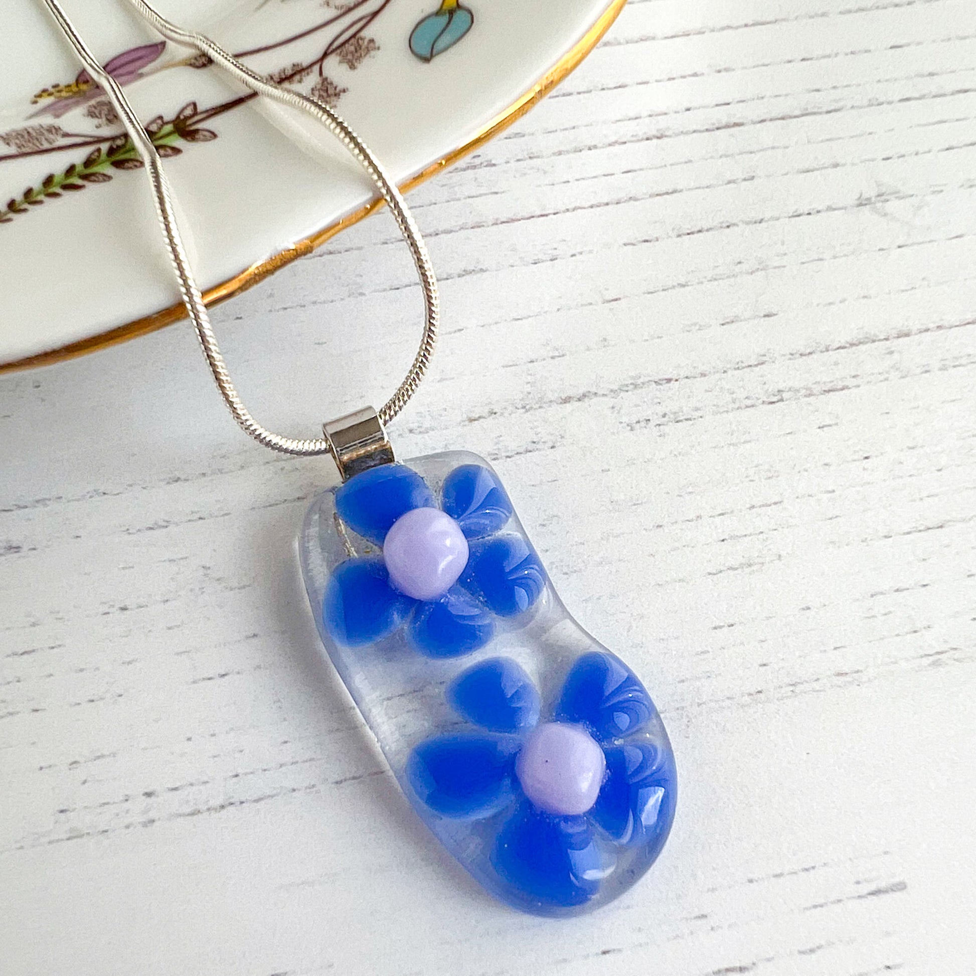 The blue floral glass necklace is a handmade necklace inspired by my local Welsh countryside.