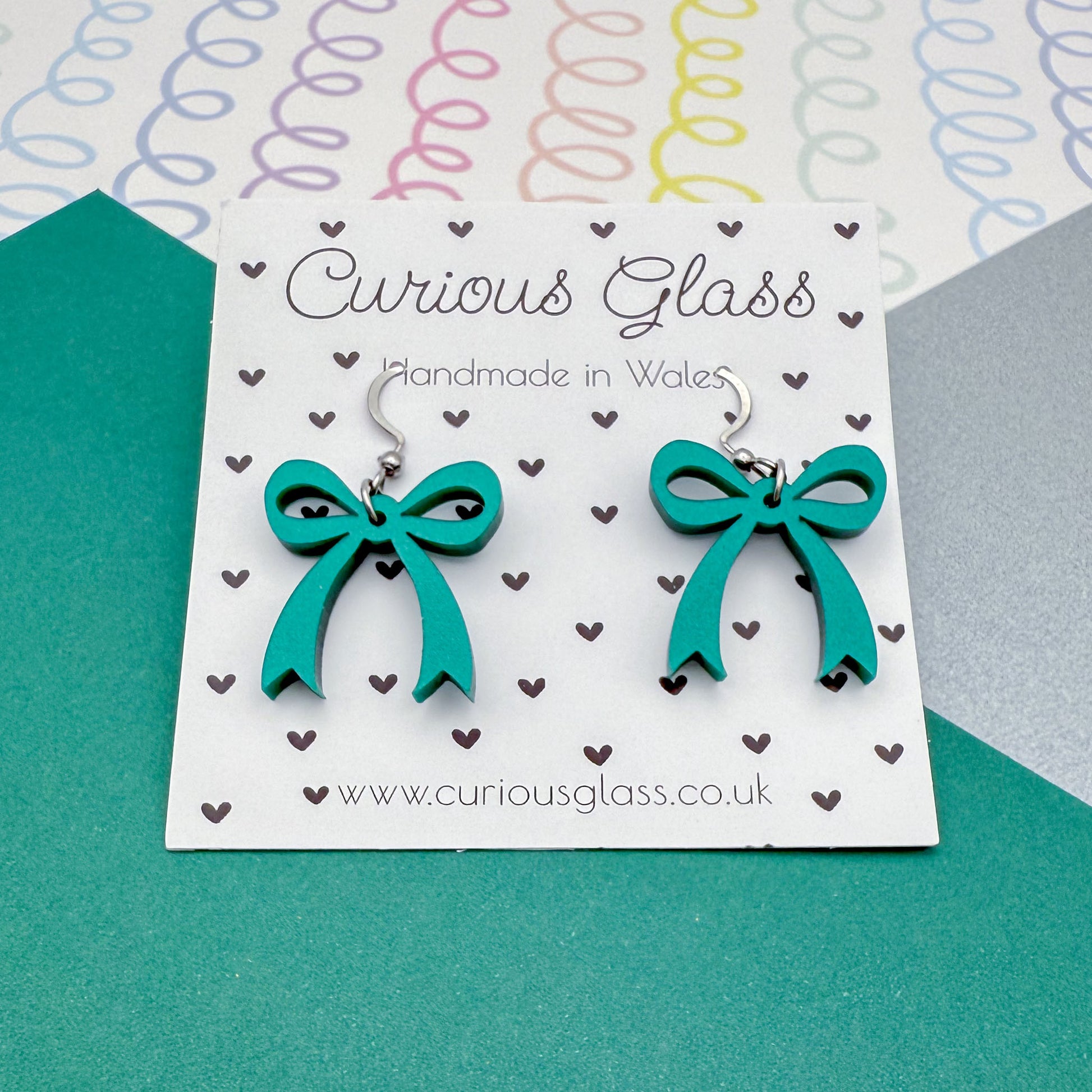 These sweet acrylic bow earrings are the perfect touch of femininity and charm.