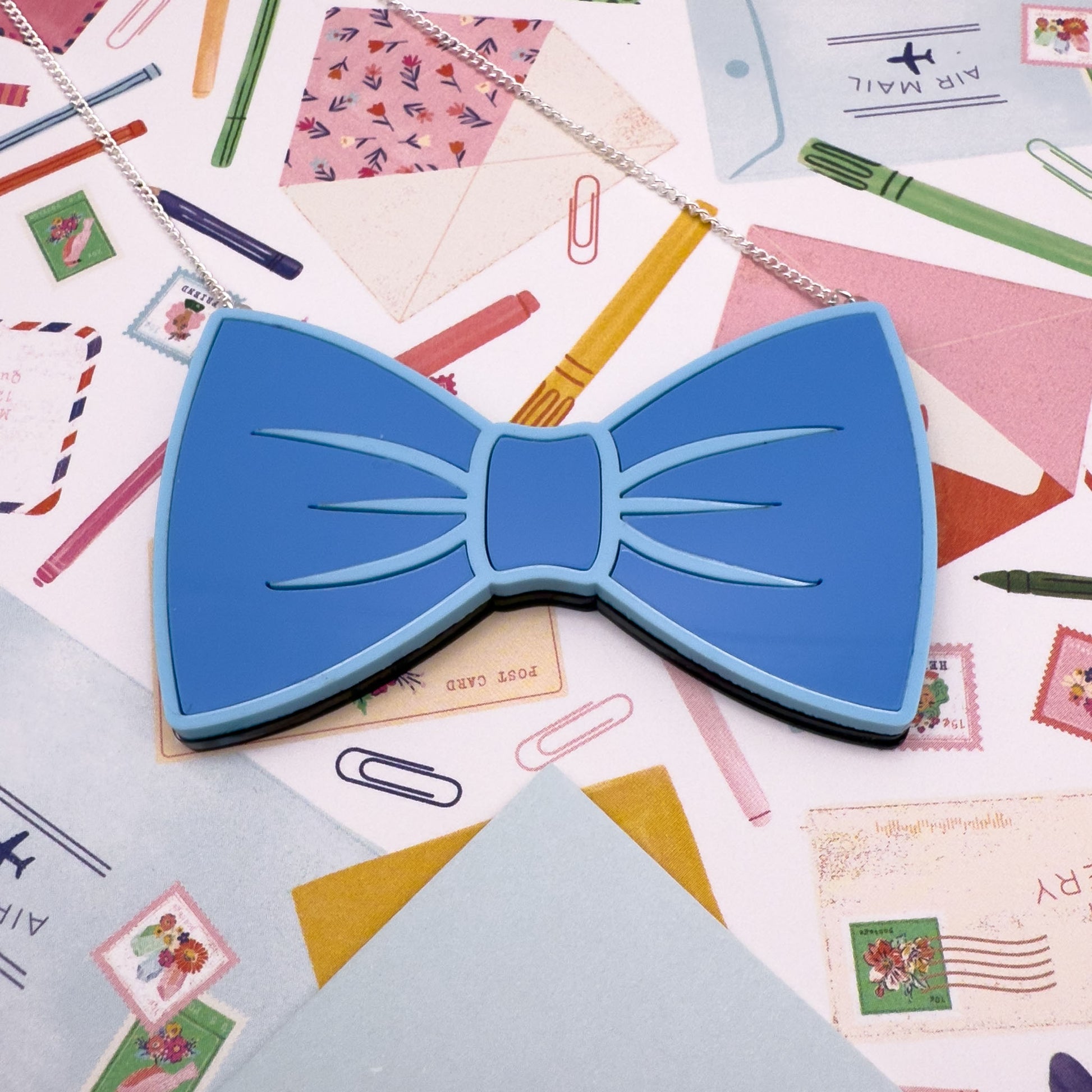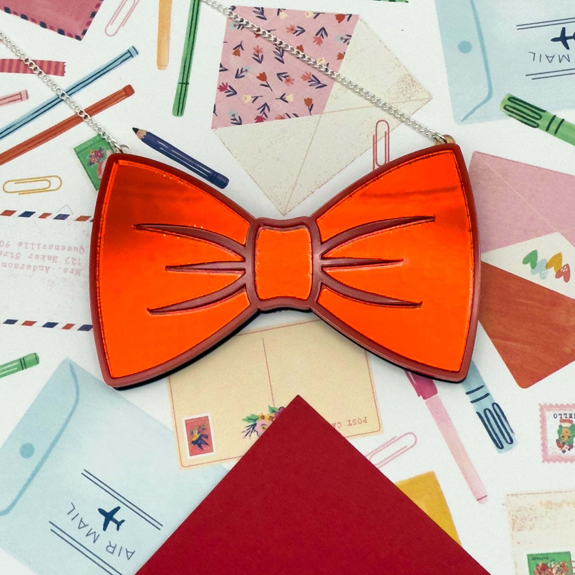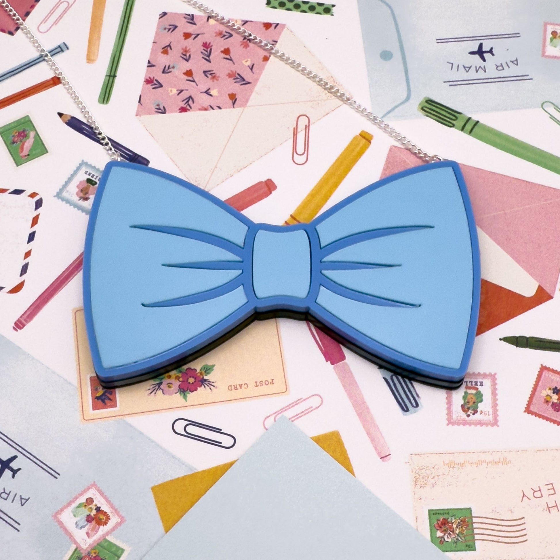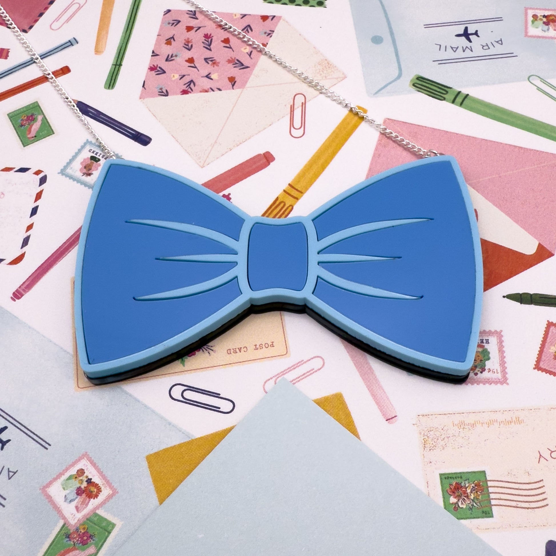 Add a pop of playful charm with this handmade acrylic bow tie necklace designed, laser cut and hand assembled, all by me in my Welsh studio!