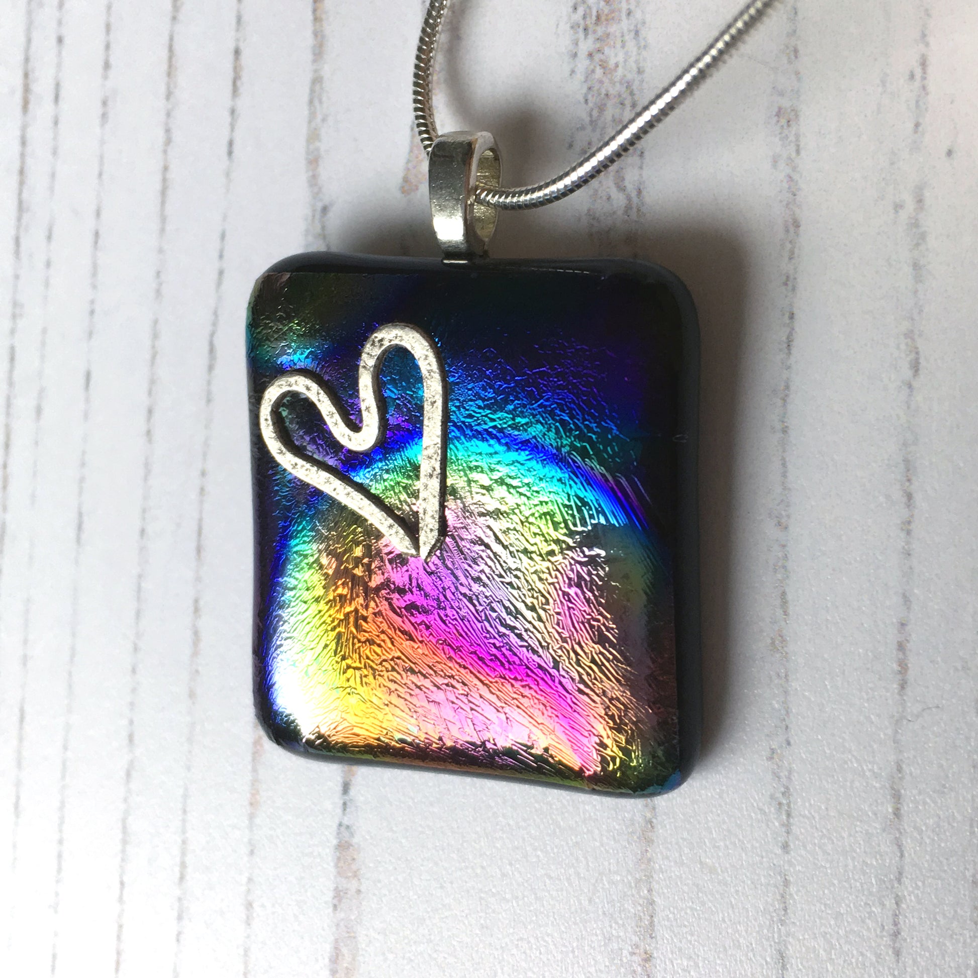 Cariad Rainbow Silver Dichroic Glass Necklace