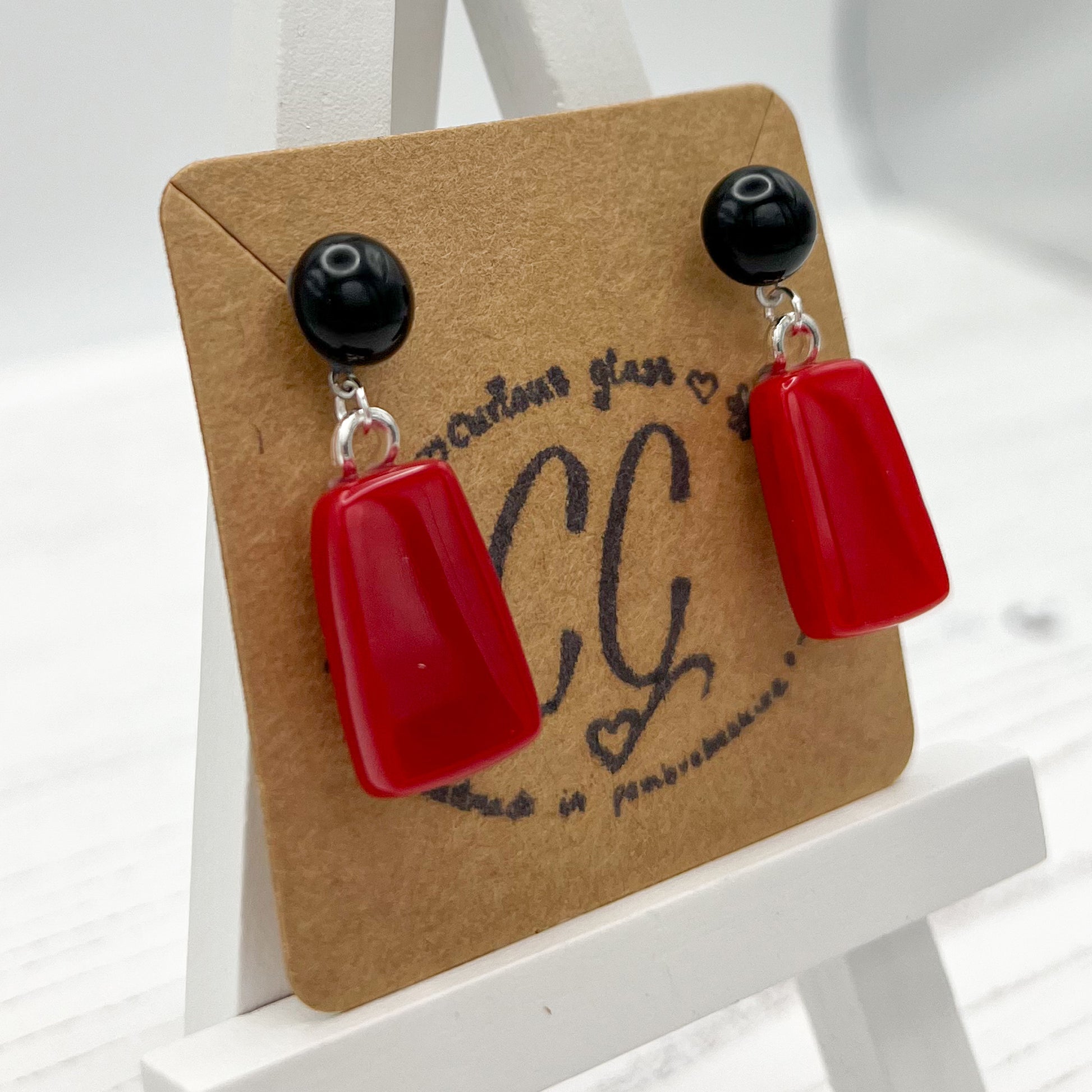 These handmade colourful glass earrings are a bold statement to add a lovely pop of colour.
