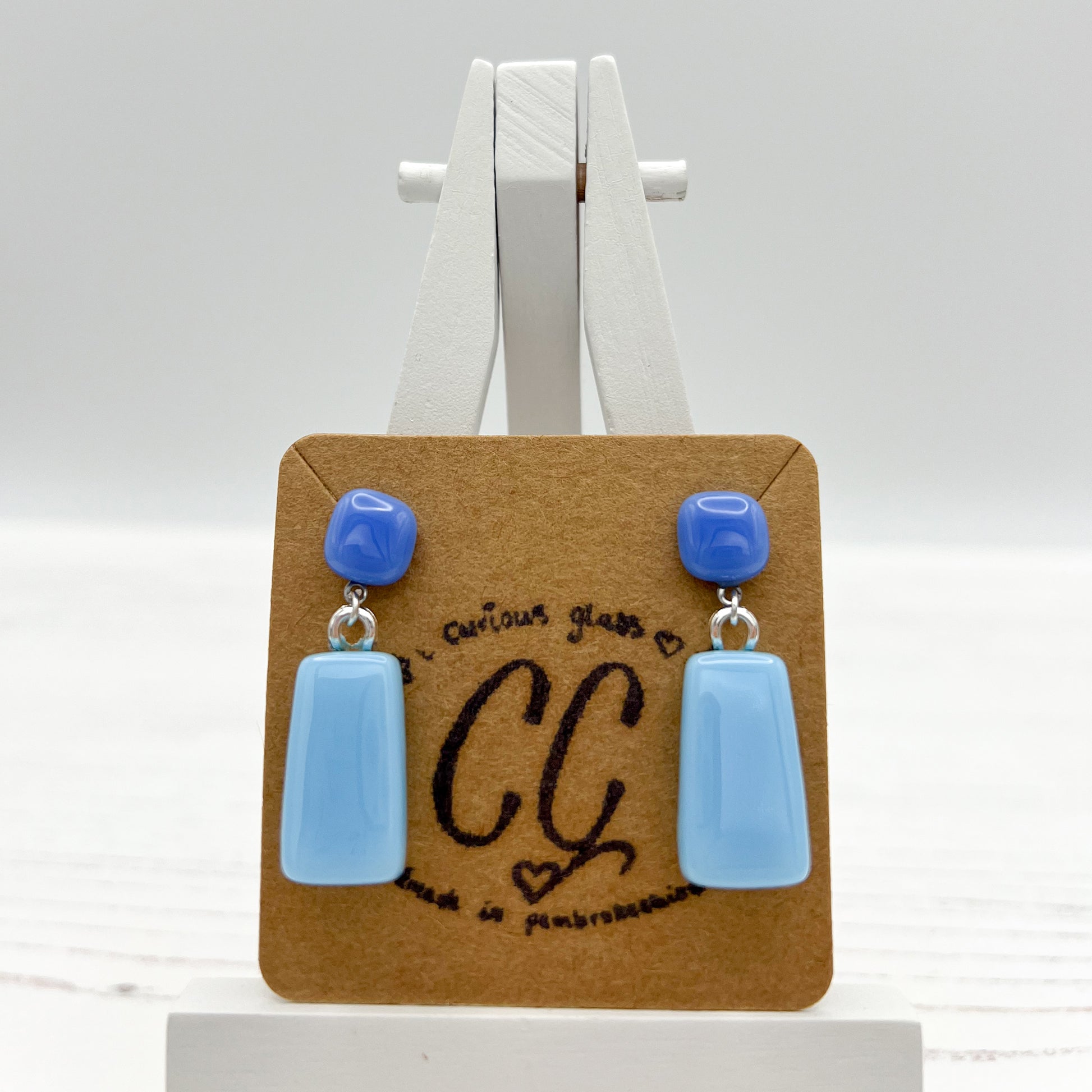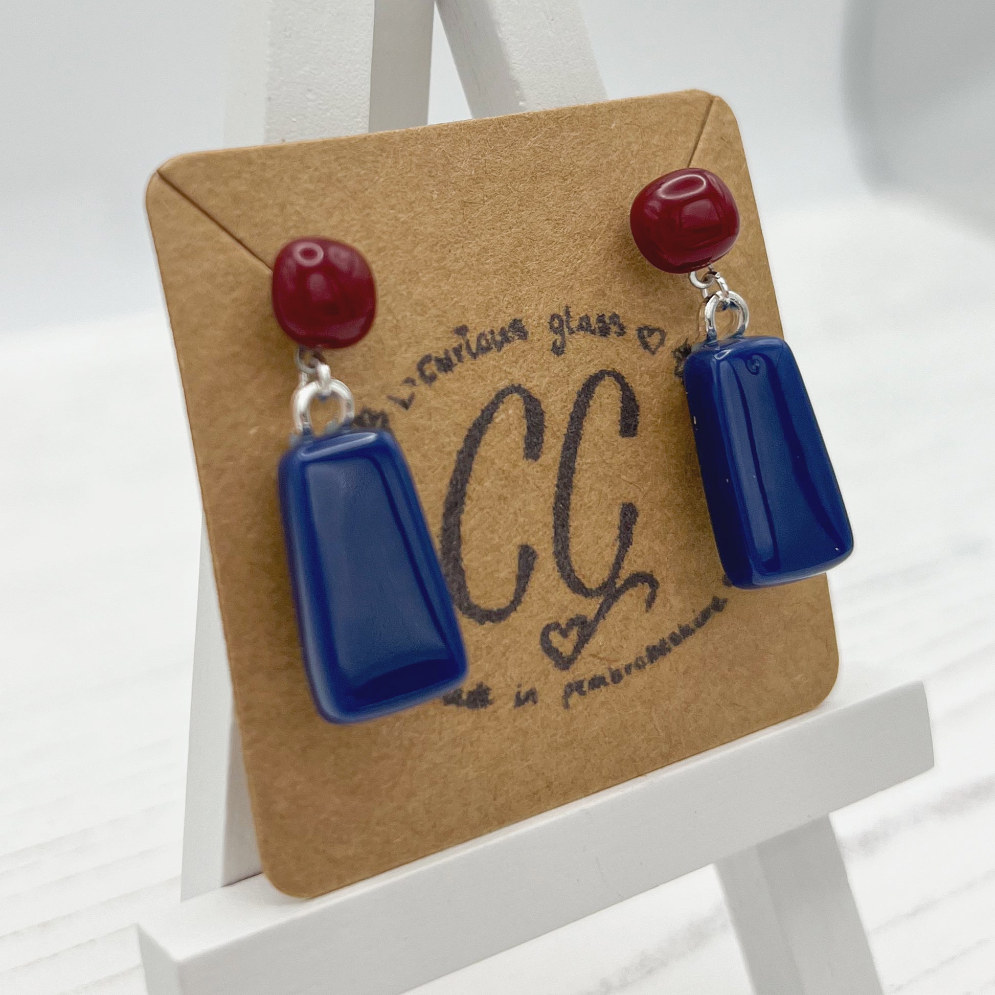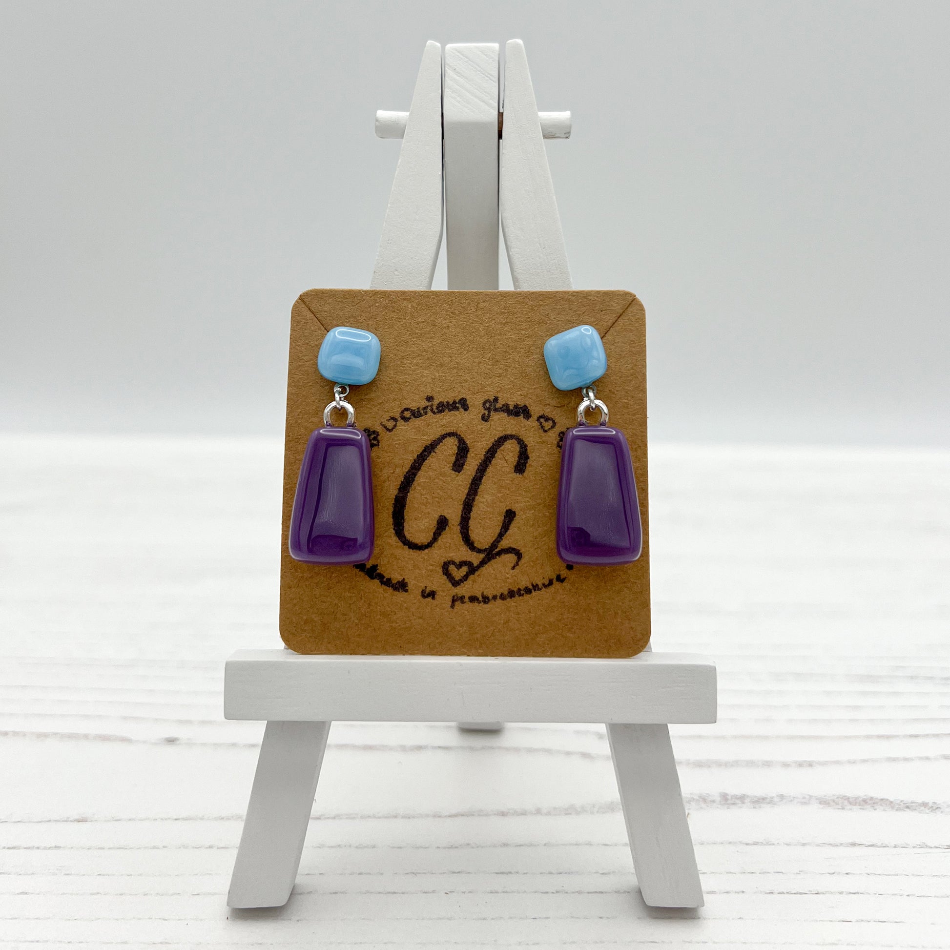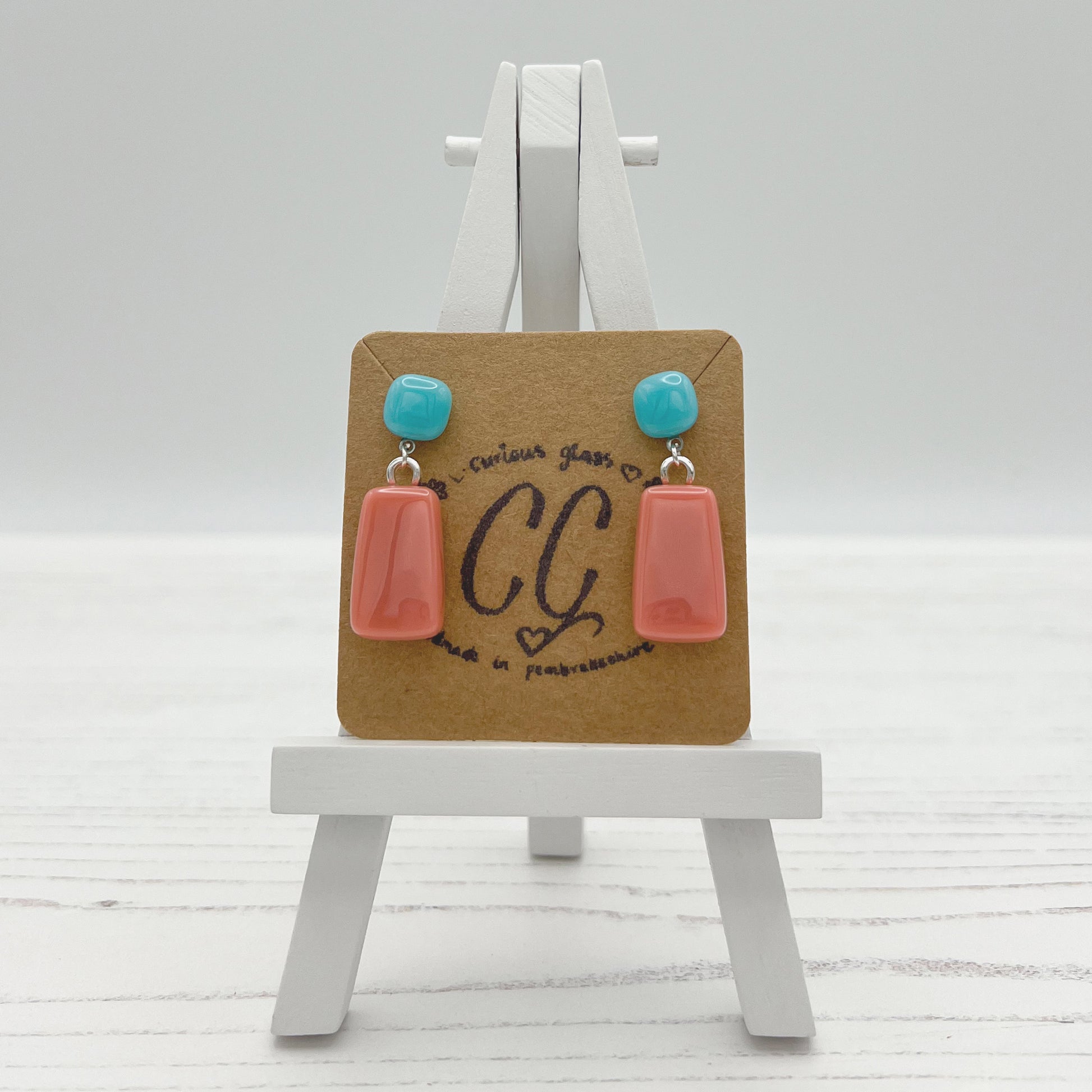 All jewellery is made using various types of glass. Some translucent, opaque and dichroic.