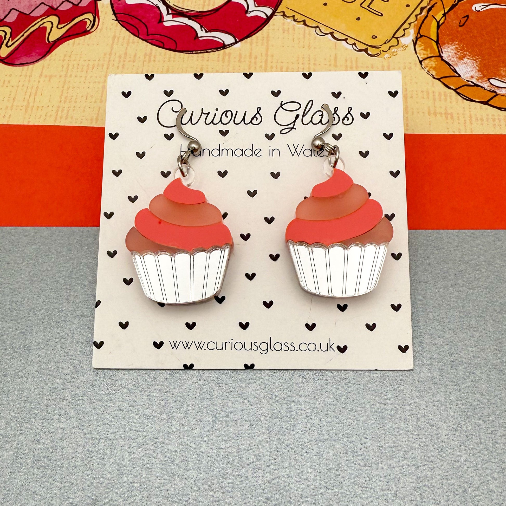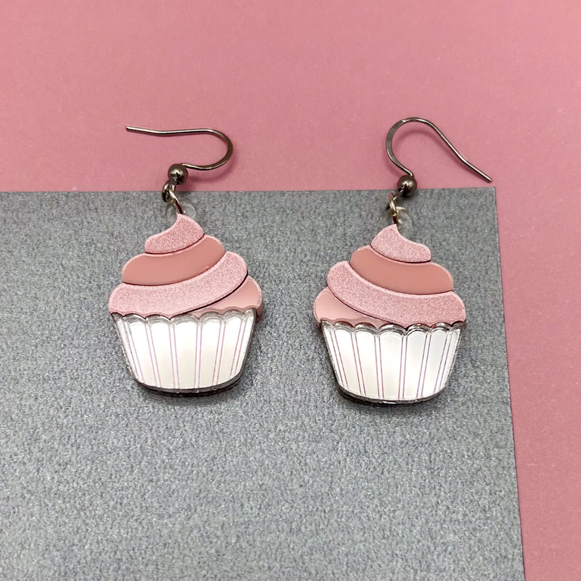 Treat yourself to a slice of sweet style with these acrylic cupcake earrings! Designed to capture the whimsical charm of a delightful dessert, the cupcake bases, fashioned from mirror acrylic, gleam like a glossy layer of icing, adding an irresistible reflective twist. Perfect for anyone with a penchant for playful, statement jewellery, these earrings are as delectable as they are dazzling.