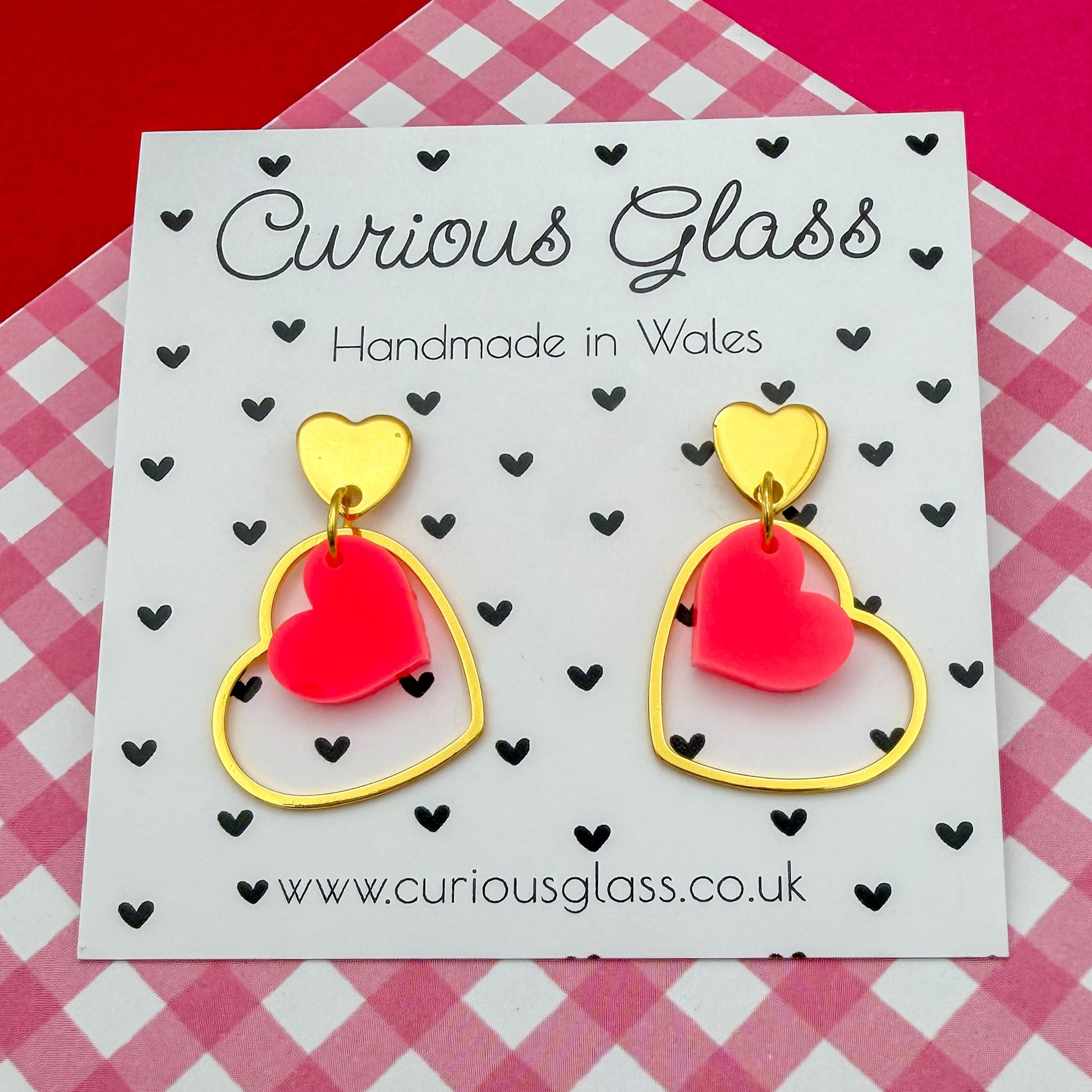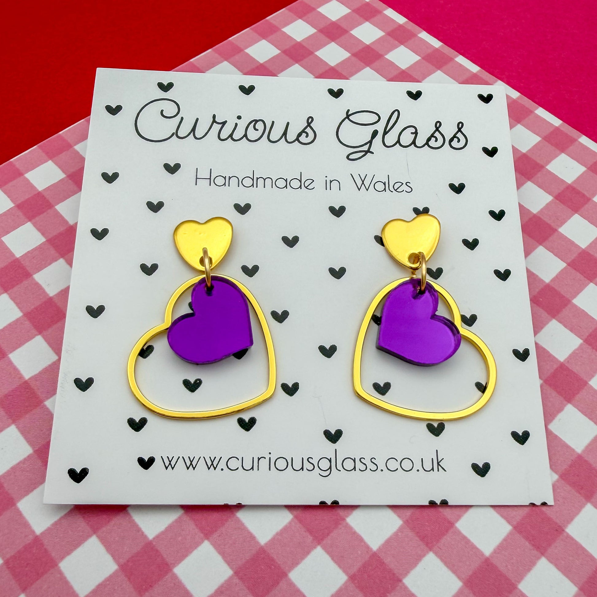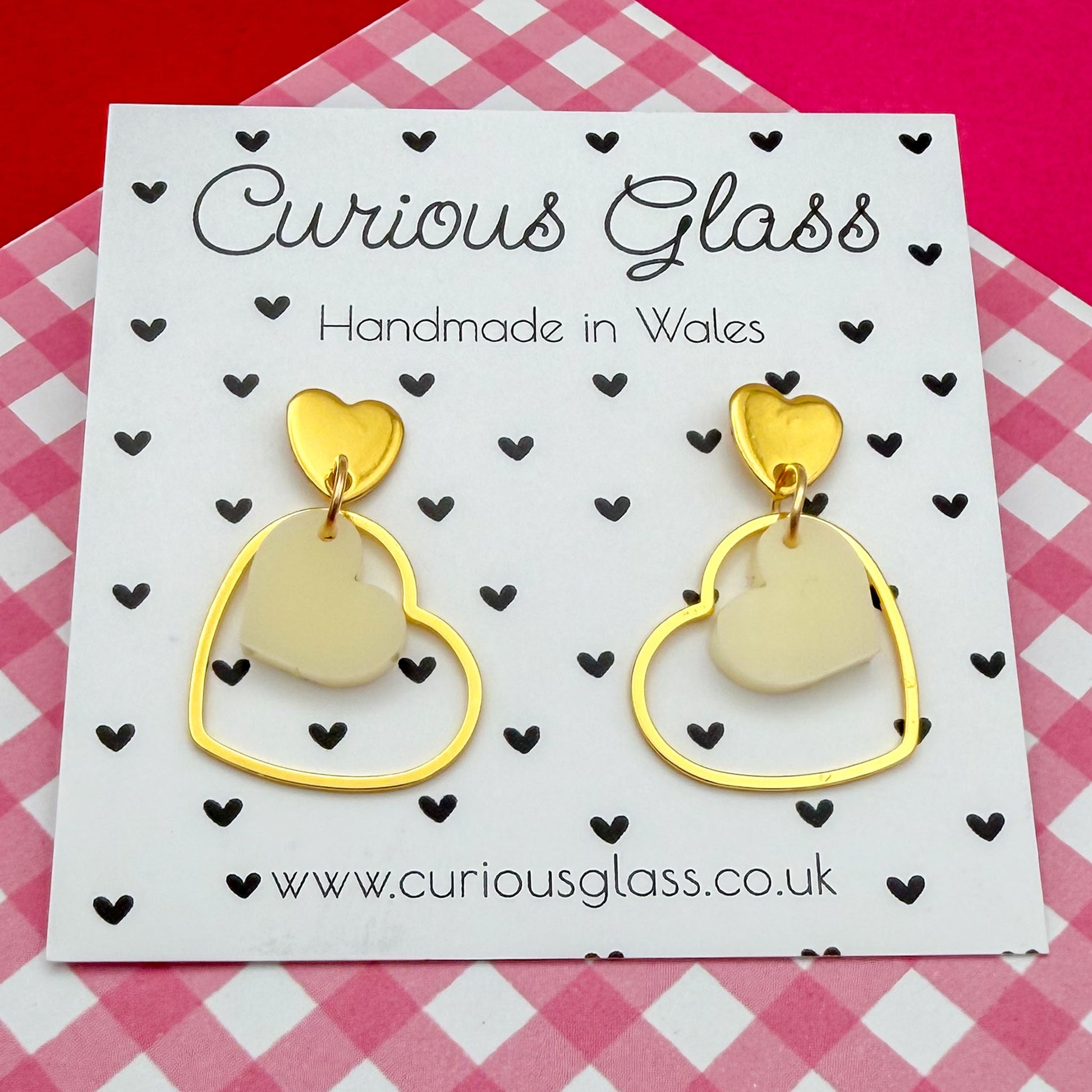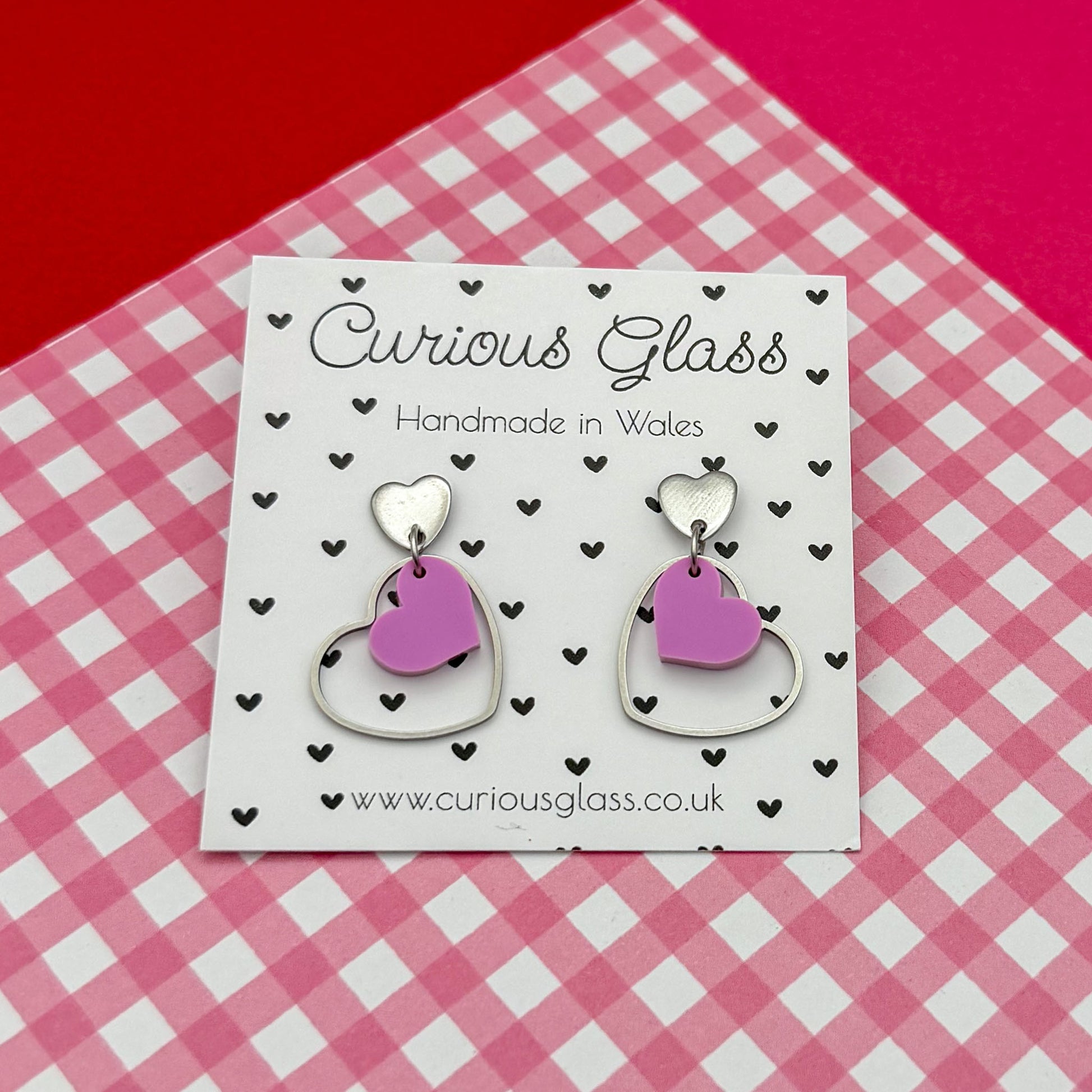 Fall head over heels for these playful double heart earrings, lovingly handmade in Wales. Featuring a cute heart suspended inside a sleek open heart frame, these earrings are designed to move beautifully and catch the light with every turn.
