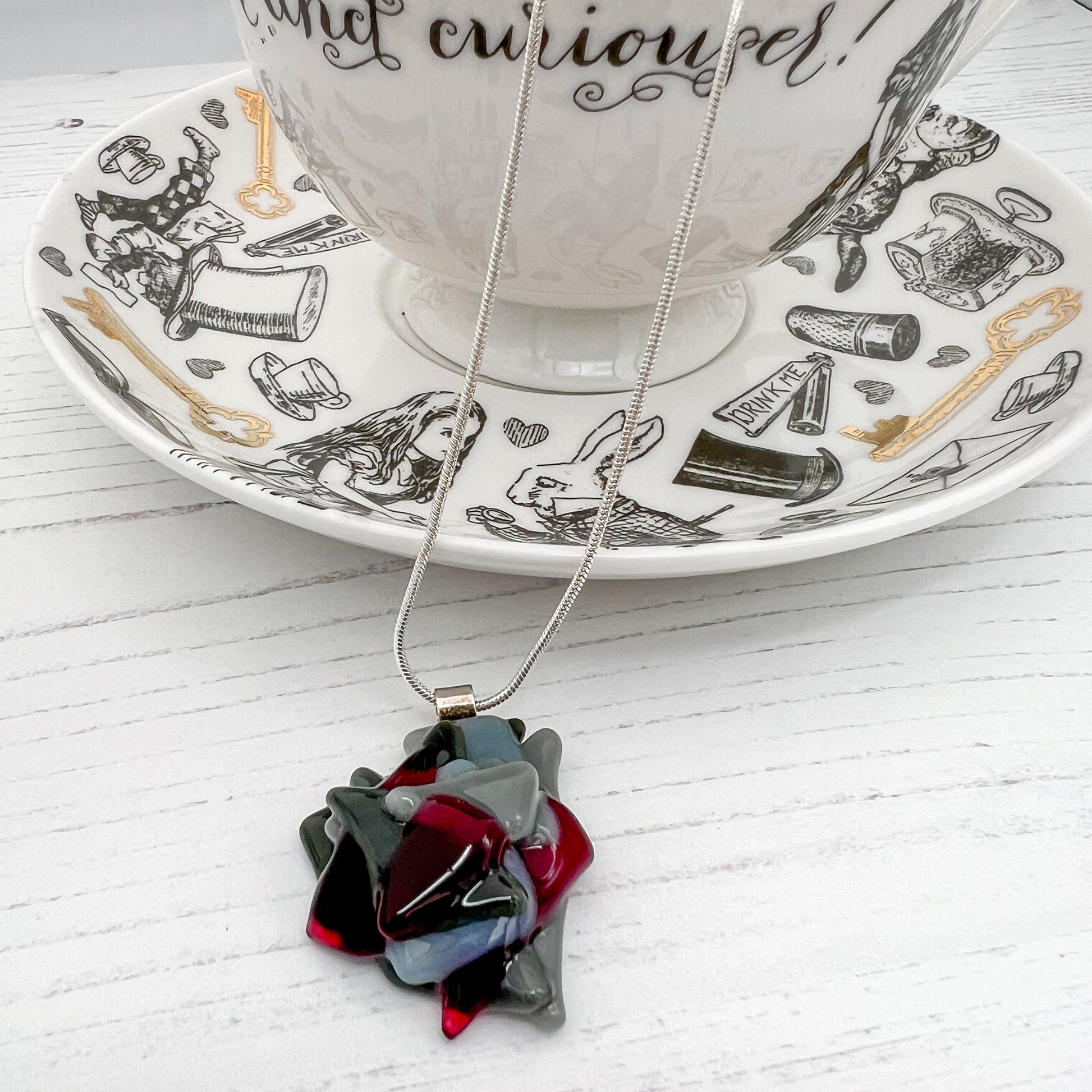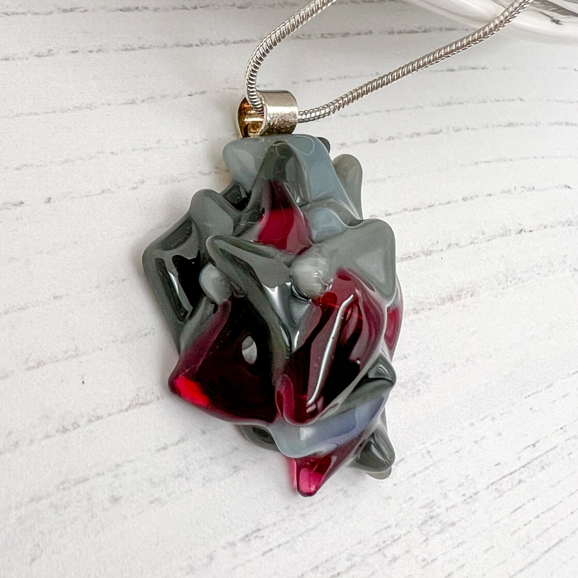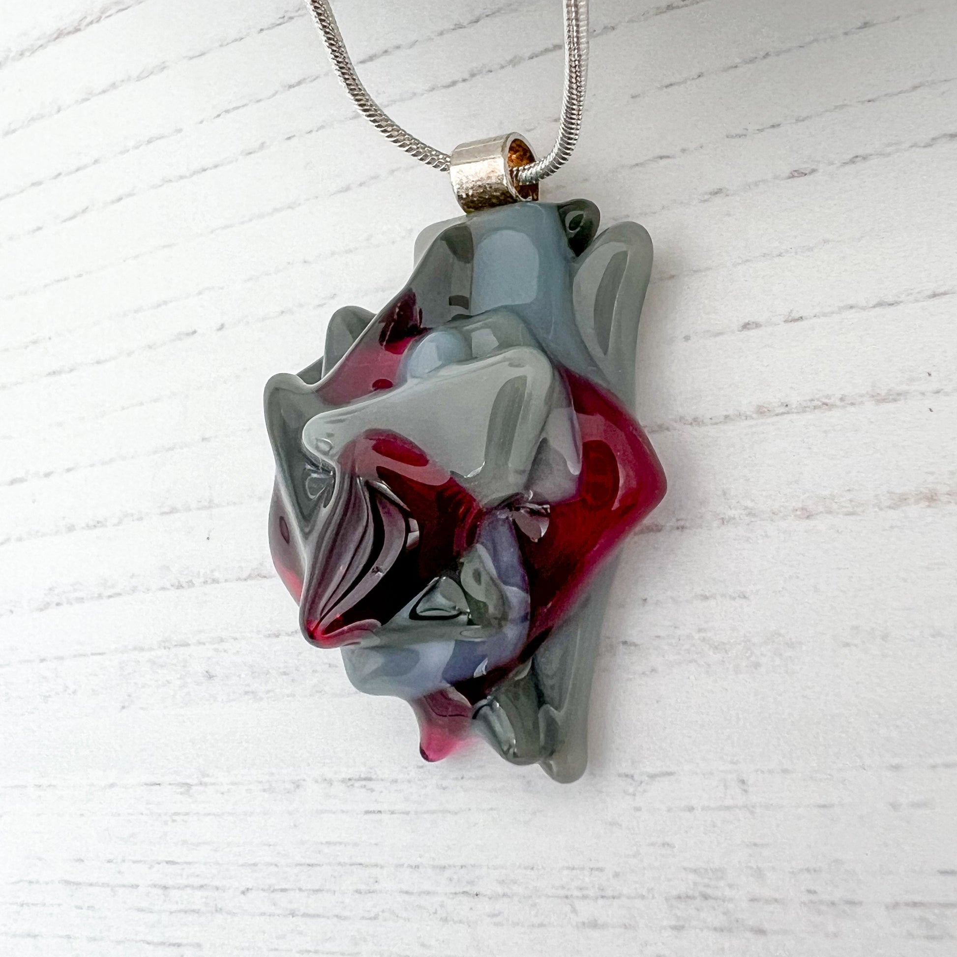 This abstract Grey Cranberry glass necklace is a handmade necklace that is inspired by one of my favourite styles of creating necklaces.