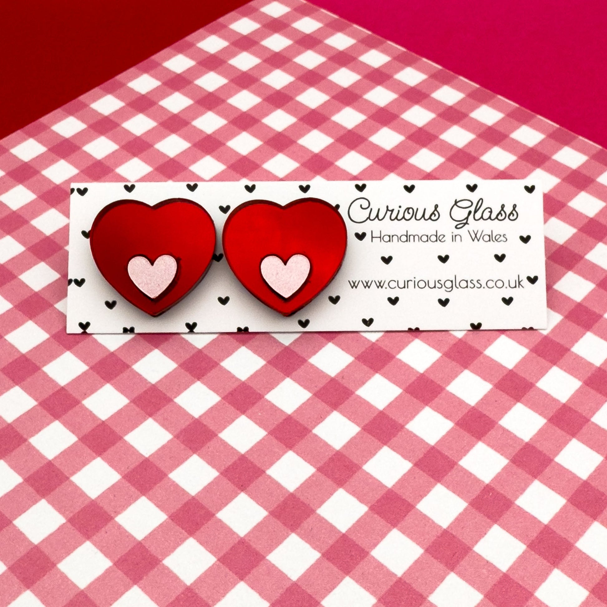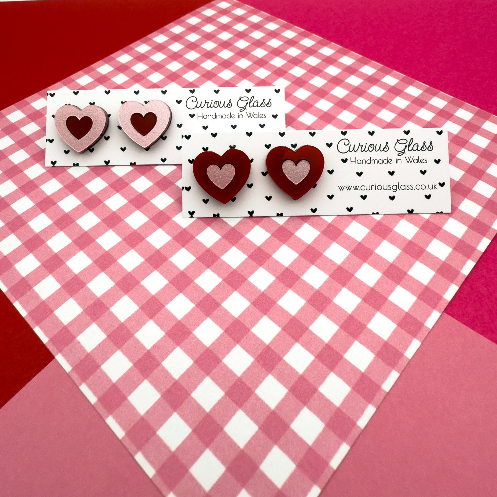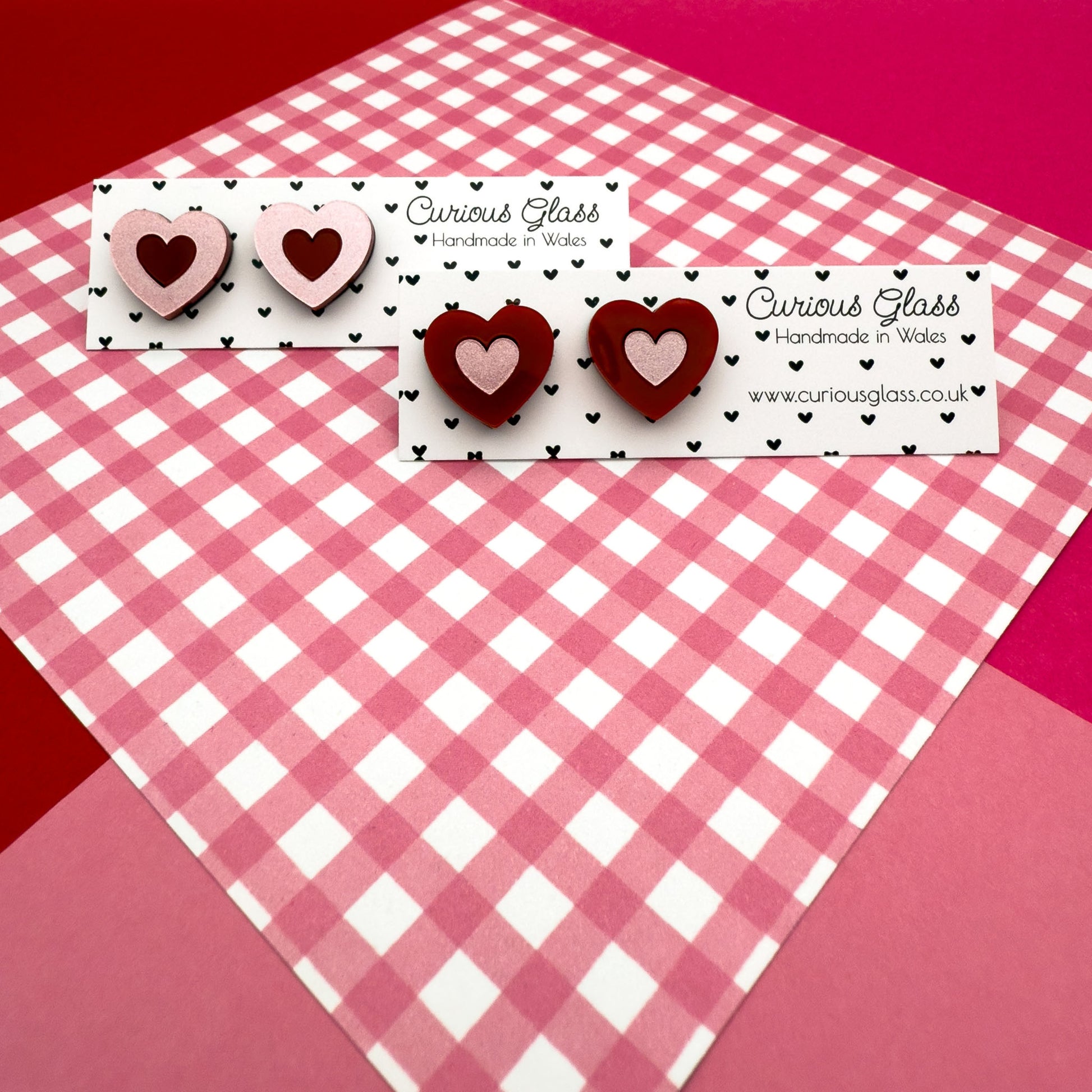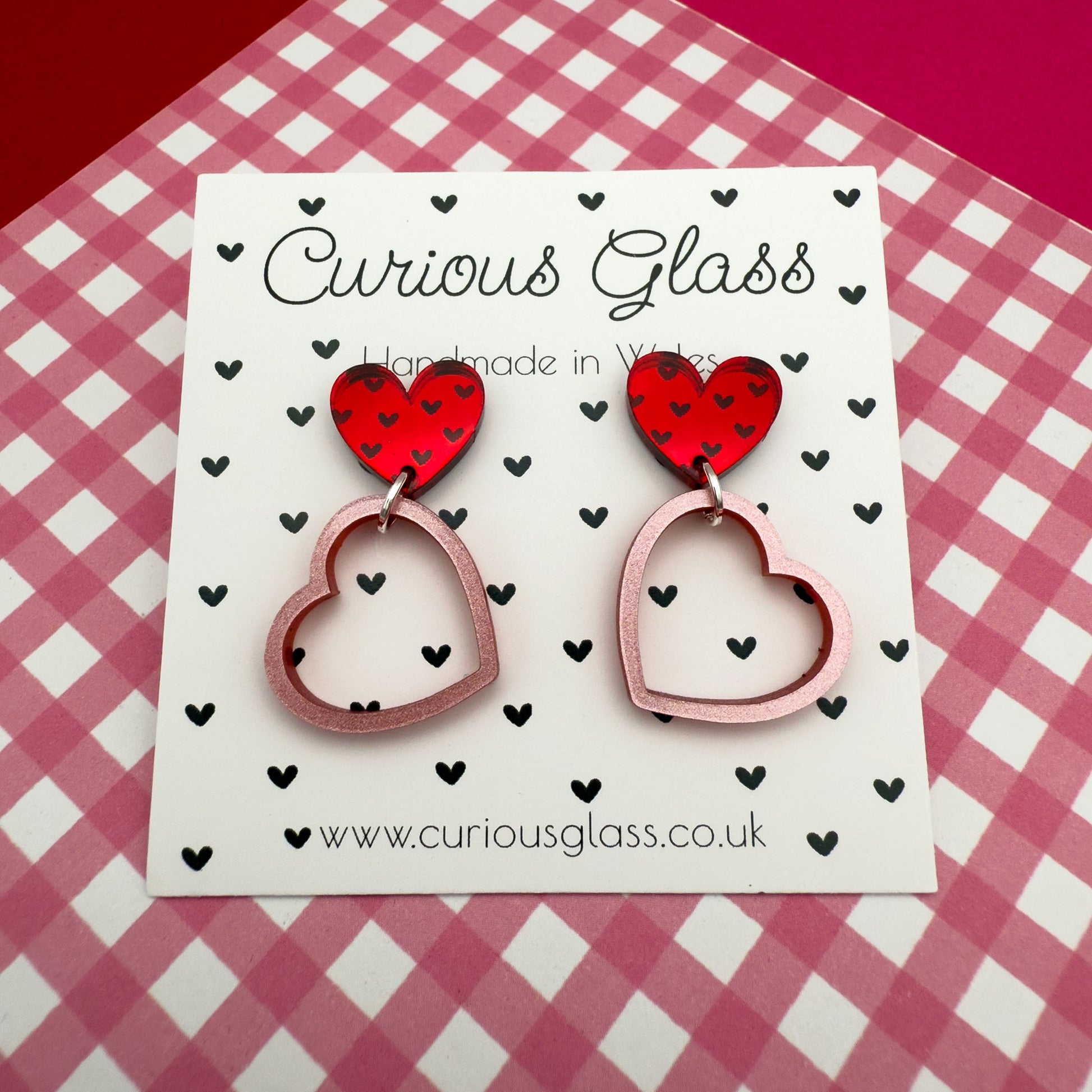 Introducing my limited collection of heart acrylic earrings—a heartfelt celebration of love in all the shades of red and pink! This range features a show-stopping design with a small heart at the top, leading to a larger heart made of concentric hearts, at the centre, a stunning mirror acrylic heart steals the spotlight with a delicately etched heart design for an extra touch of romance.