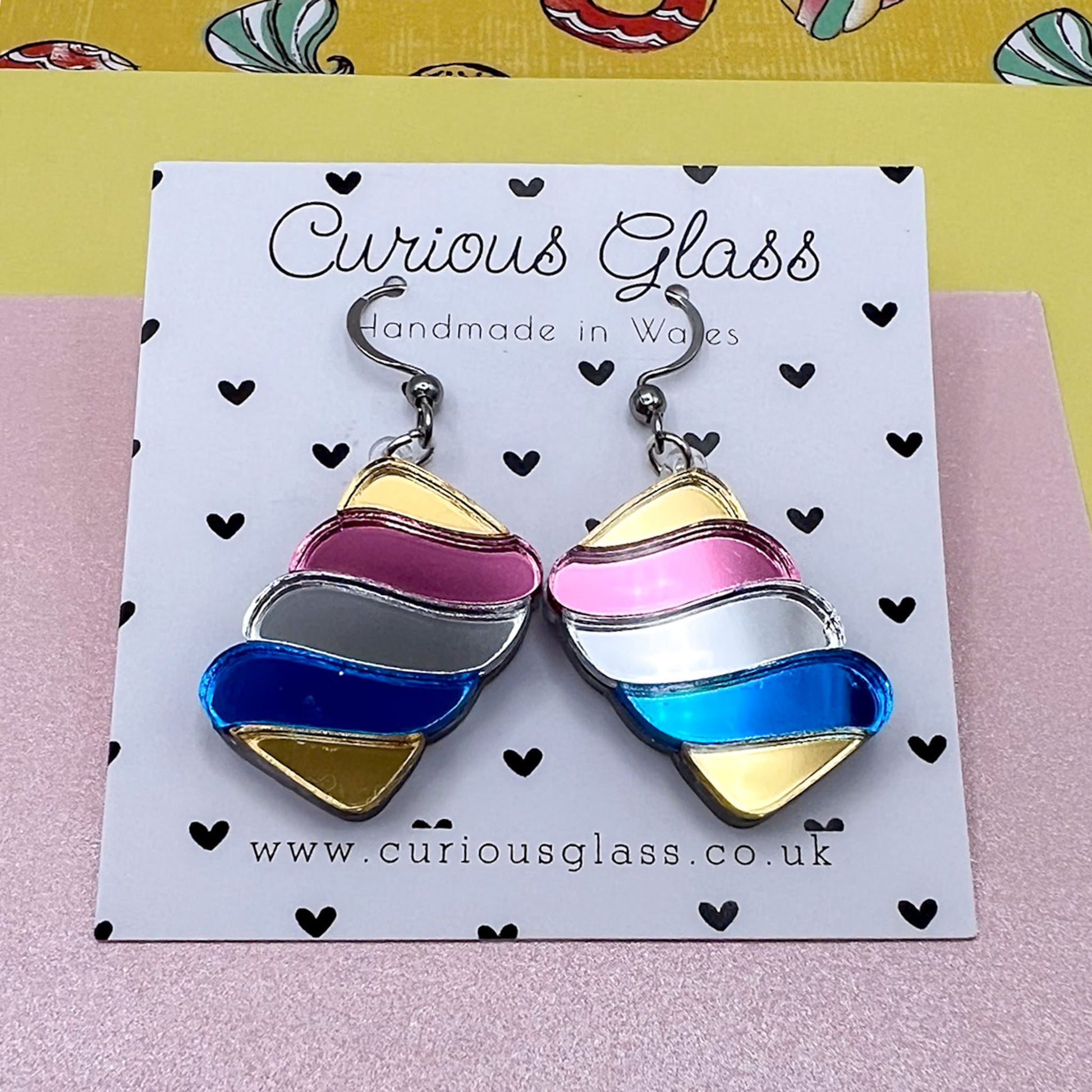 All jewellery is made using various types of glass. Some translucent, opaque and dichroic.
