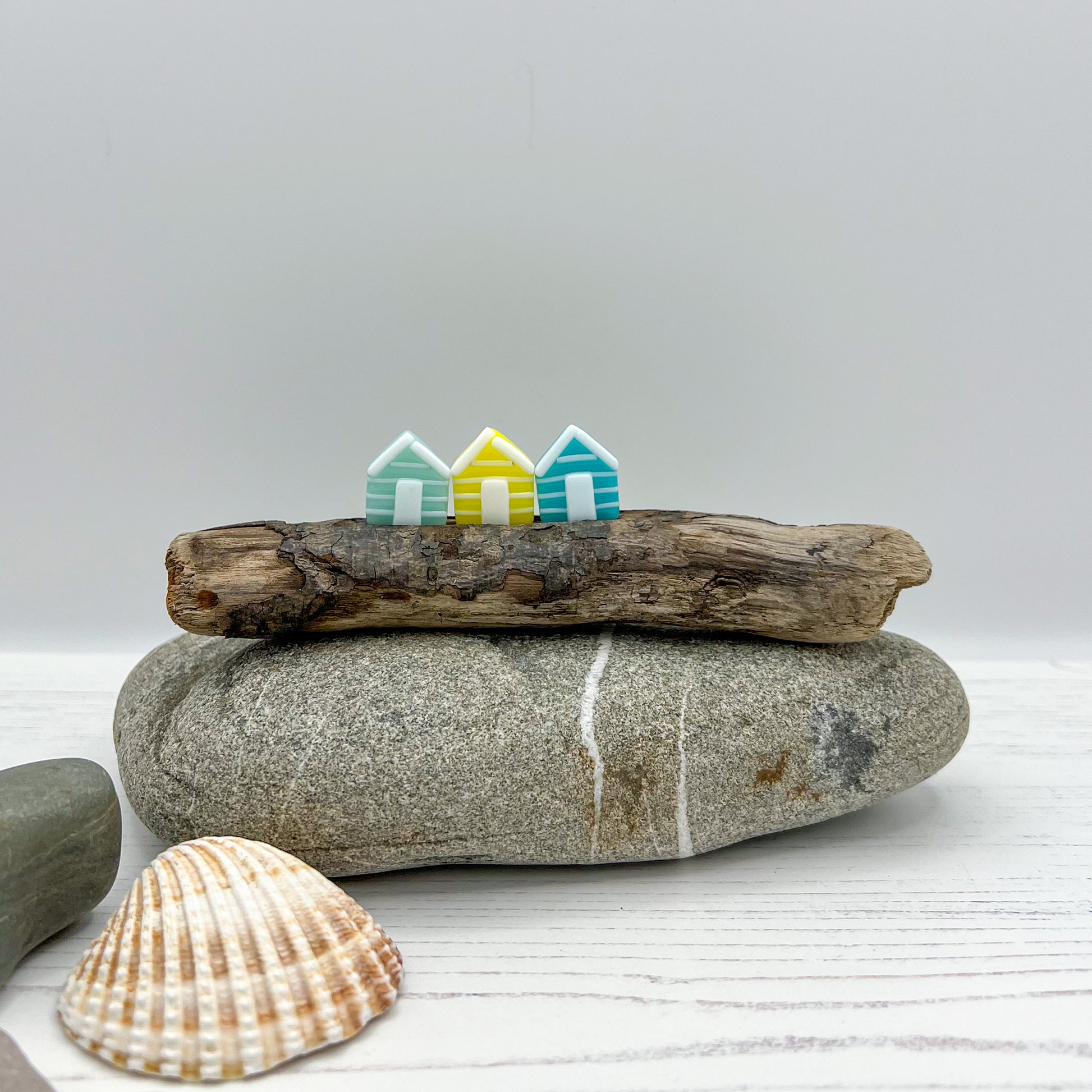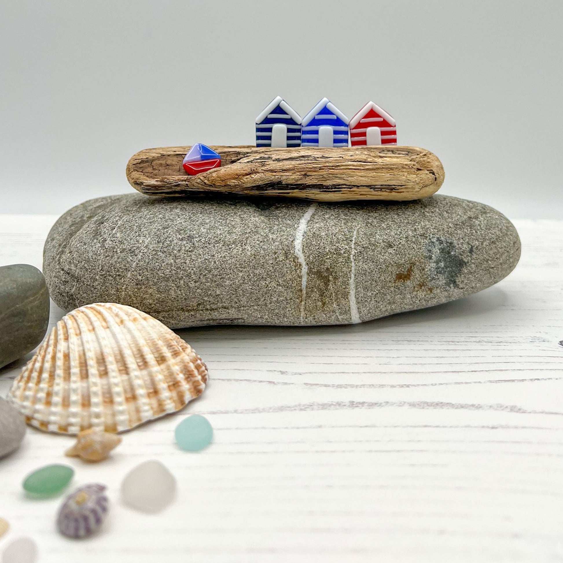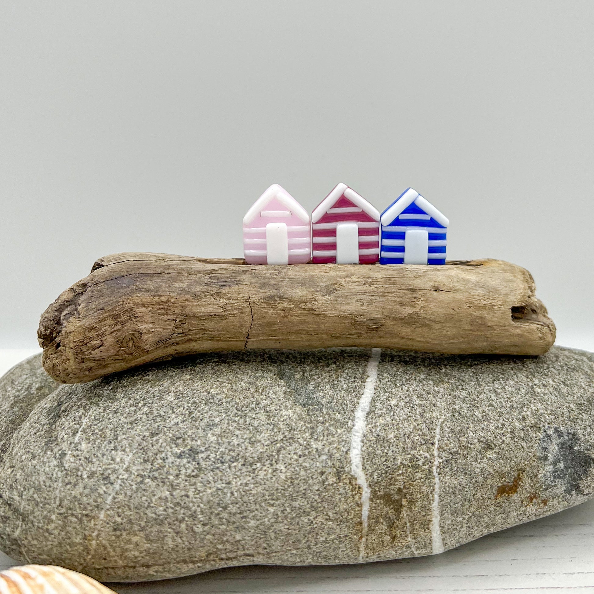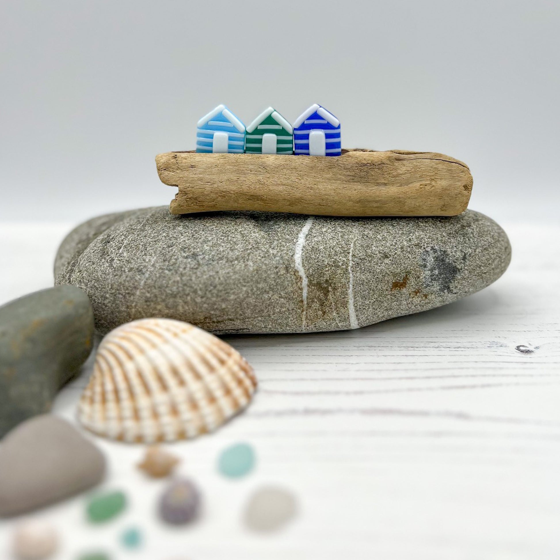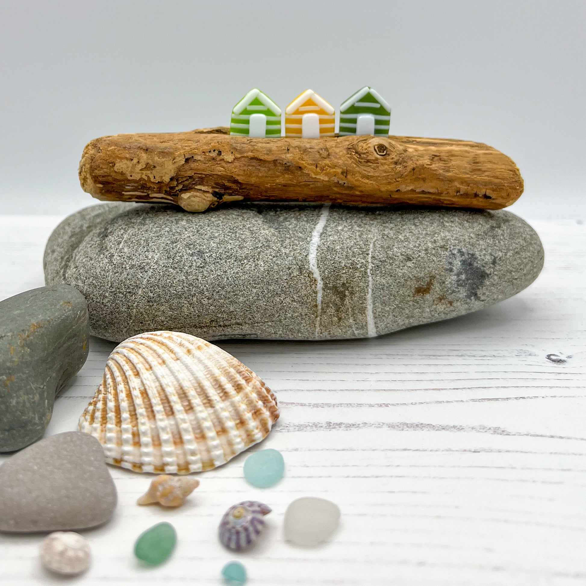 Whilst the driftwood is drying I make the beach huts out of opaque colourful glass. One beach hut is a 22 step process! I then combine the driftwood and glass together.
