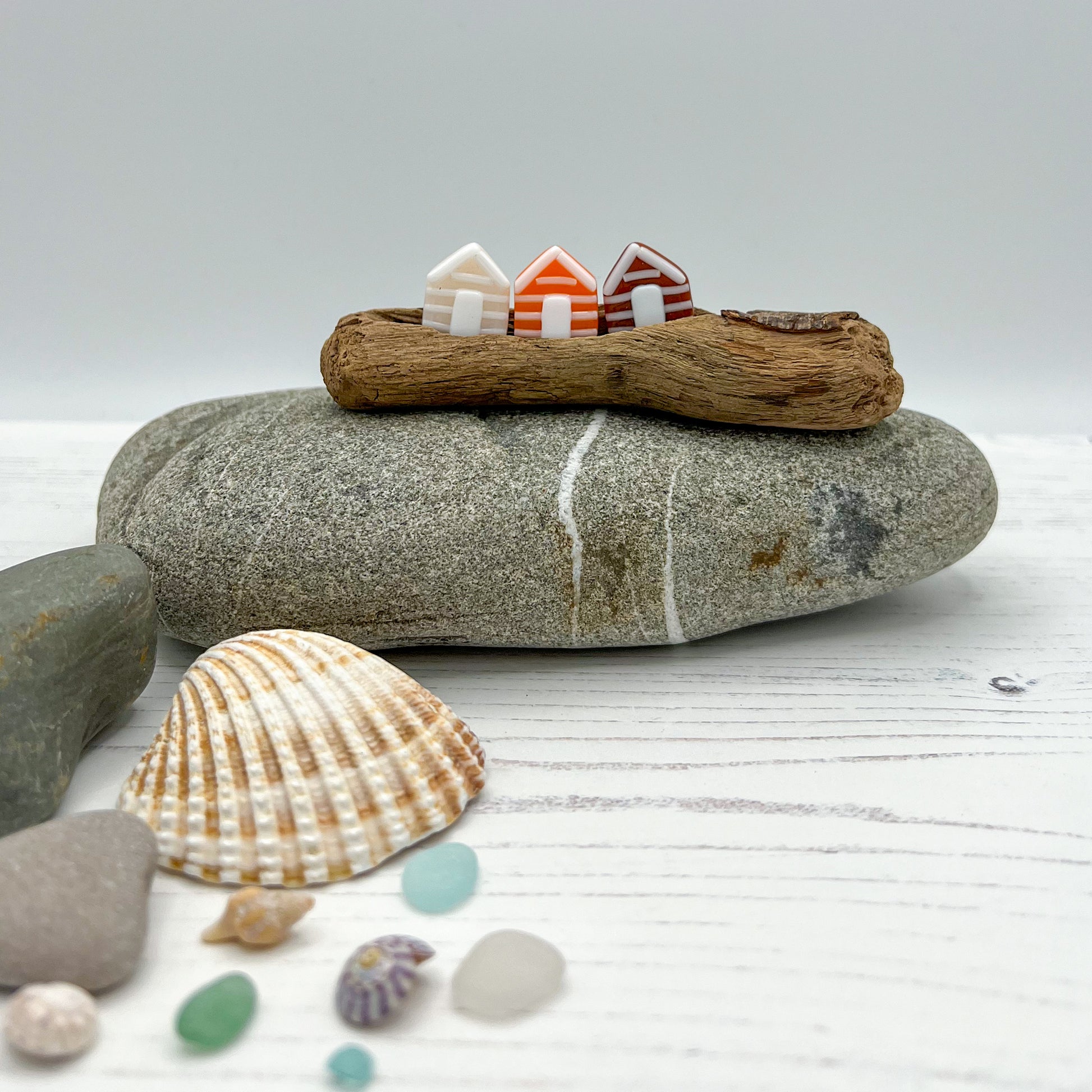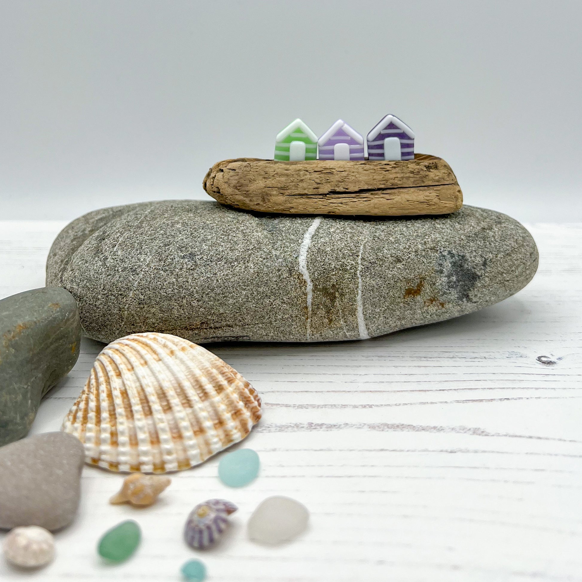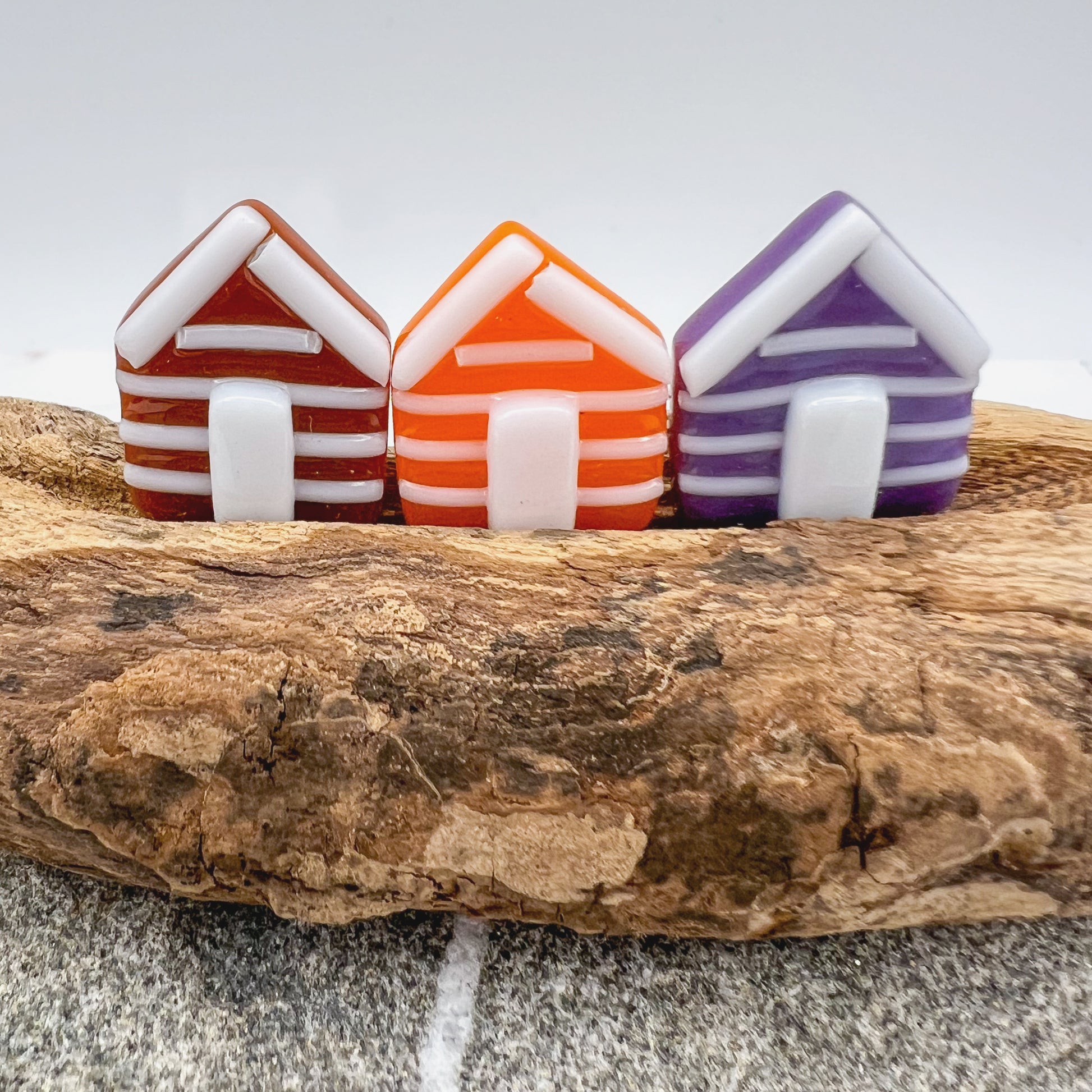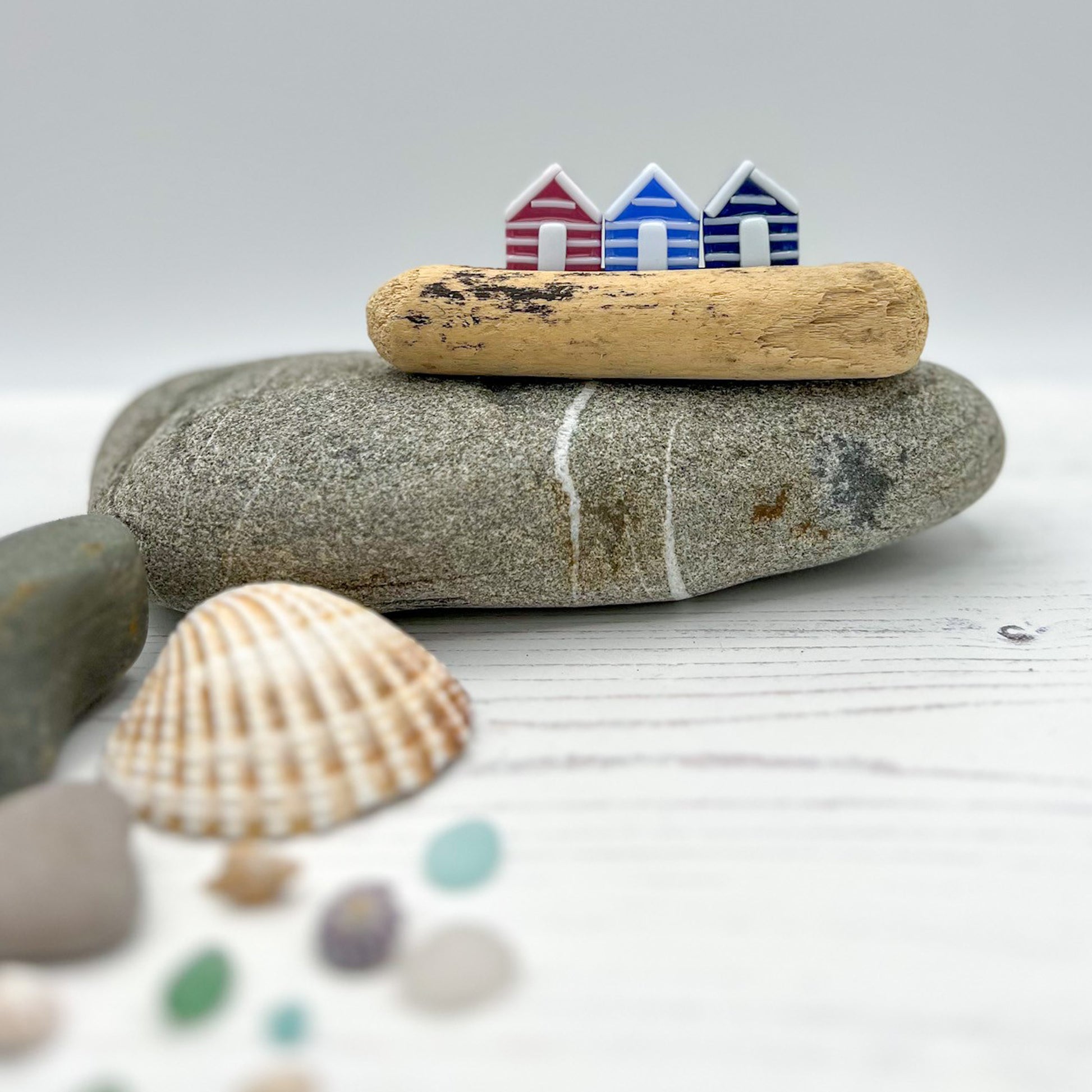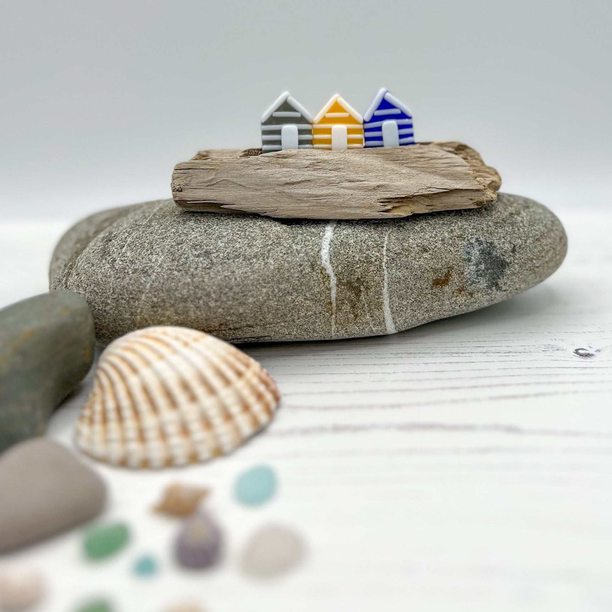 Whilst the driftwood is drying I make the beach huts out of opaque colourful glass. One beach hut is a 22 step process! I then combine the driftwood and glass together.