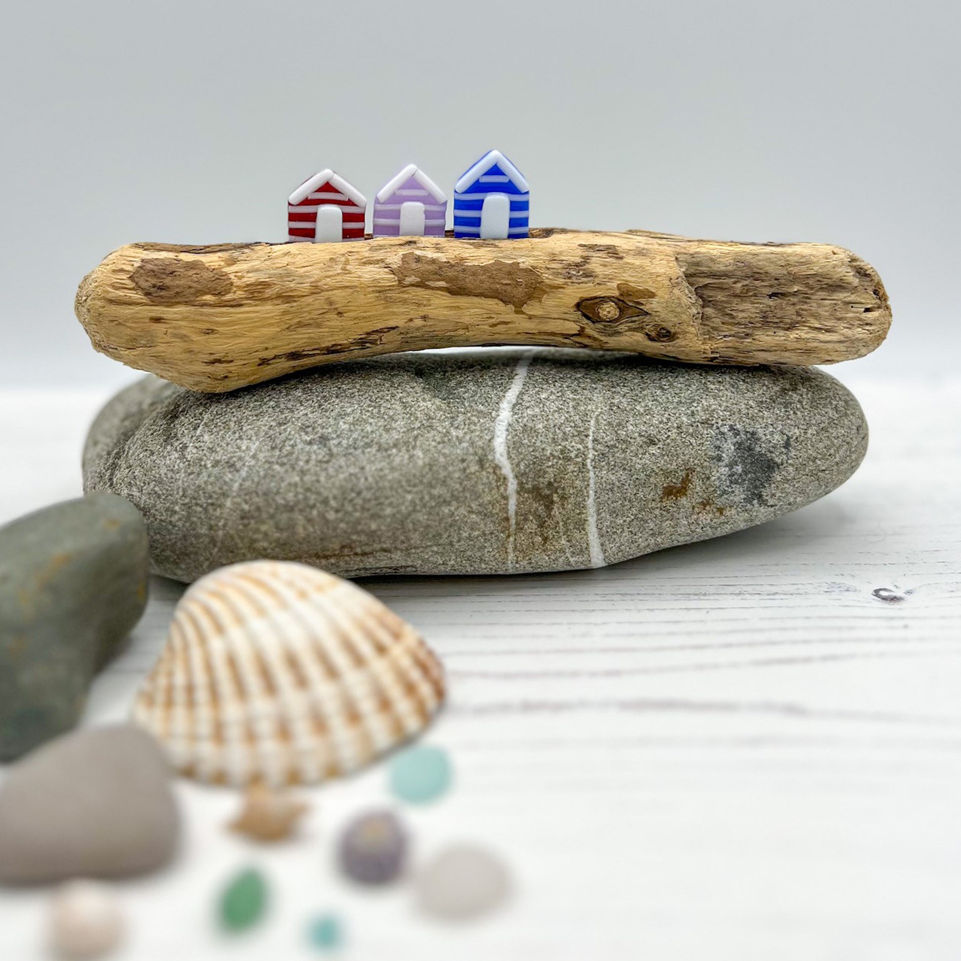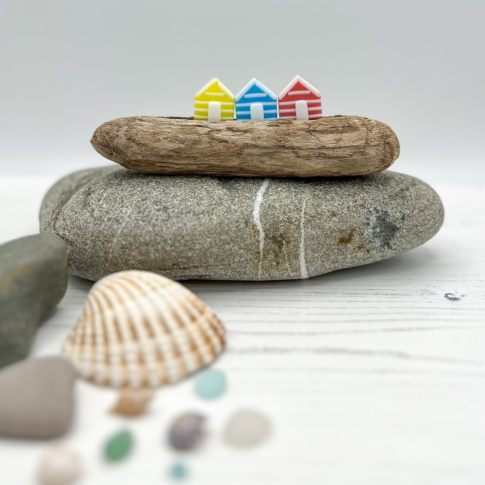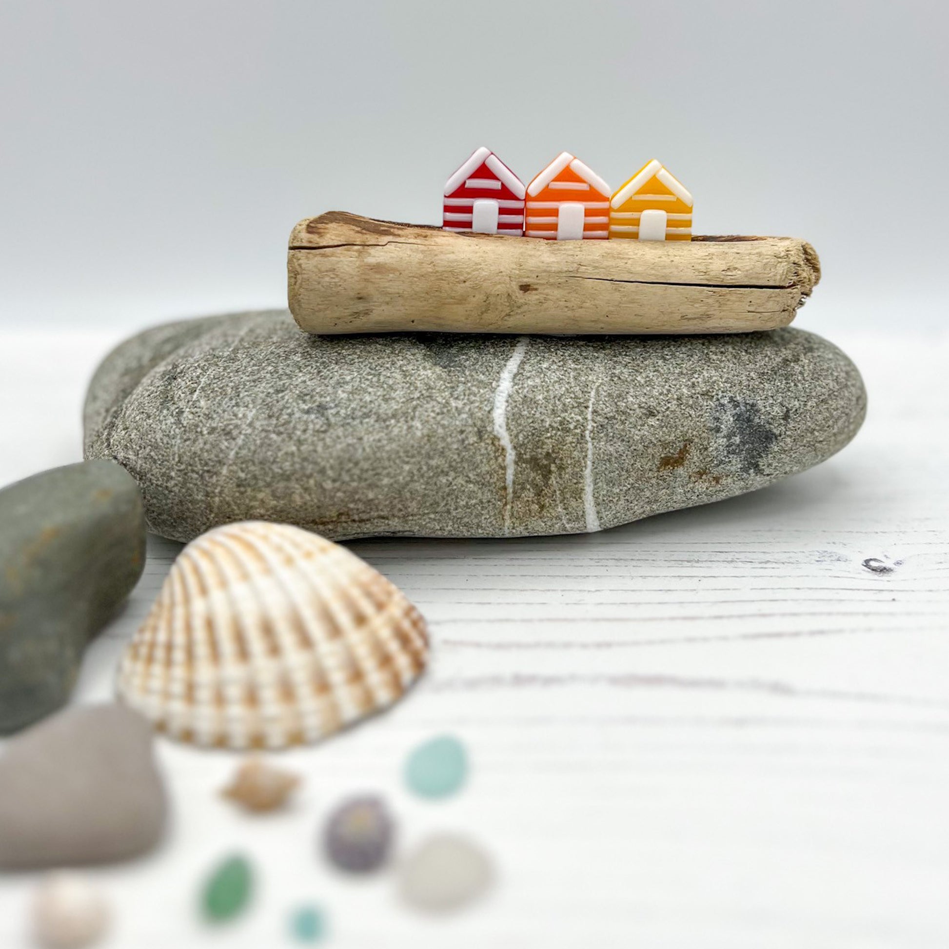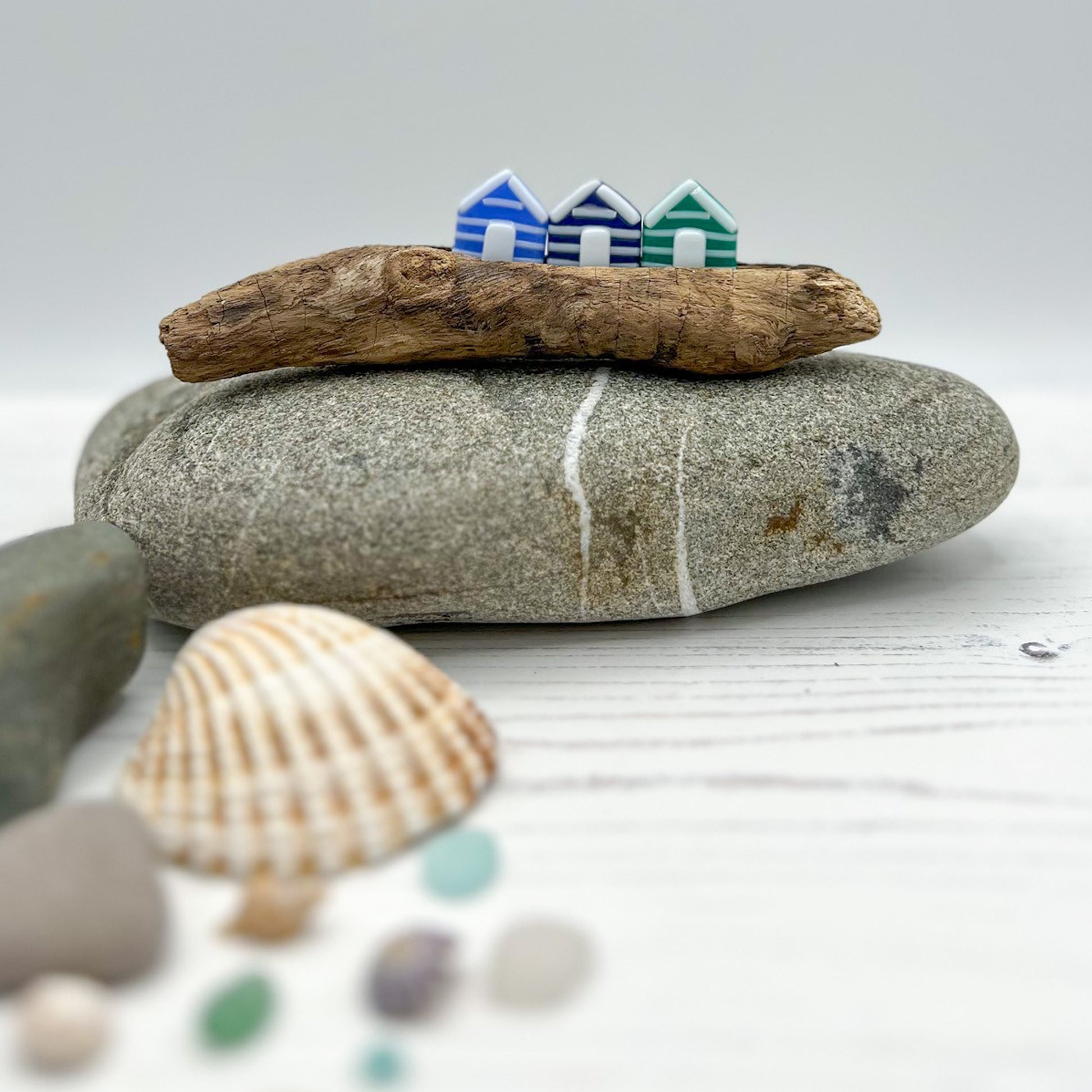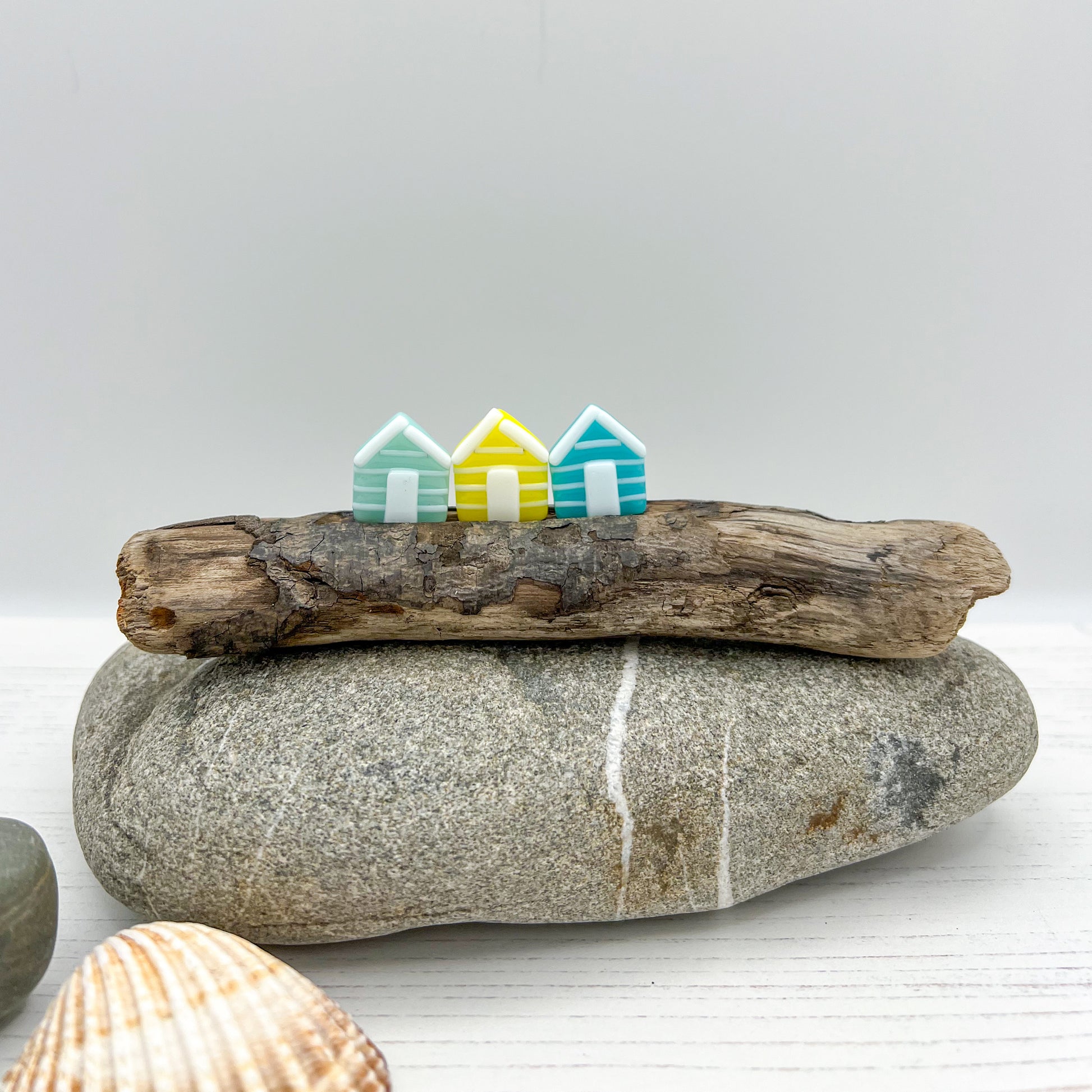 Whilst the driftwood is drying I make the beach huts out of opaque colourful glass. One beach hut is a 22 step process! I then combine the driftwood and glass together.