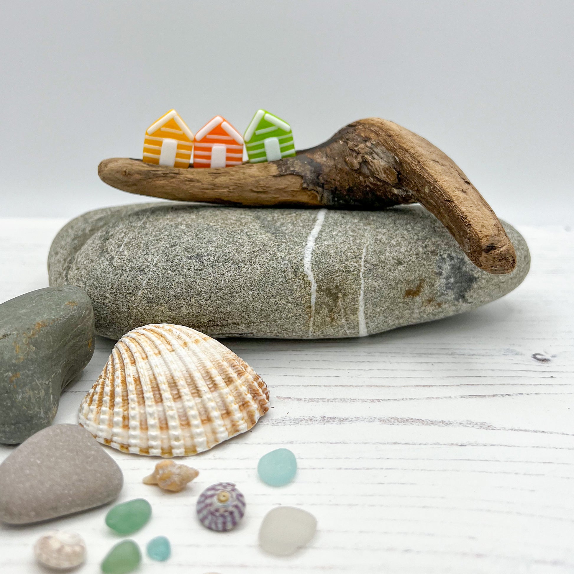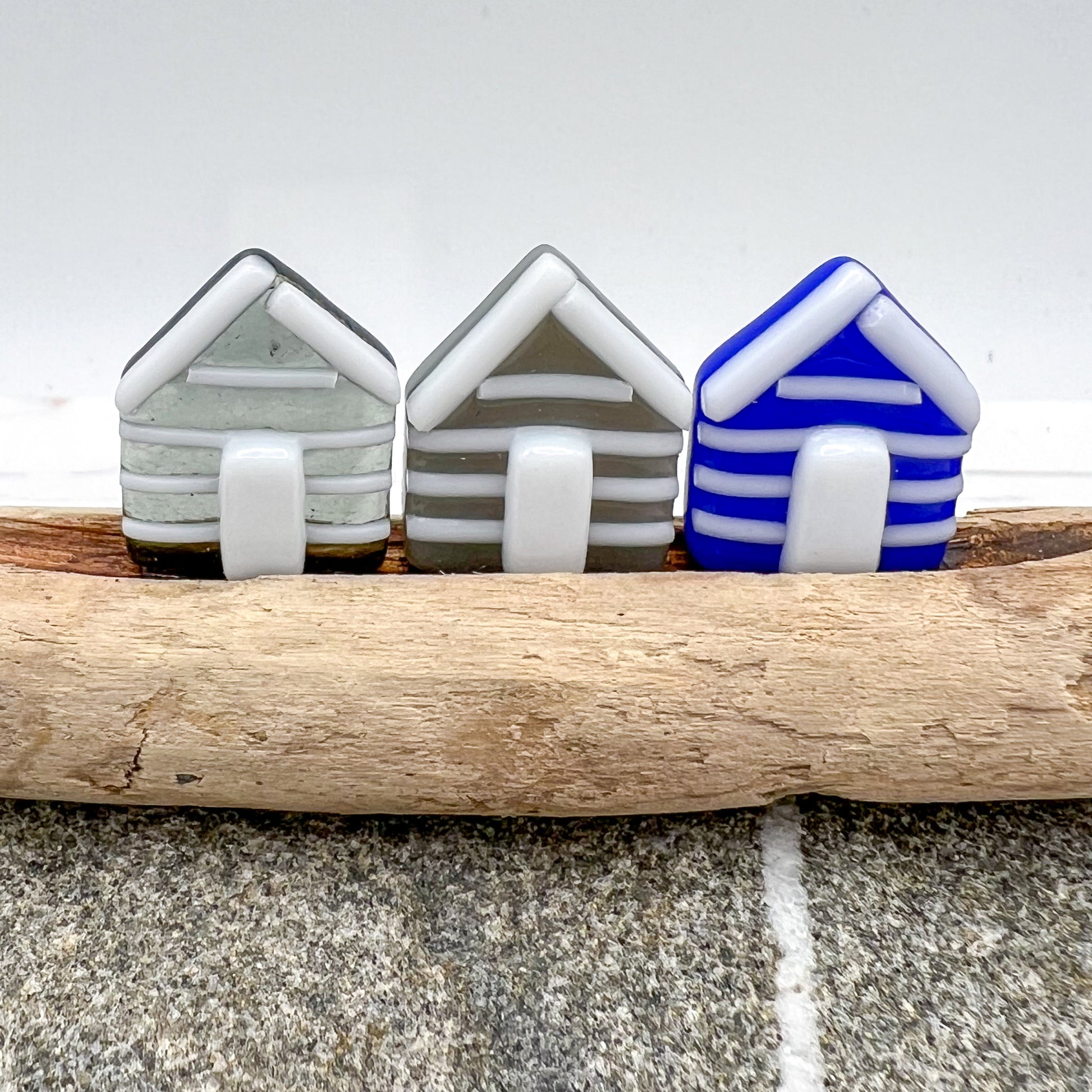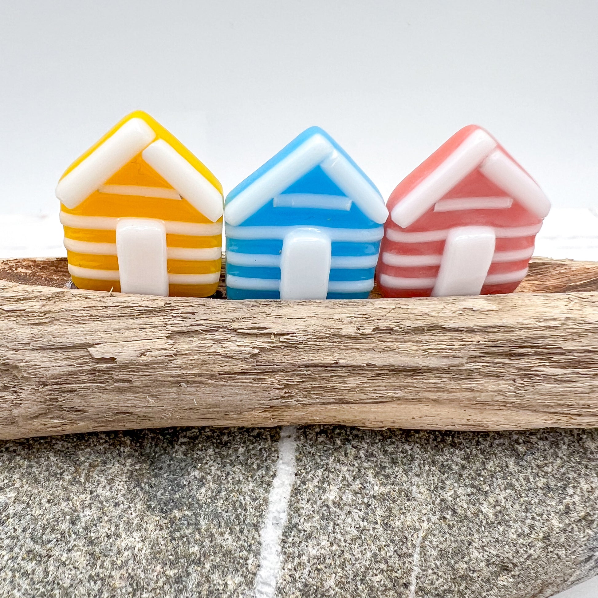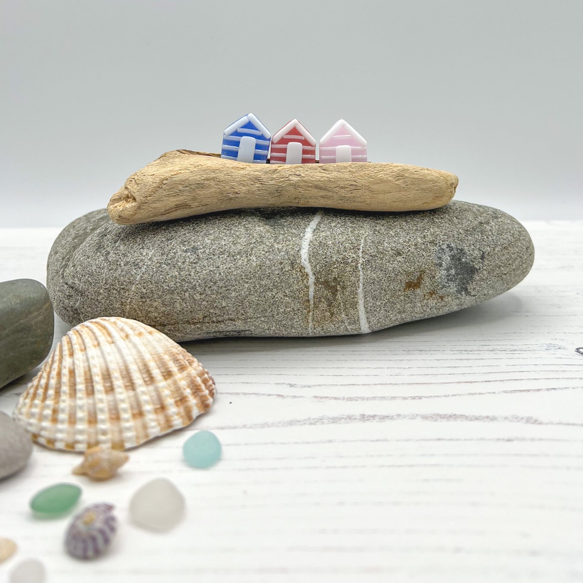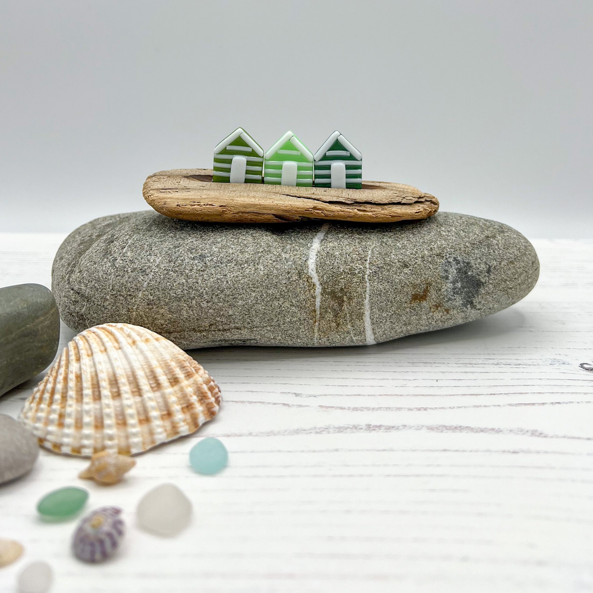 Whilst the driftwood is drying I make the beach huts out of opaque colourful glass. One beach hut is a 22 step process! I then combine the driftwood and glass together.