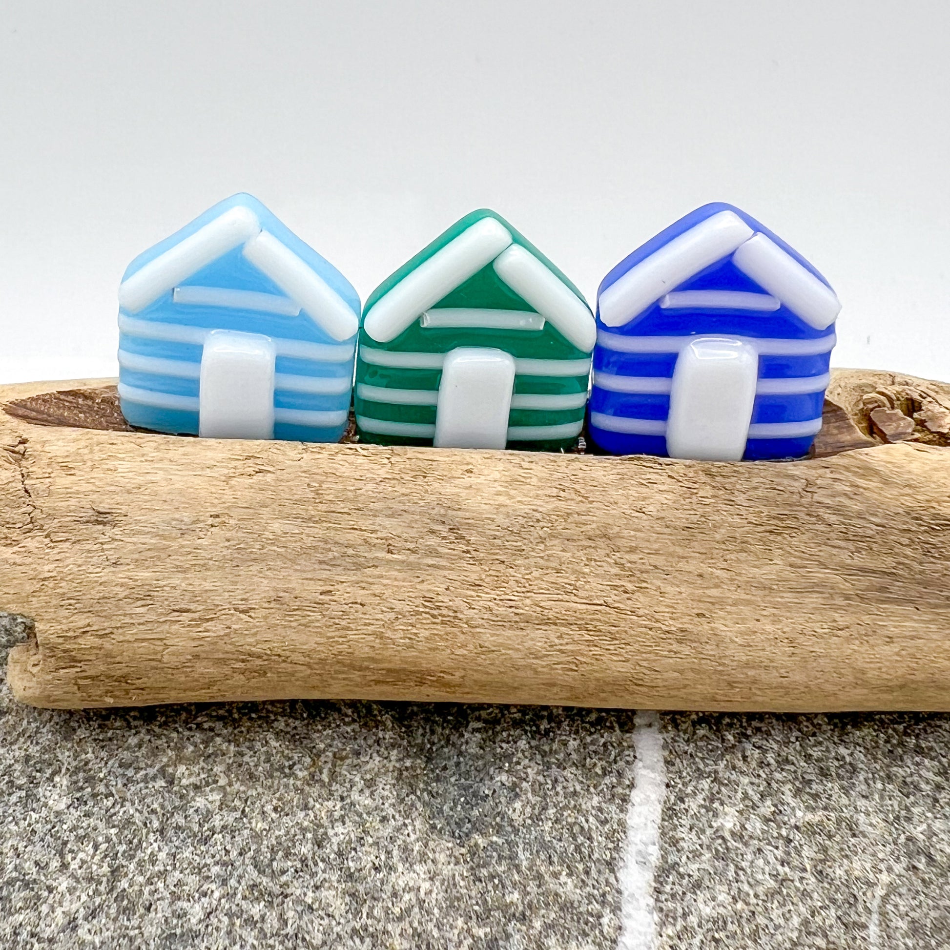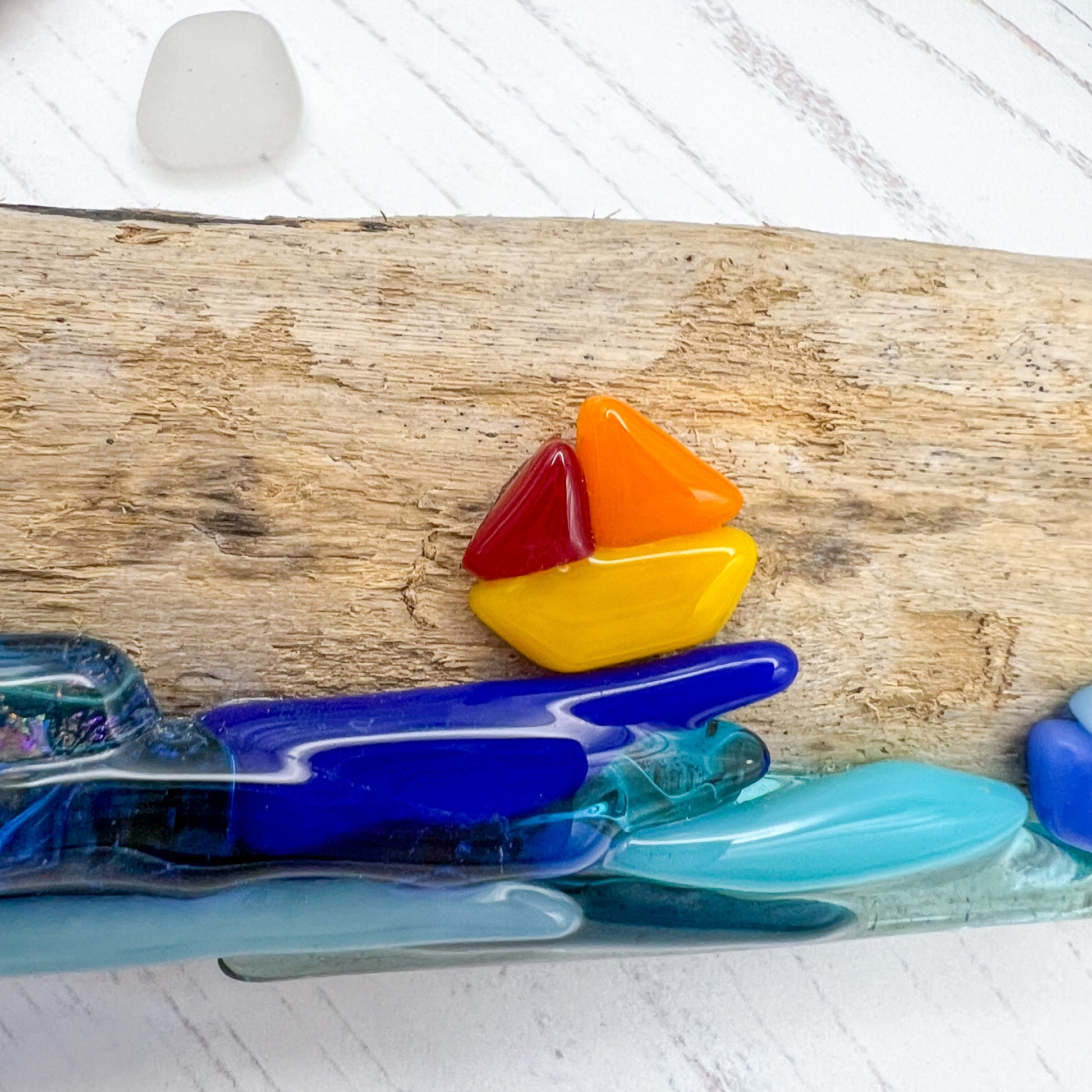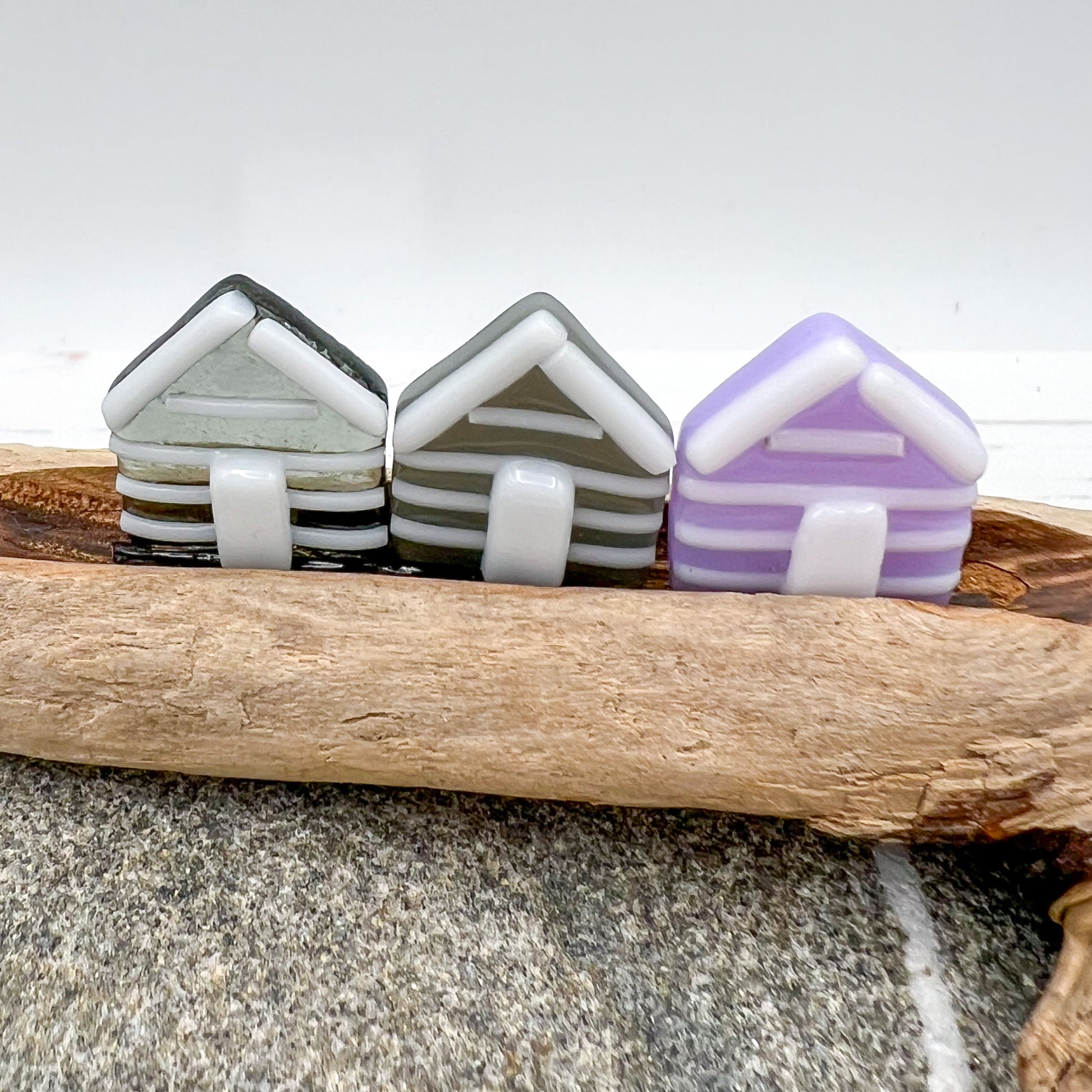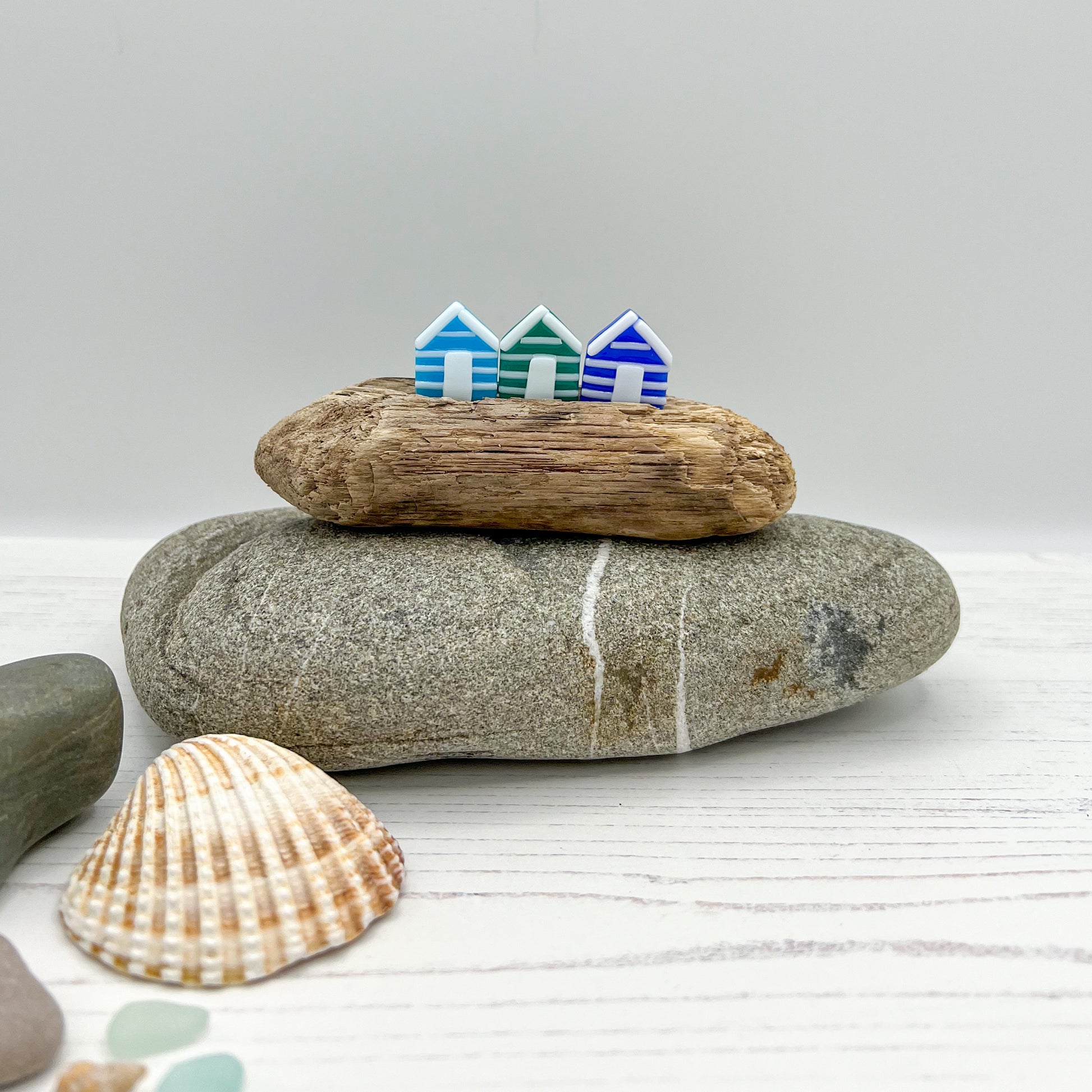 Whilst the driftwood is drying I make the beach huts out of opaque colourful glass. One beach hut is a 22 step process! I then combine the driftwood and glass together.