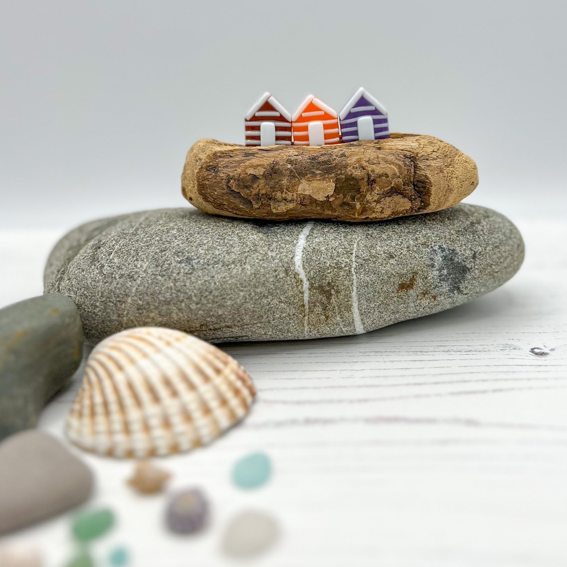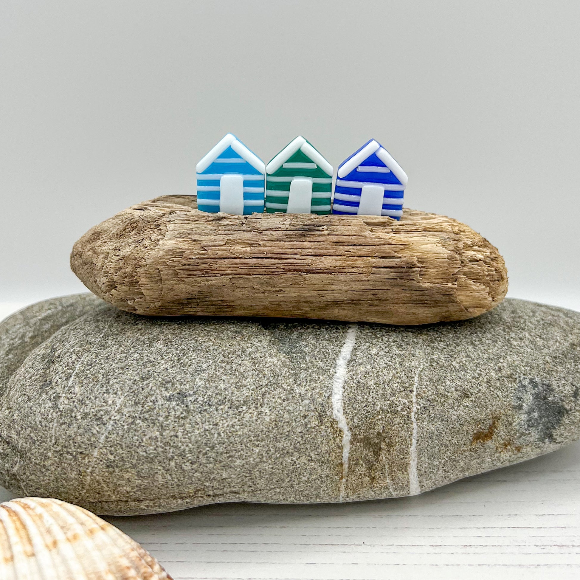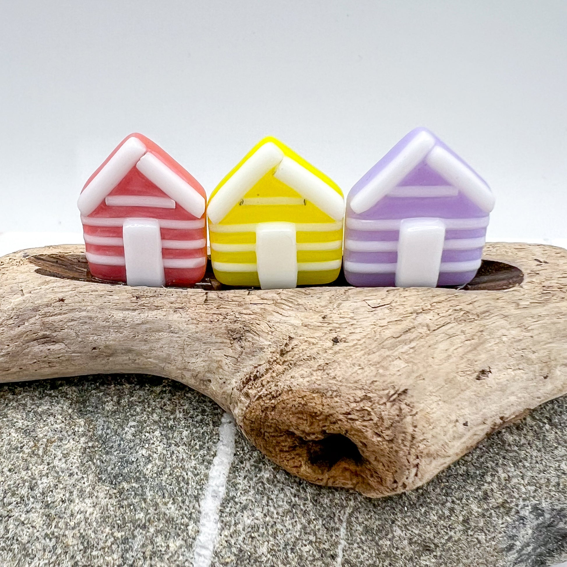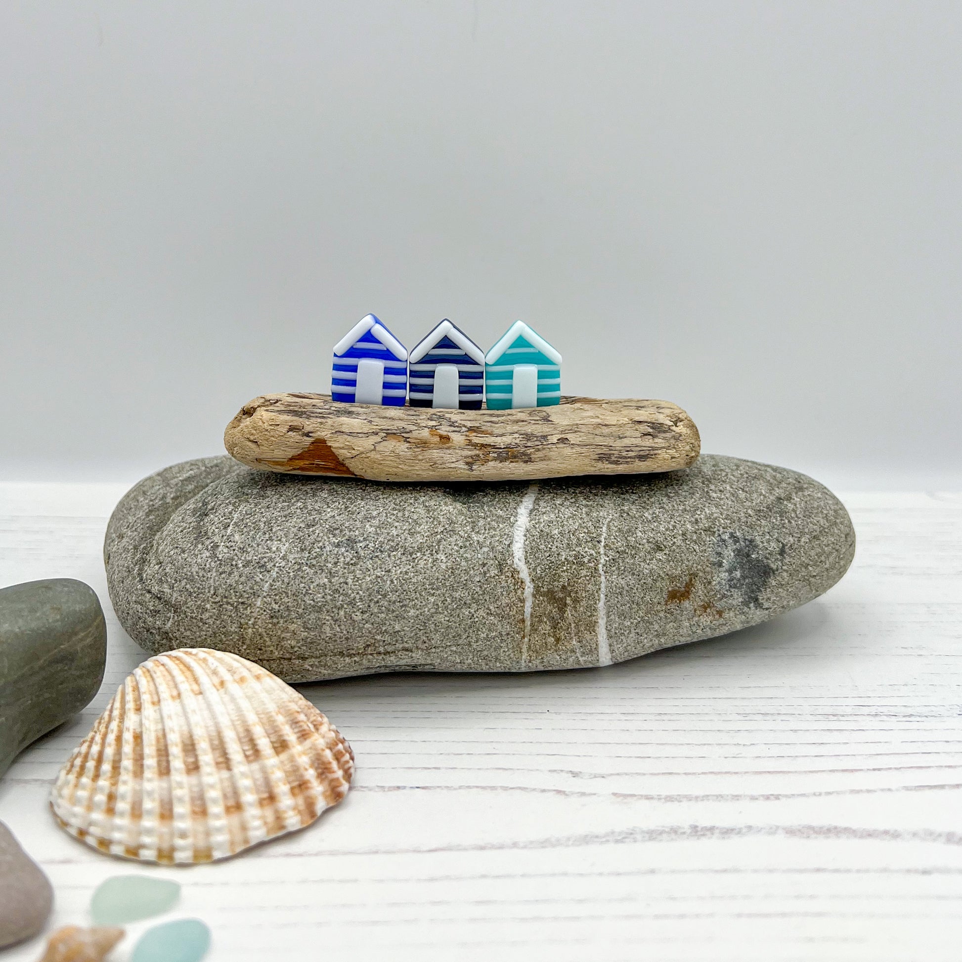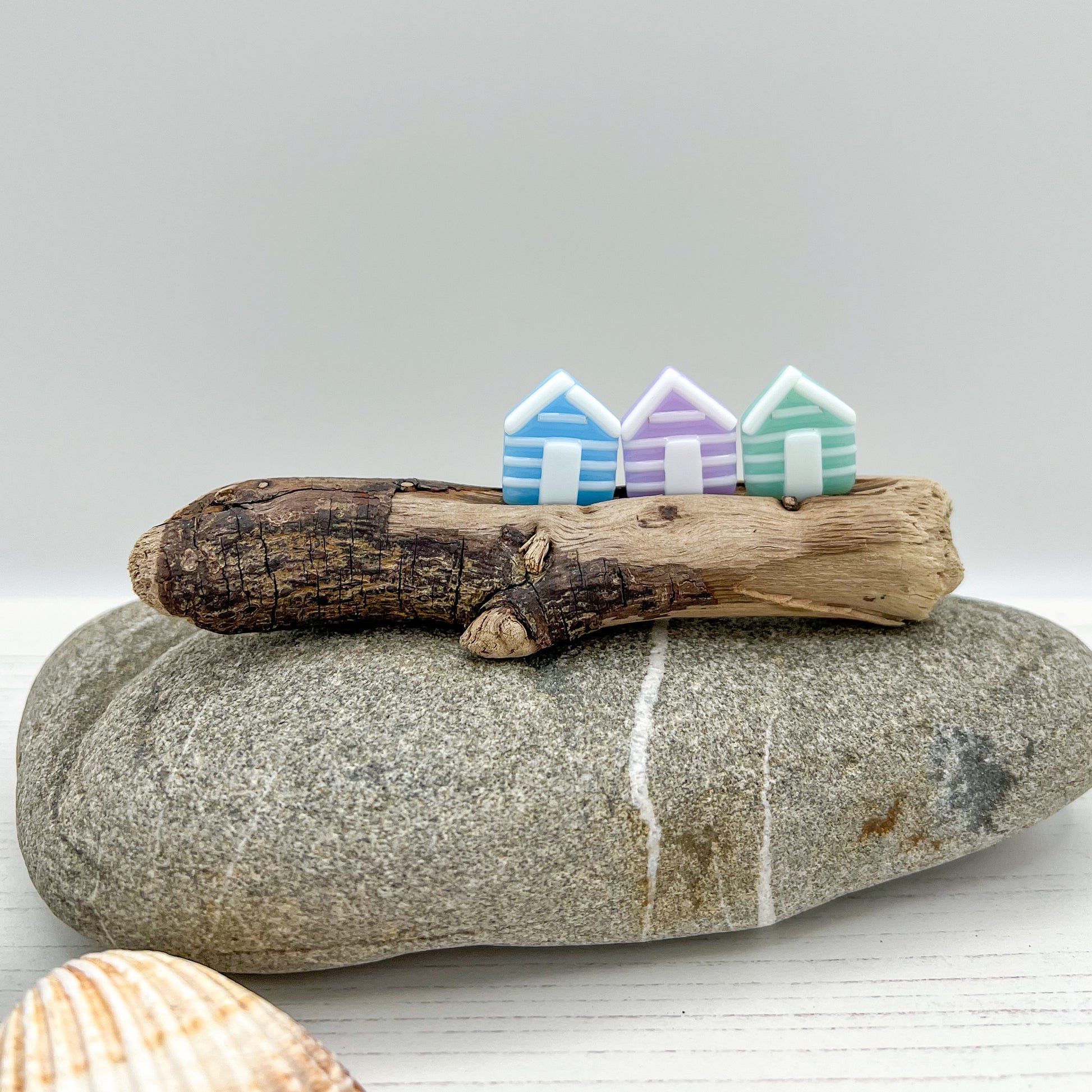 Whilst the driftwood is drying I make the beach huts out of opaque colourful glass. One beach hut is a 22 step process! I then combine the driftwood and glass together.