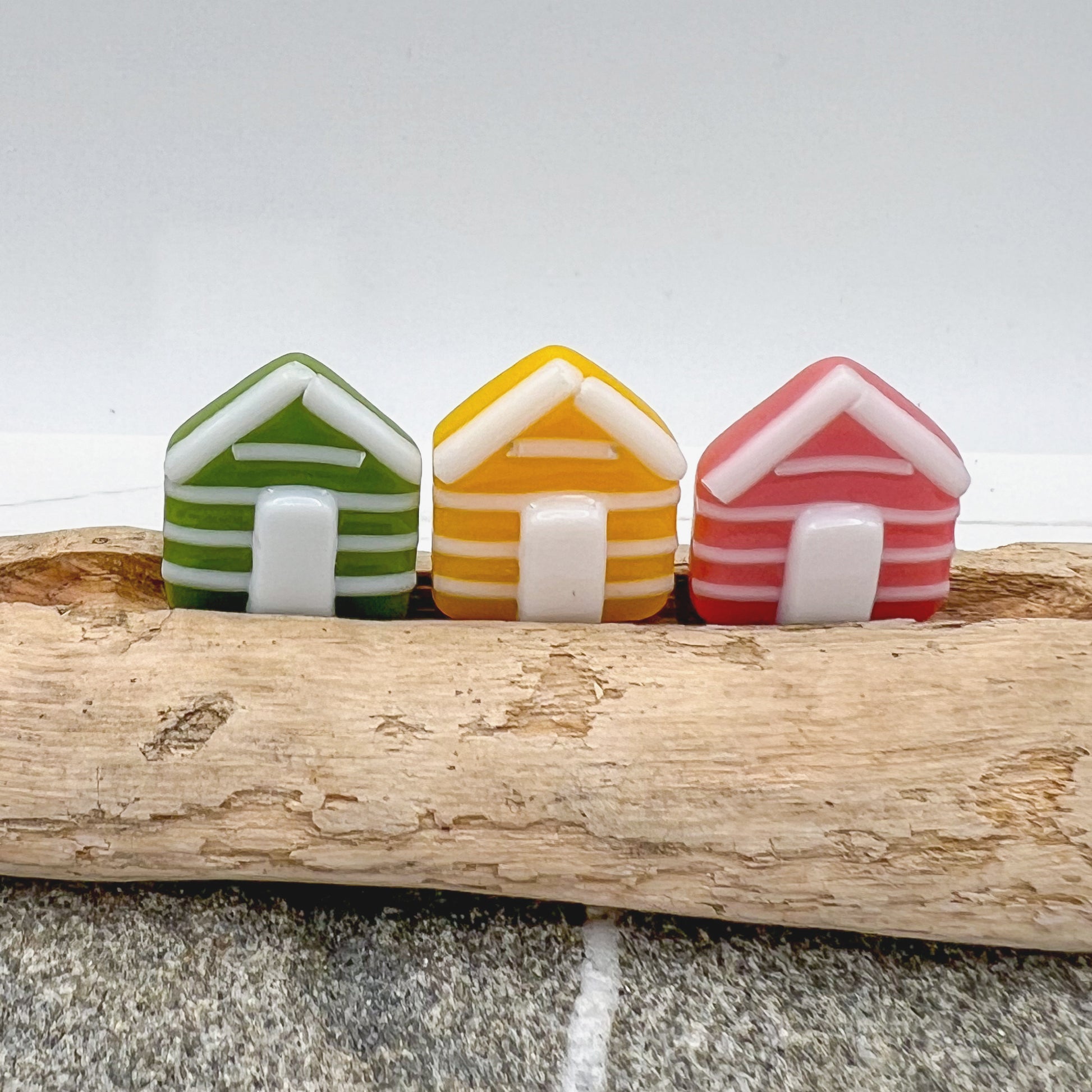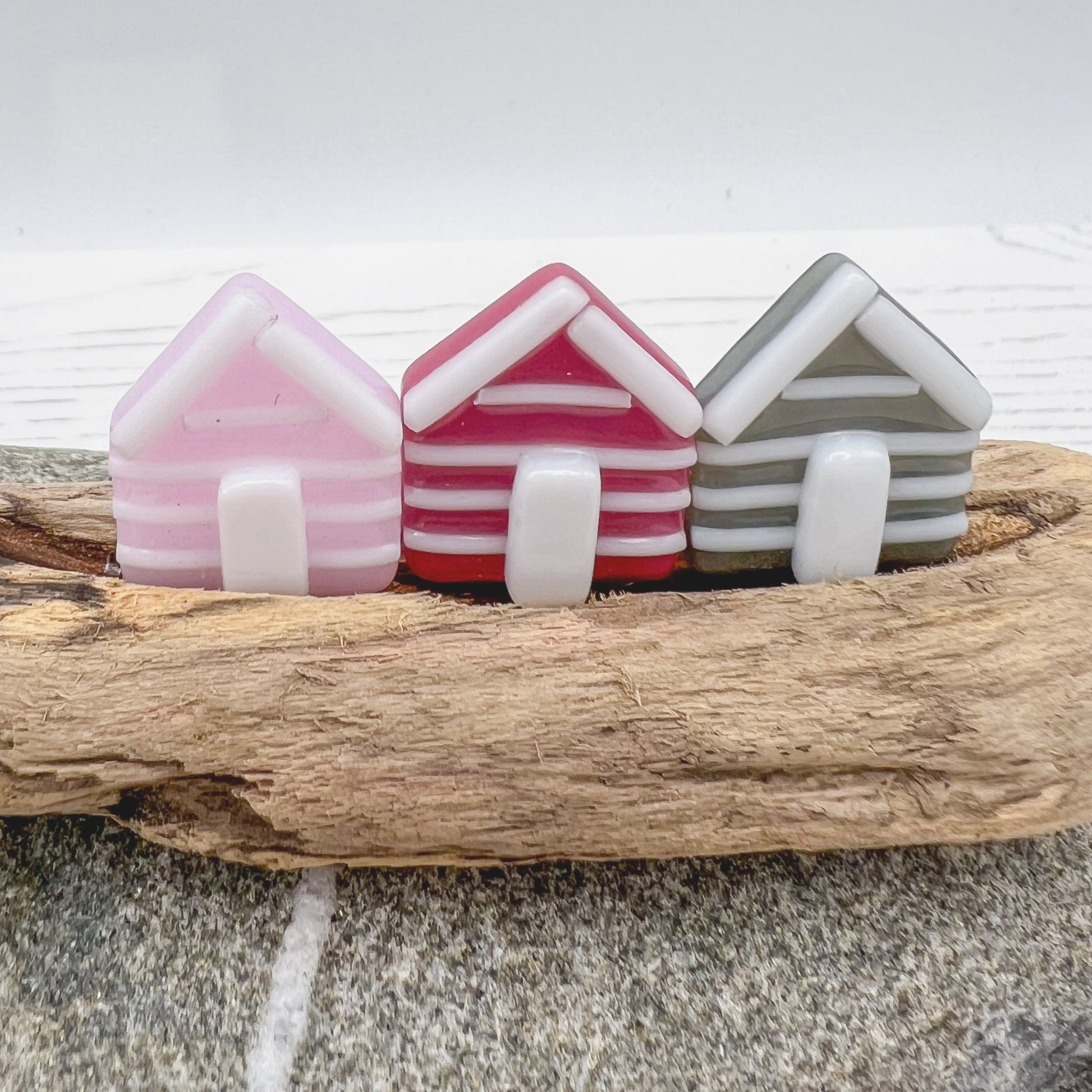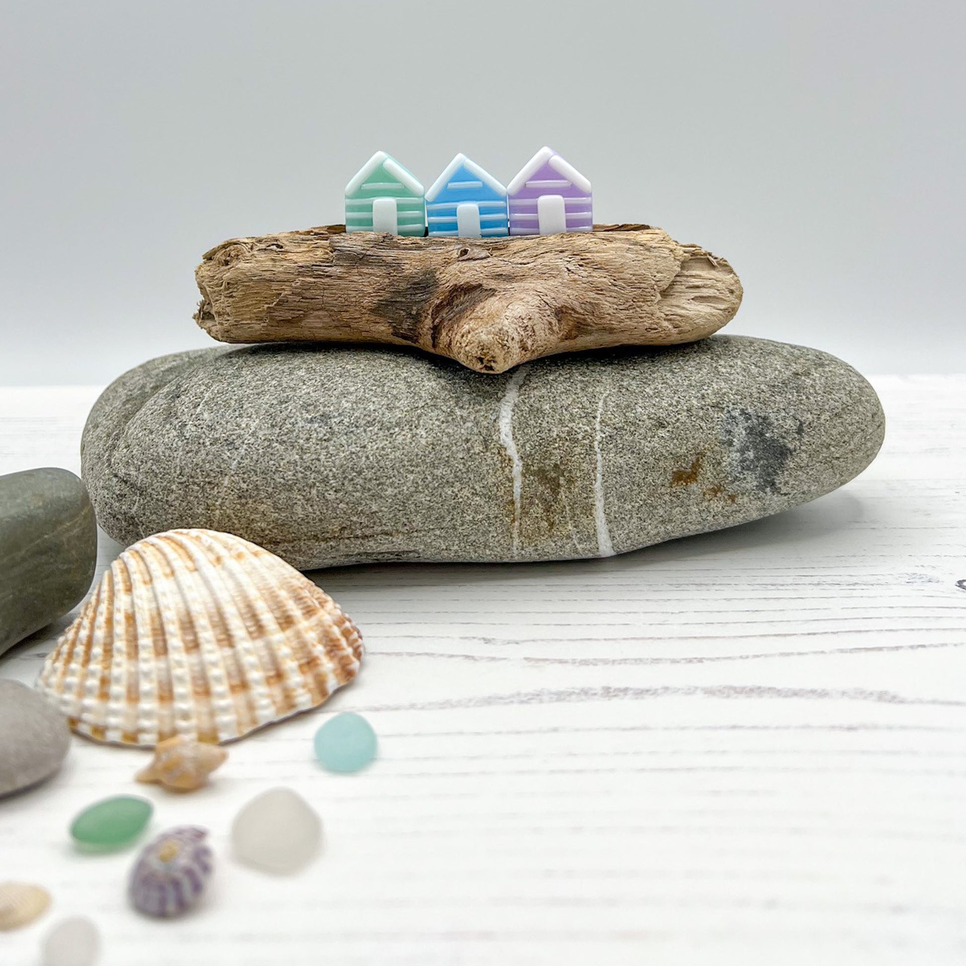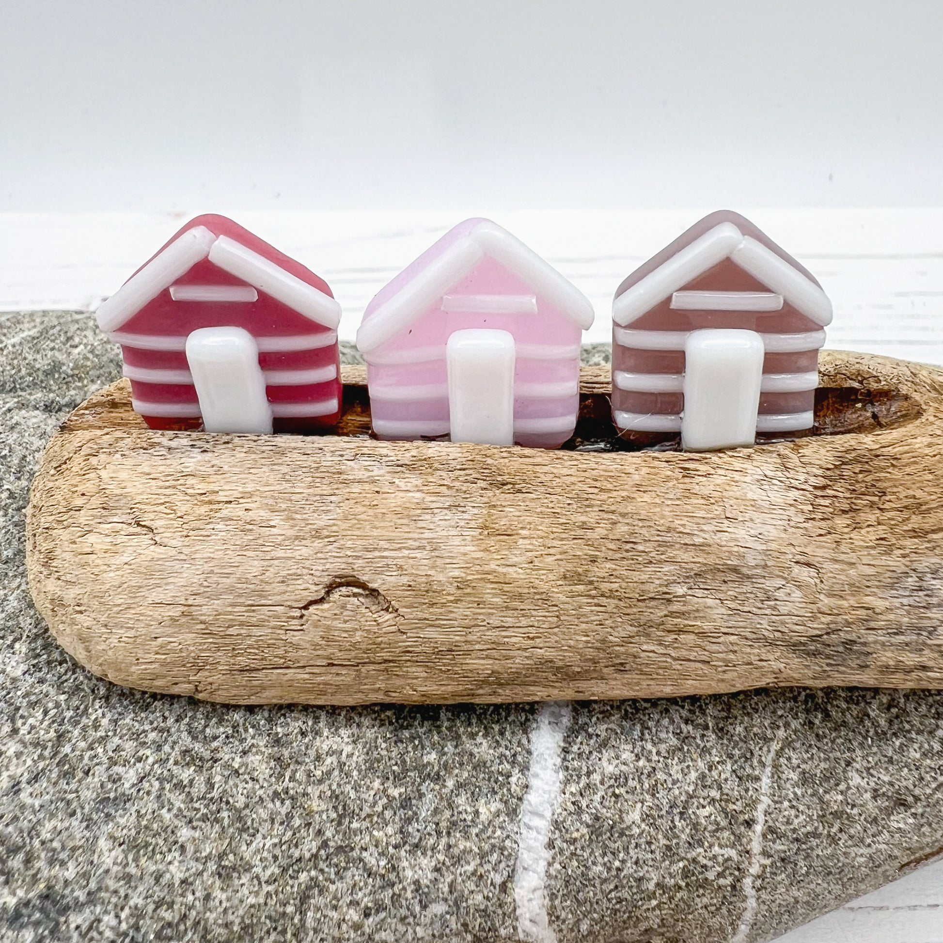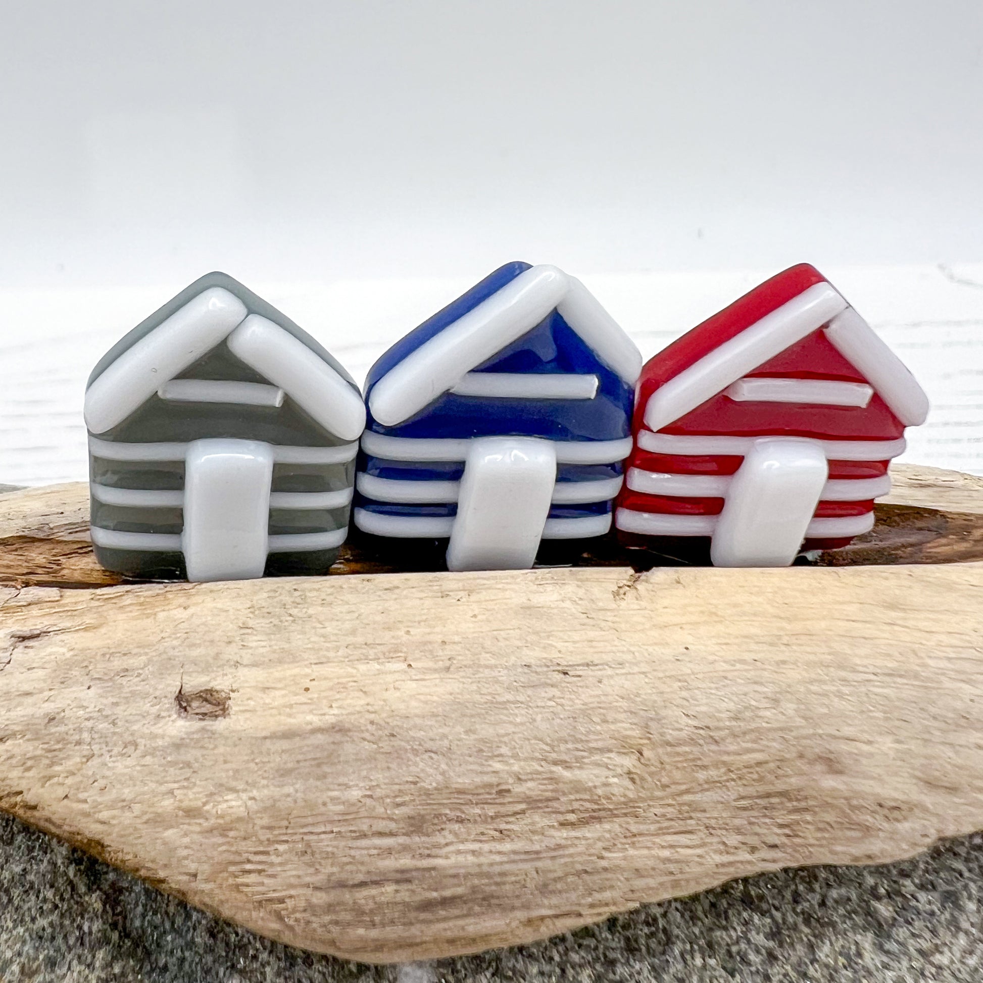 Whilst the driftwood is drying I make the beach huts out of opaque colourful glass. One beach hut is a 22 step process! I then combine the driftwood and glass together.