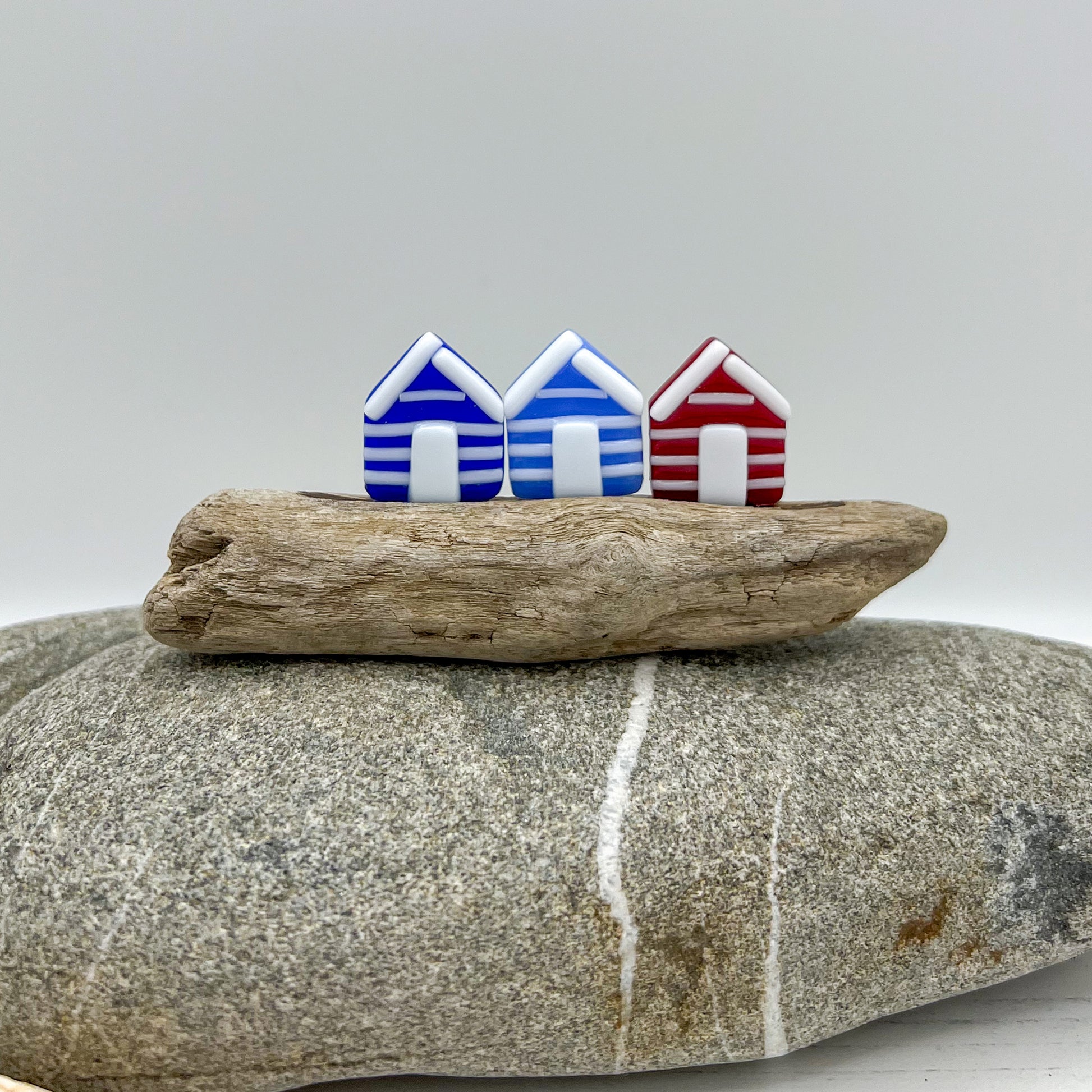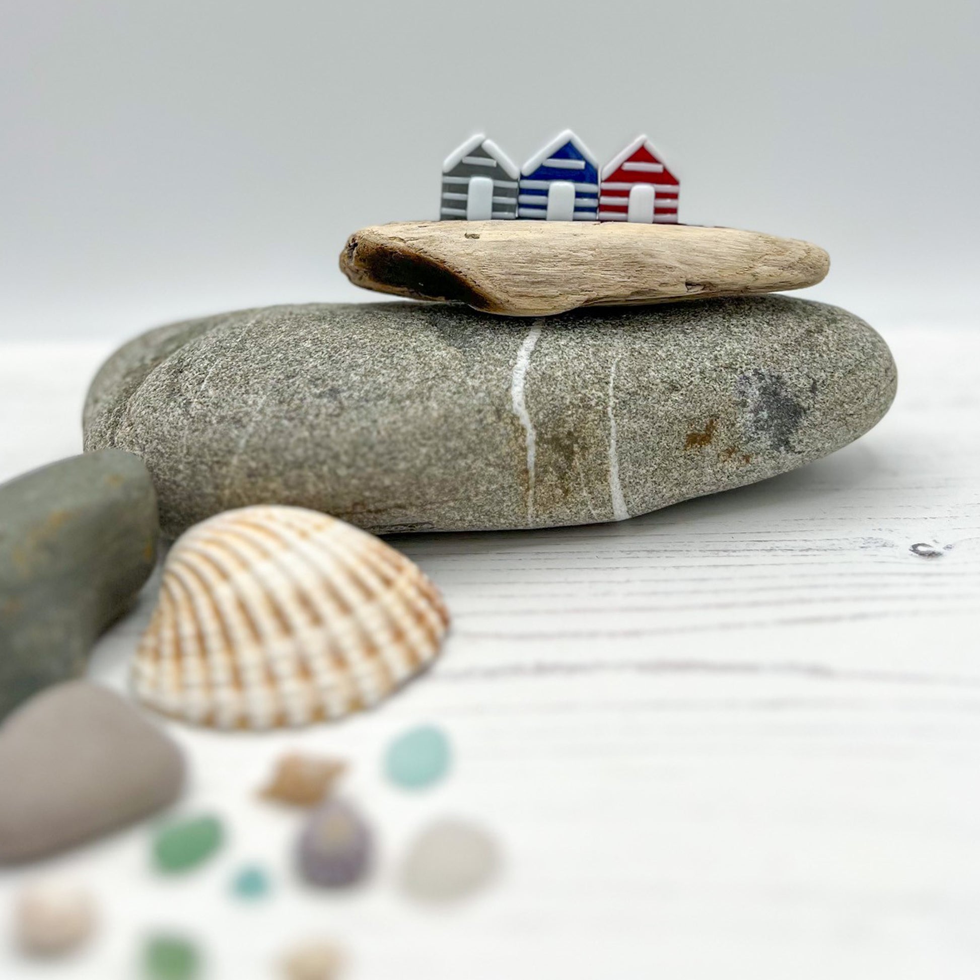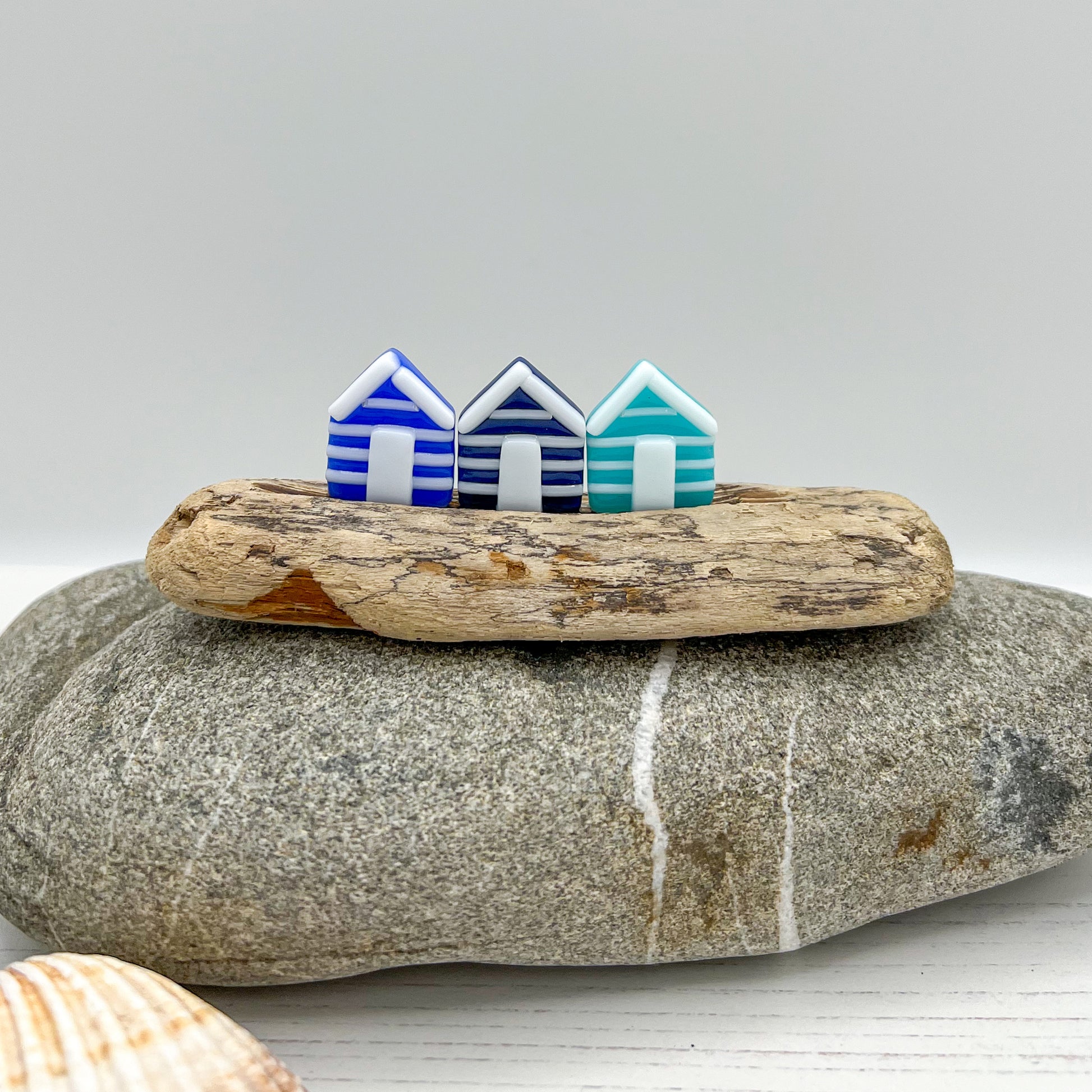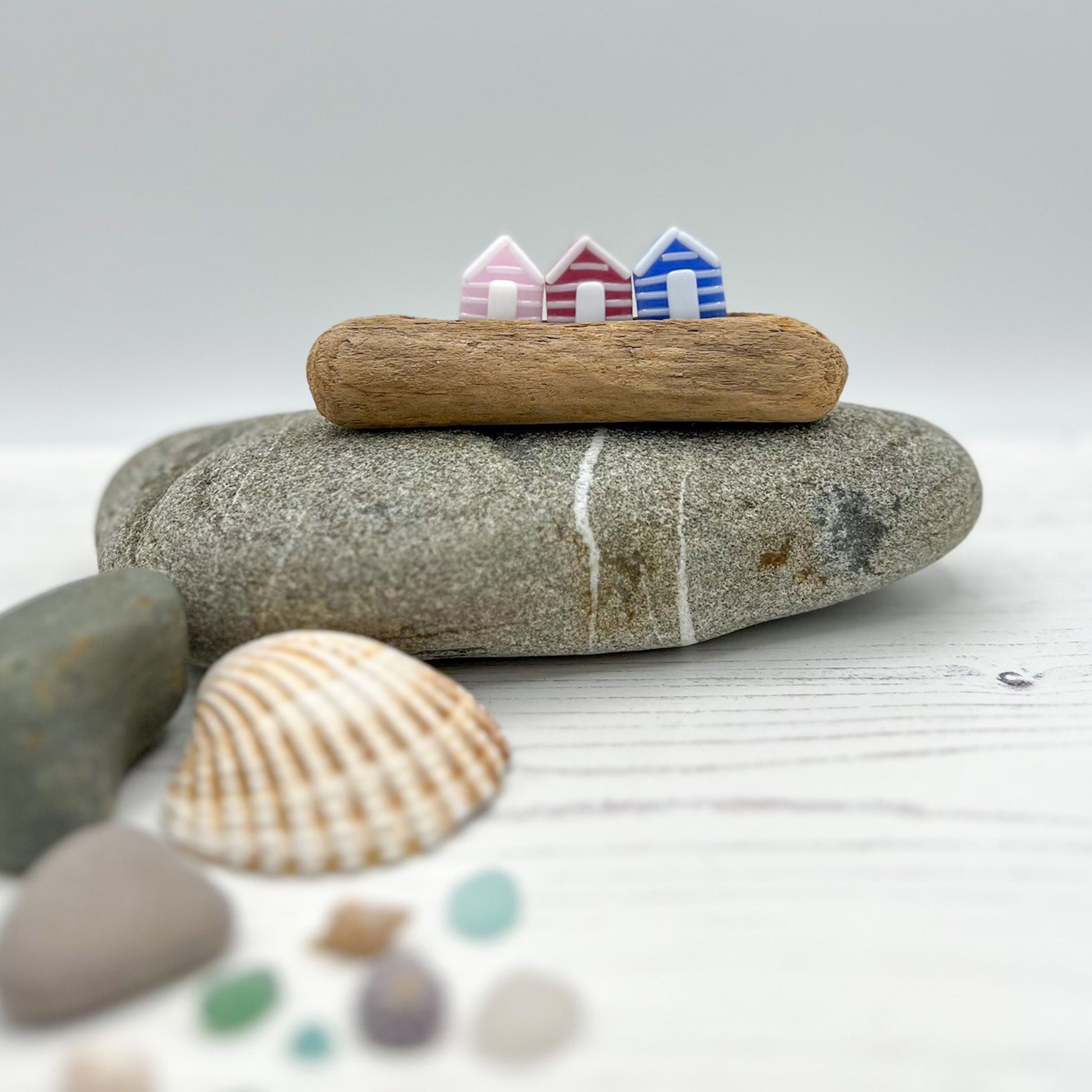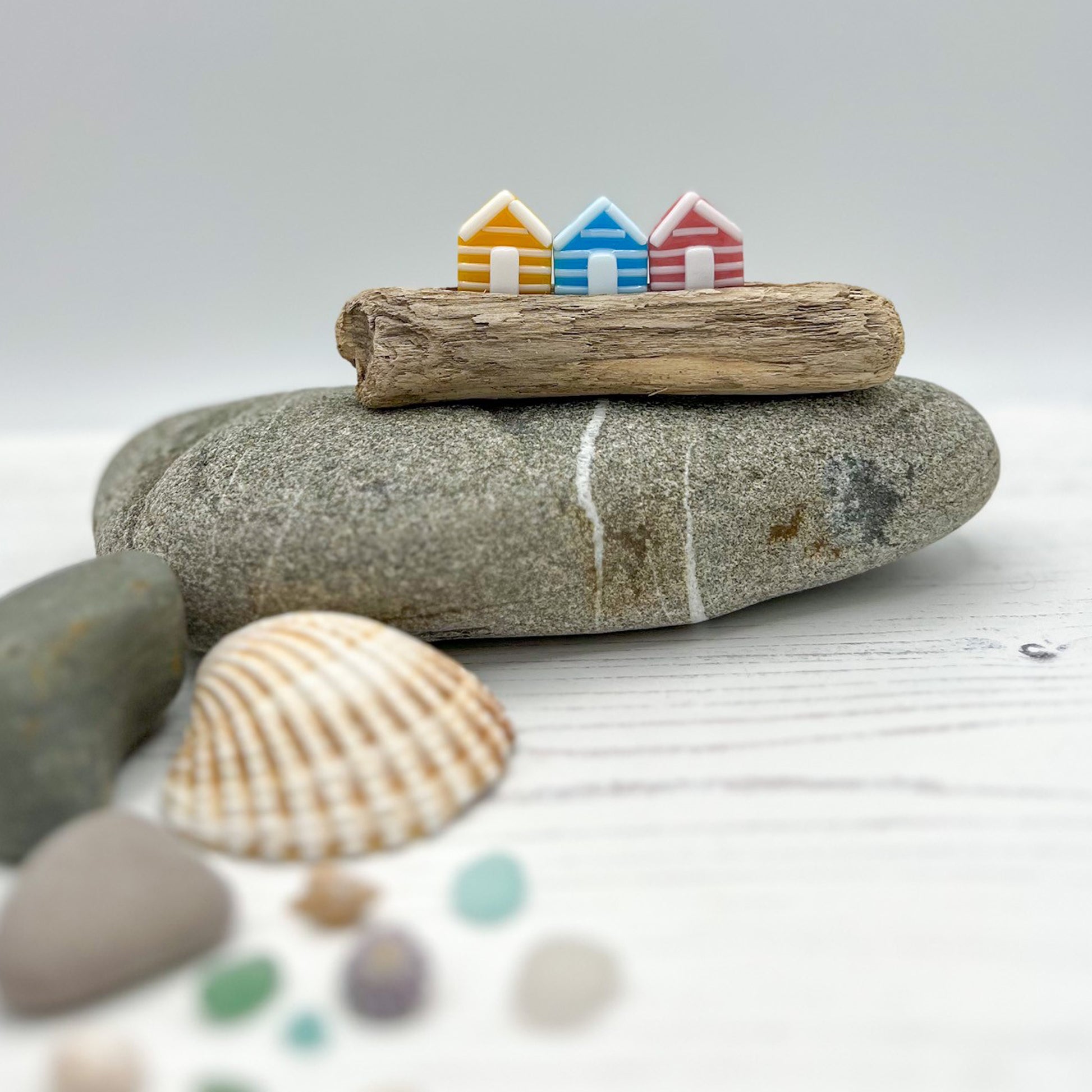 Whilst the driftwood is drying I make the beach huts out of opaque colourful glass. One beach hut is a 22 step process! I then combine the driftwood and glass together.