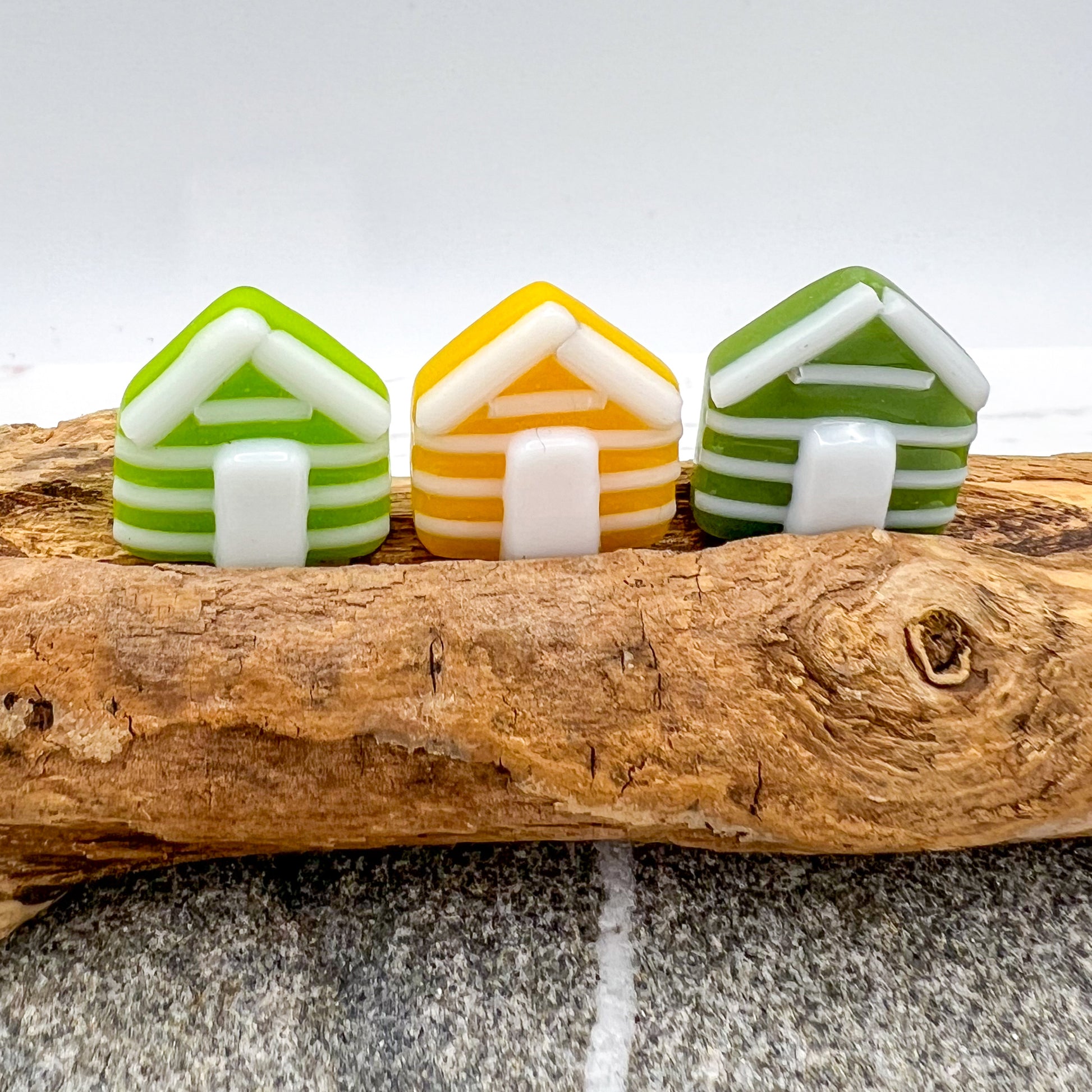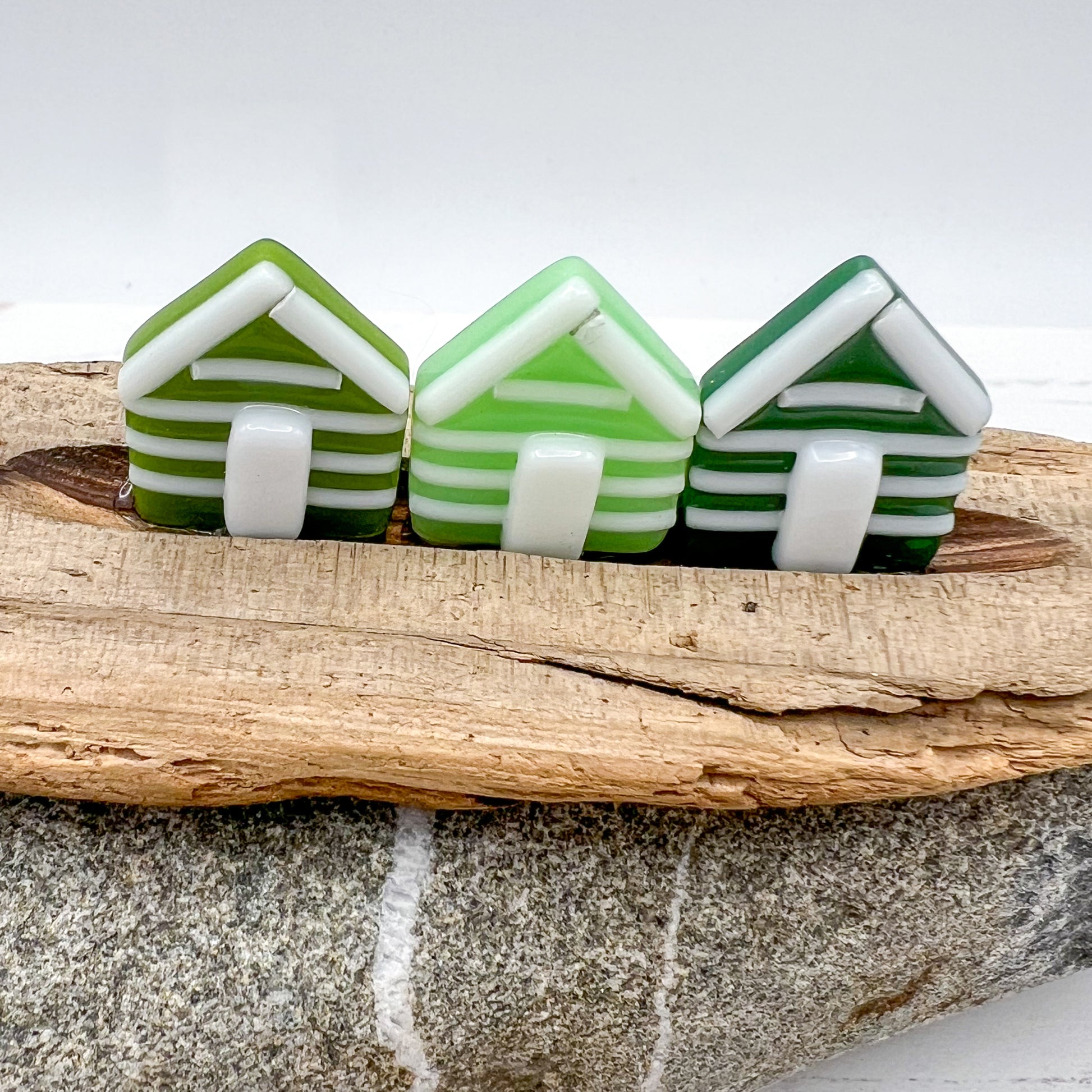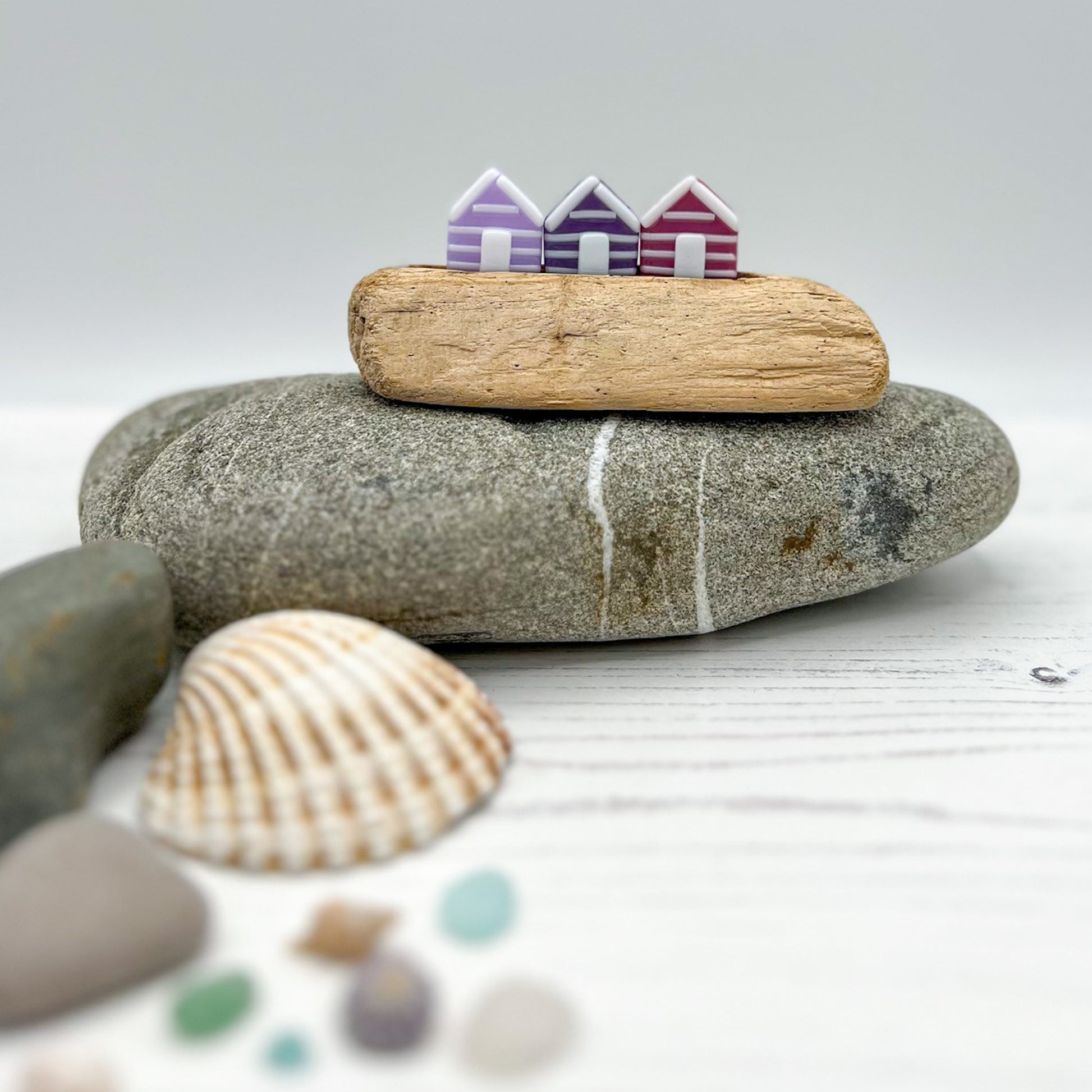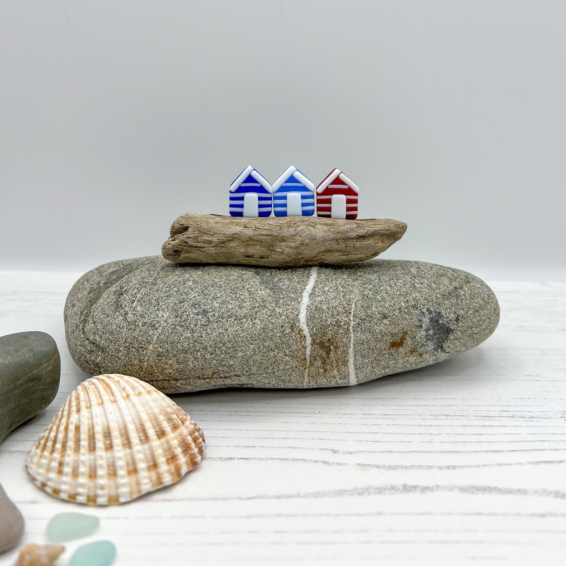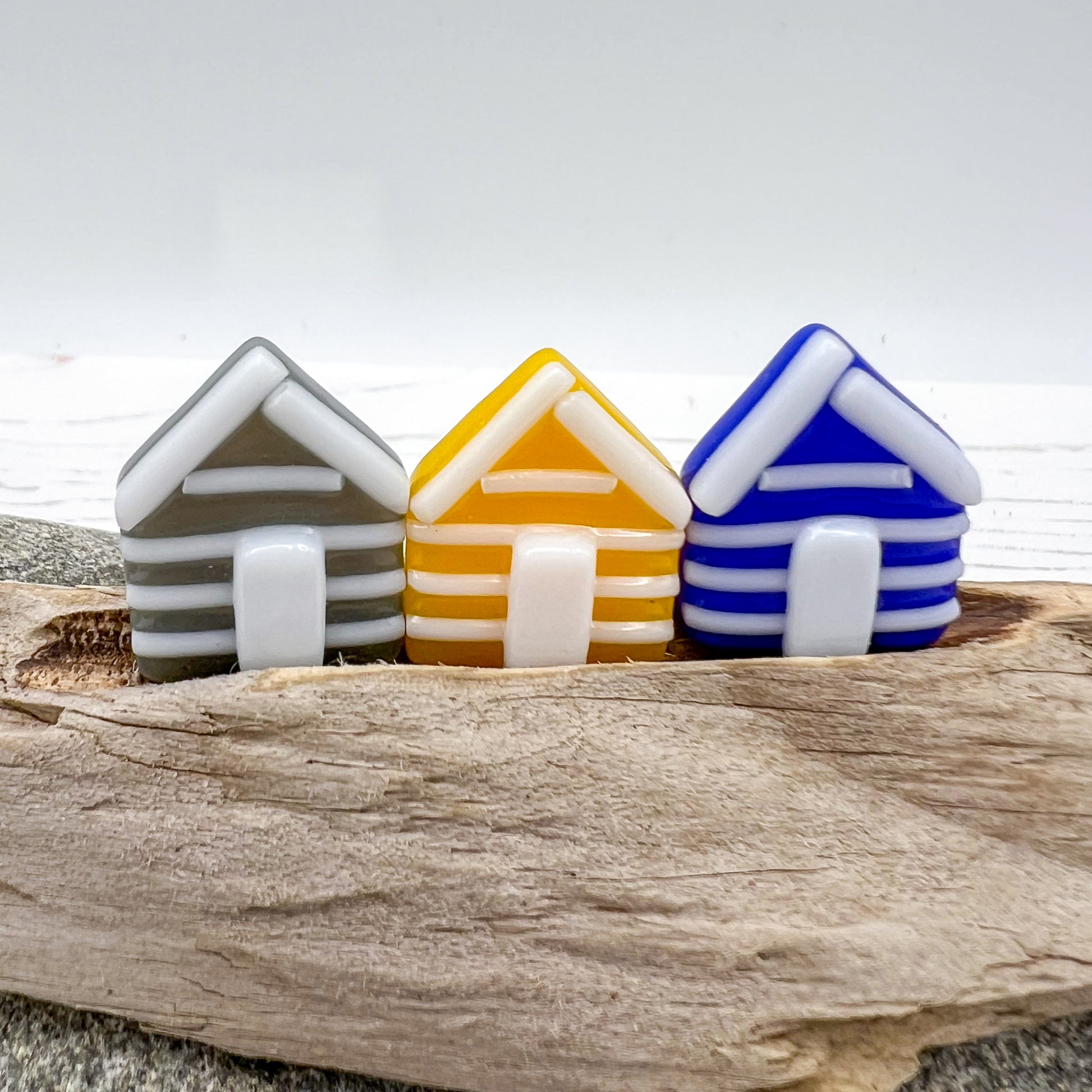 Whilst the driftwood is drying I make the beach huts out of opaque colourful glass. One beach hut is a 22 step process! I then combine the driftwood and glass together.