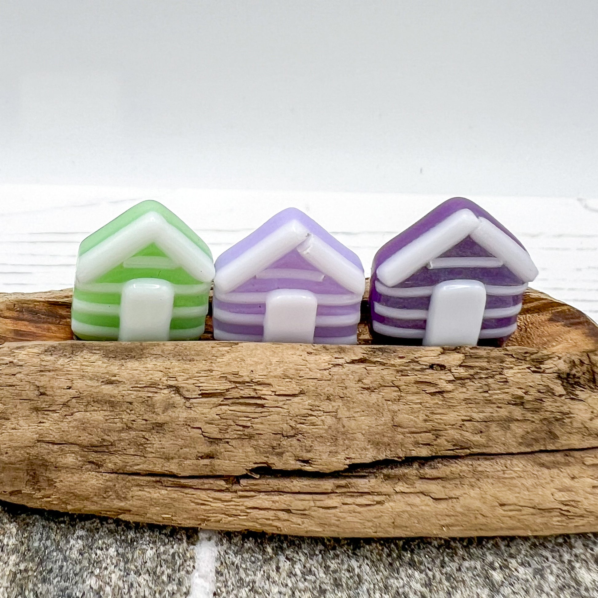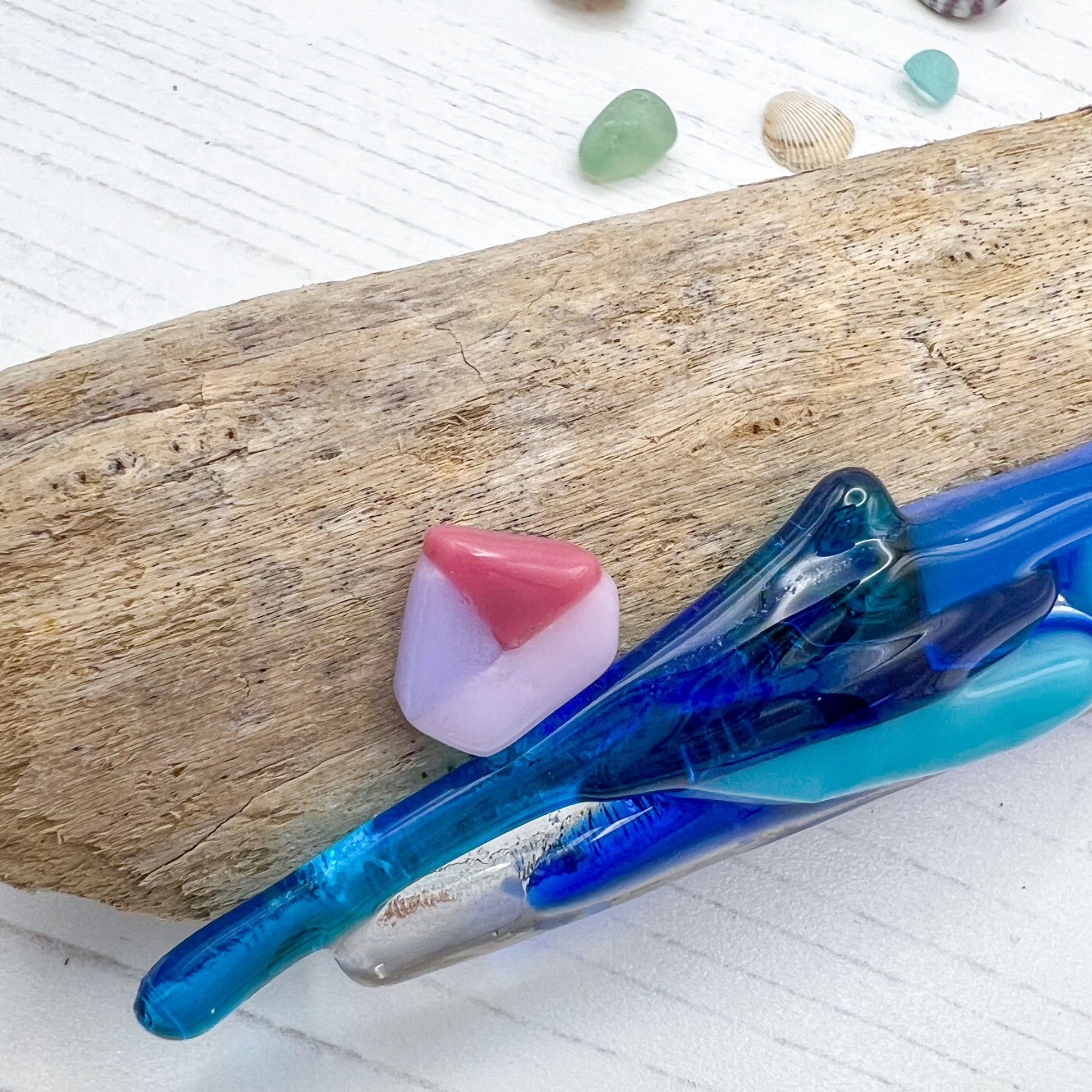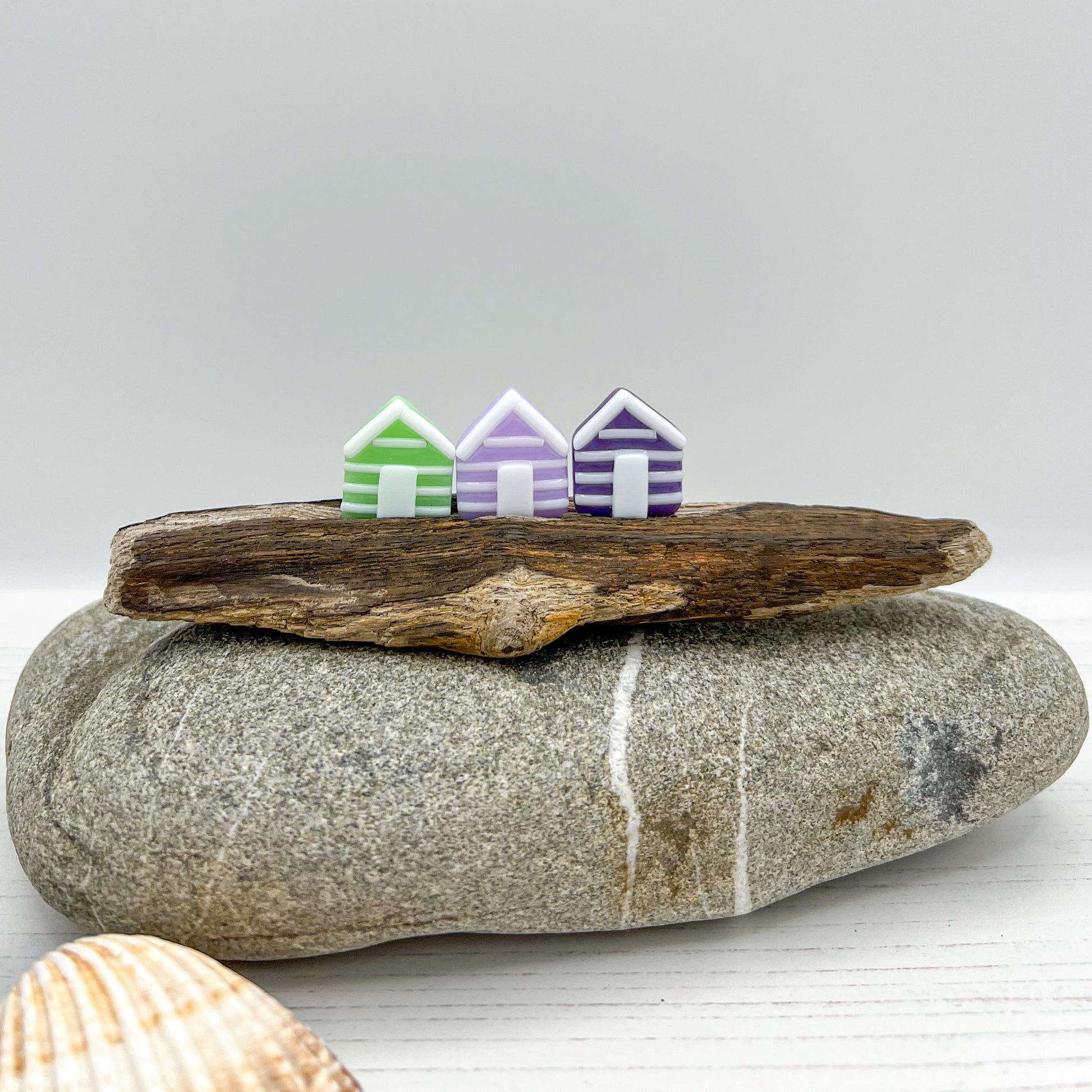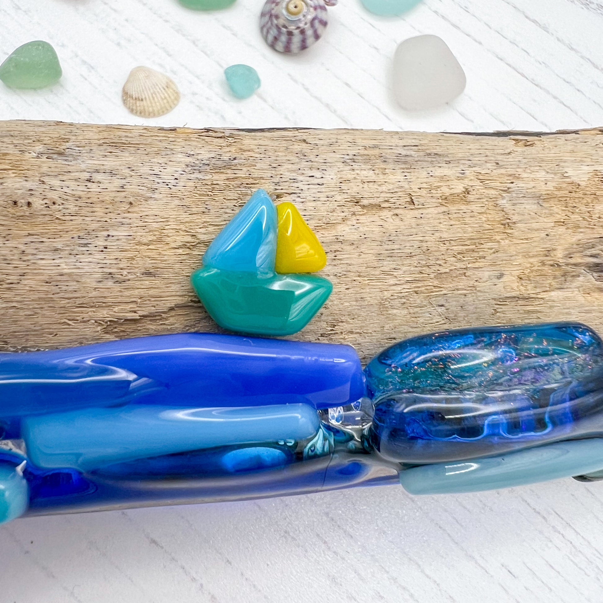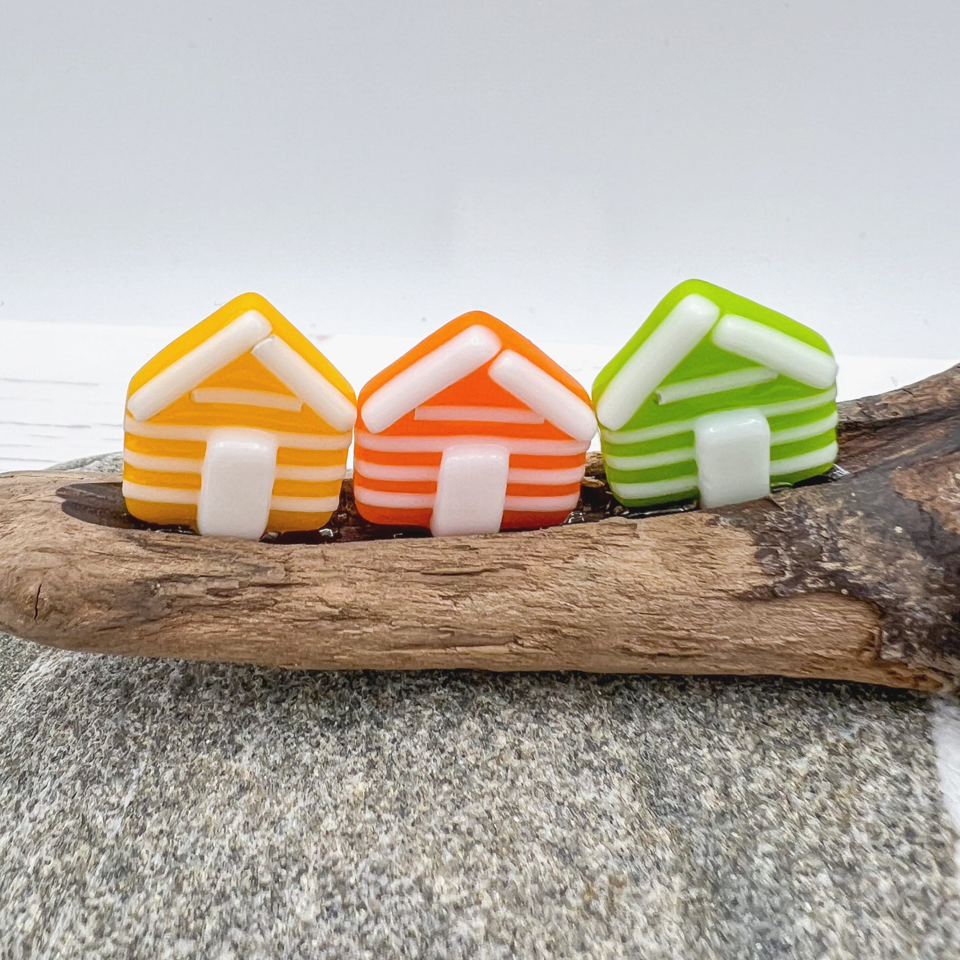 Whilst the driftwood is drying I make the beach huts out of opaque colourful glass. One beach hut is a 22 step process! I then combine the driftwood and glass together.