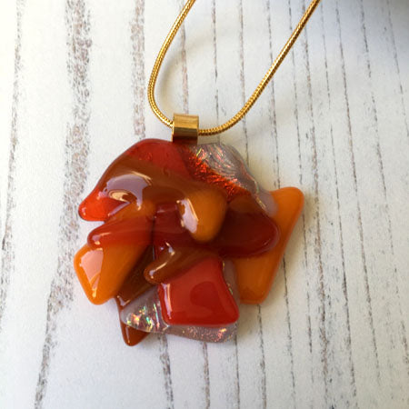 This orange abstract dichroic glass necklace is a handmade necklace that is inspired by one of my favourite styles of creating necklaces.