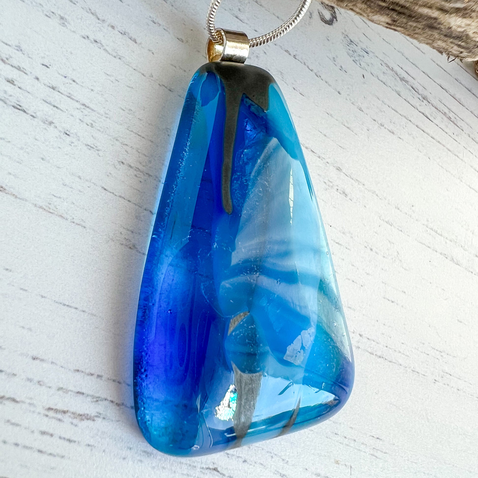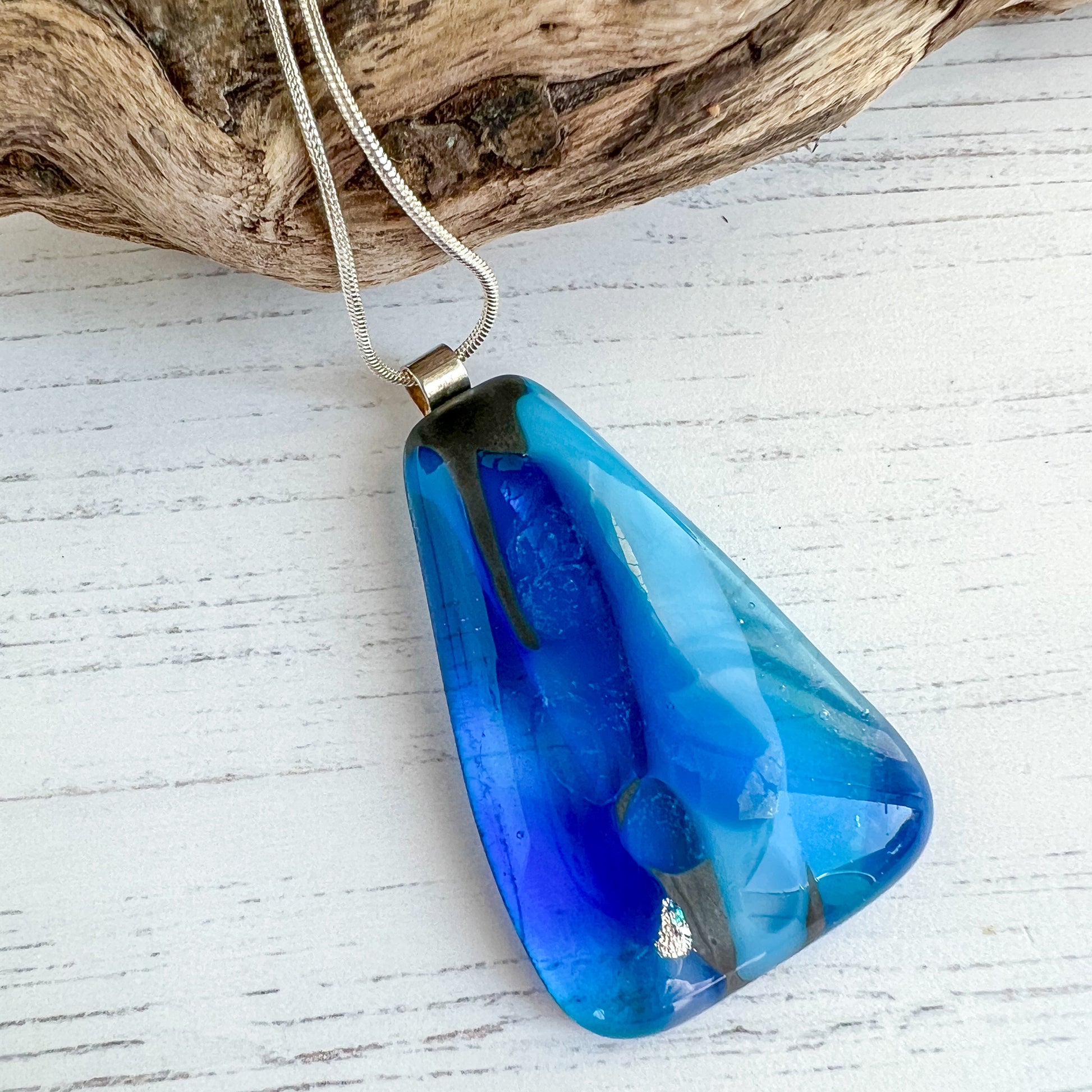 This sea dichroic glass necklace eight is a handmade necklace inspired by my local beaches.