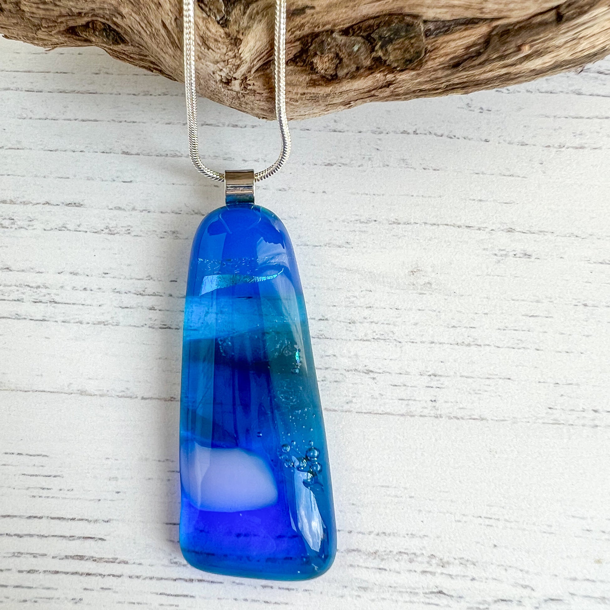 This sea dichroic glass necklace is a handmade necklace inspired by my local beaches.