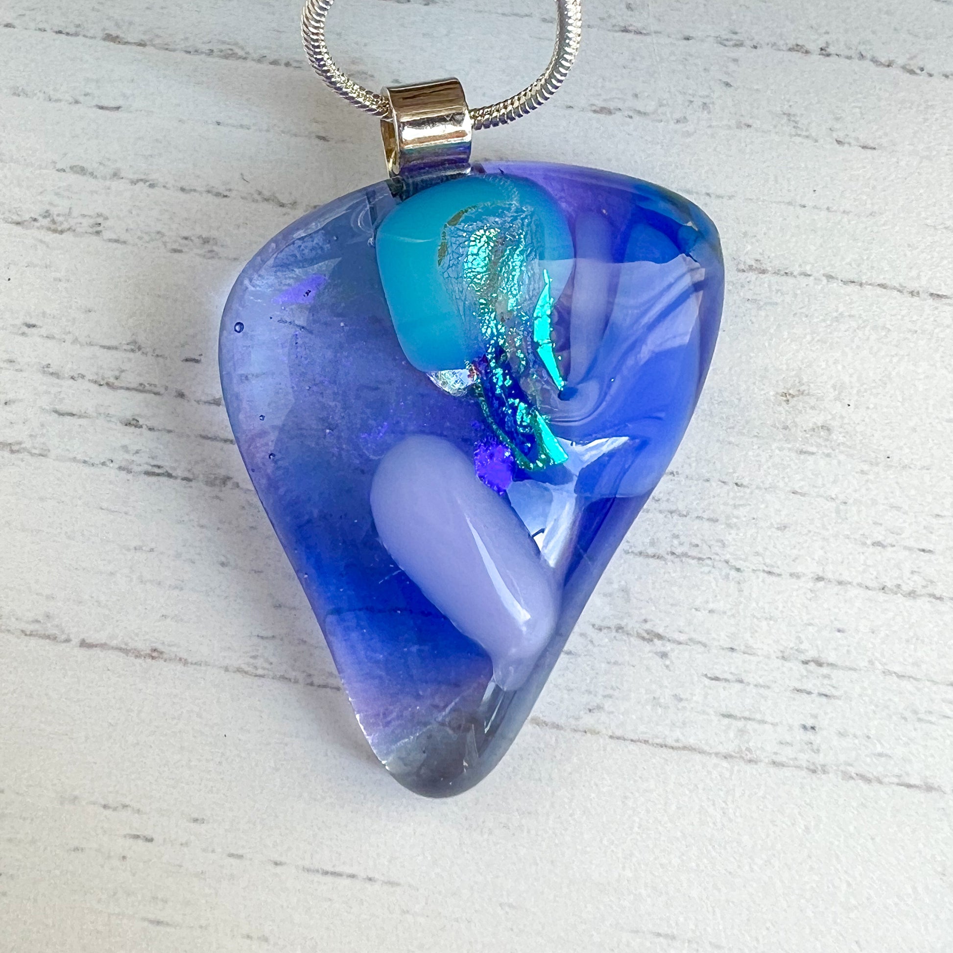 This sea dichroic glass necklace four is a handmade necklace inspired by my local beaches.
