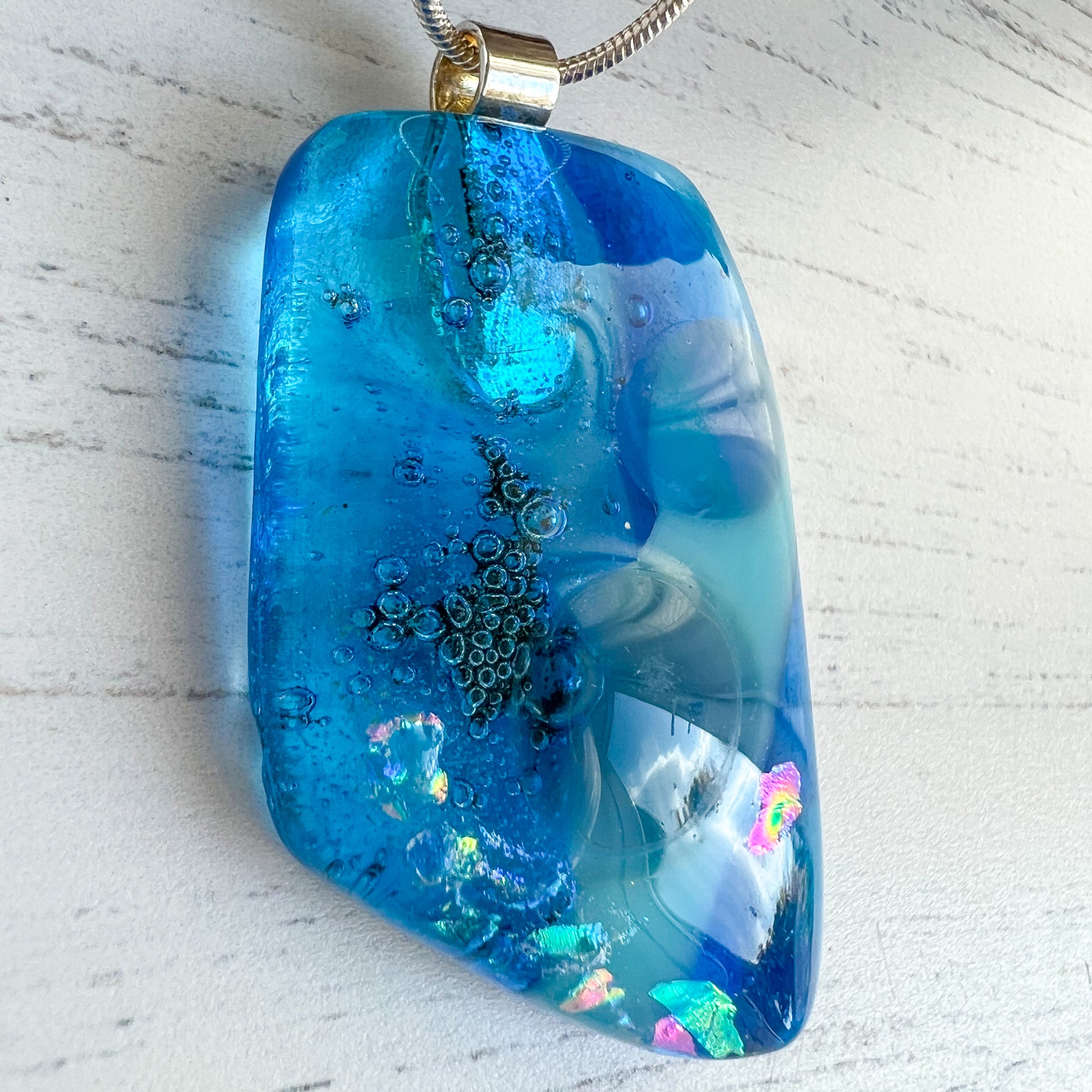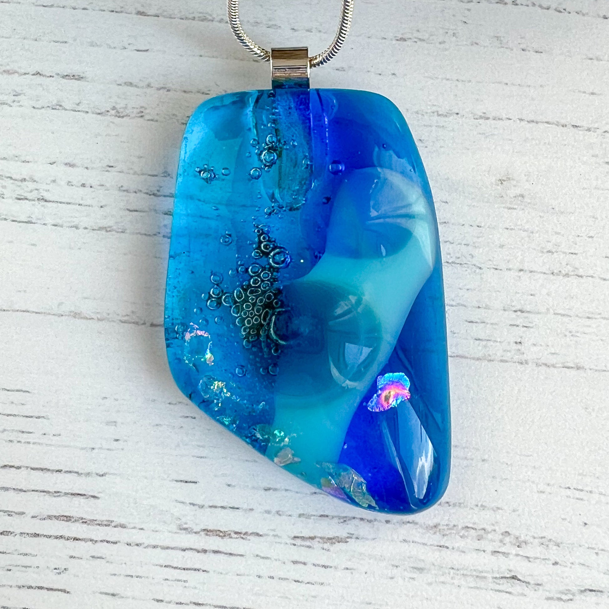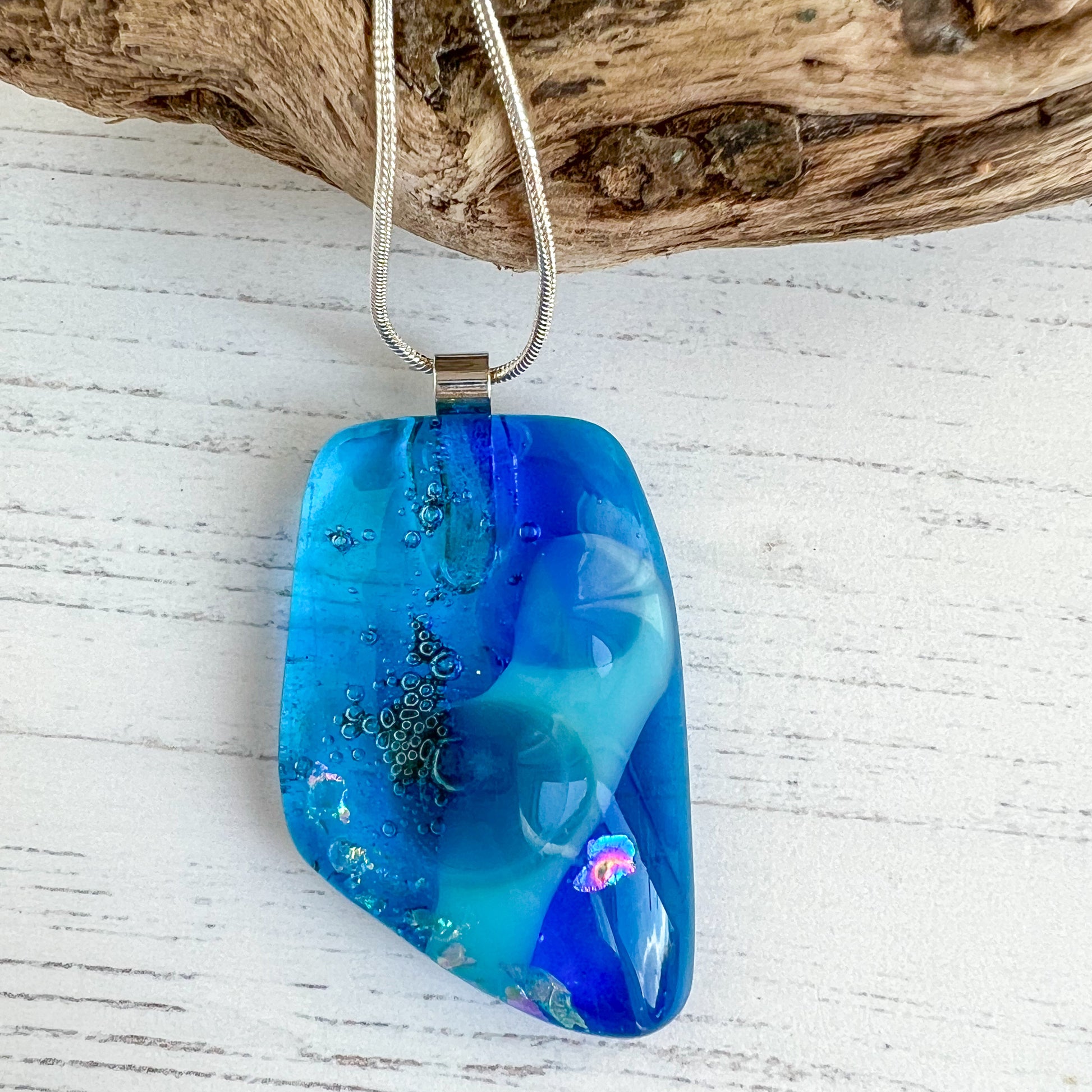 This sea dichroic glass necklace is a handmade necklace inspired by my local beaches.