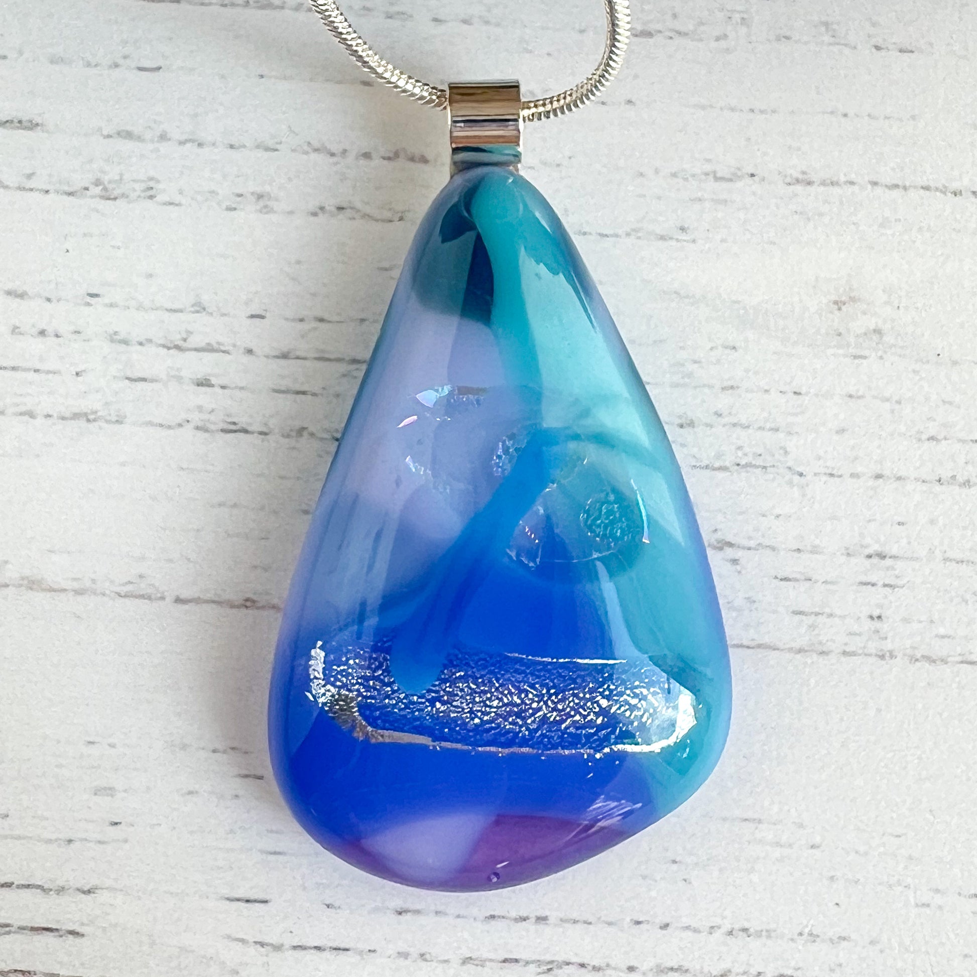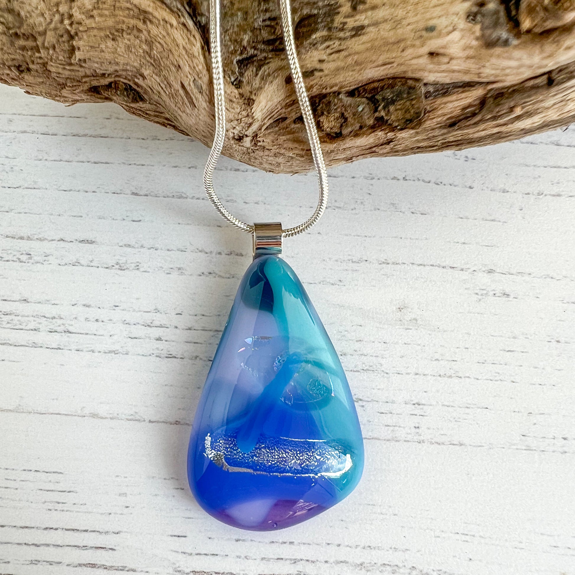 This sea dichroic glass necklace is a handmade necklace inspired by my local beaches.