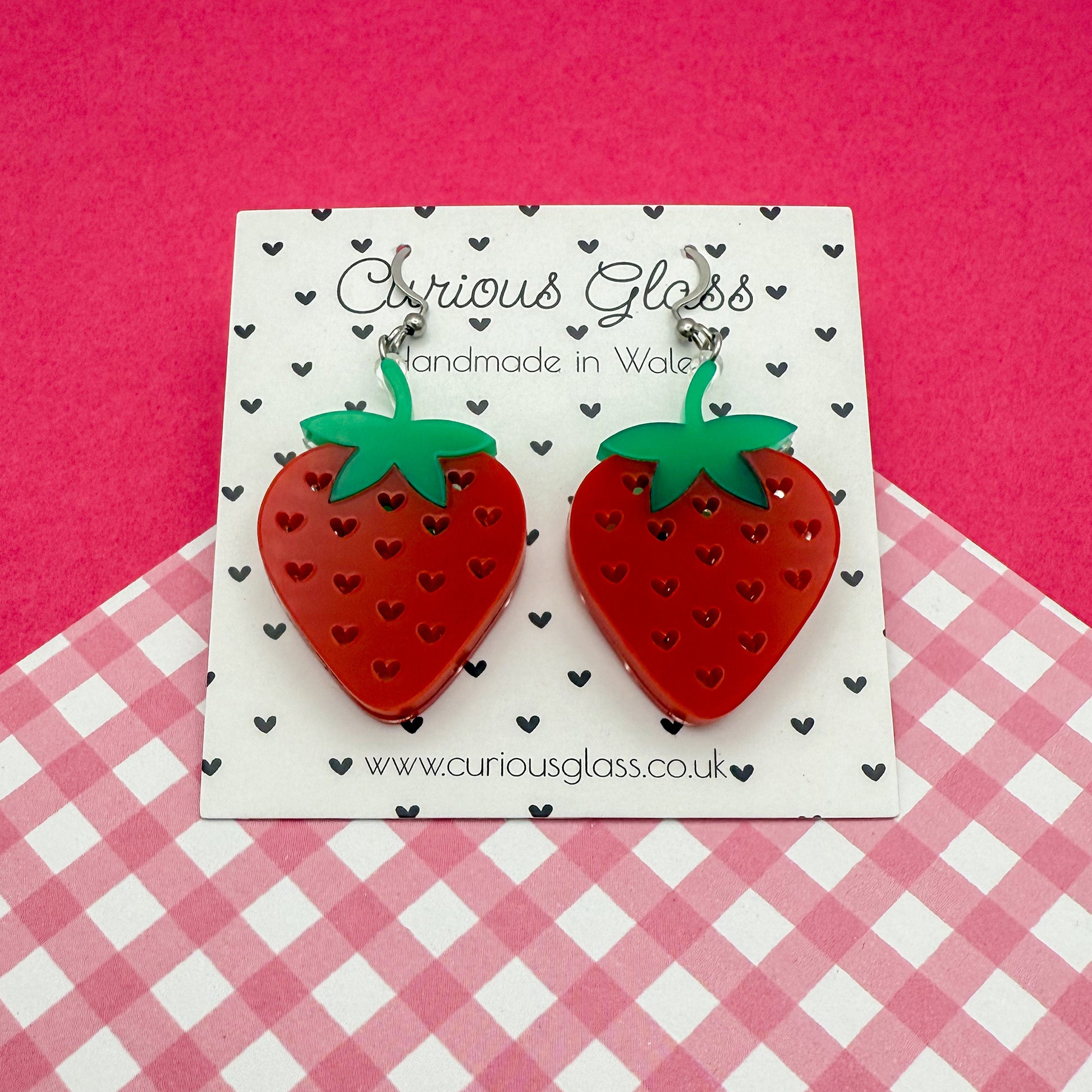 These strawberry earrings are sweet, cheeky little treats for your ears. A small tuft of leaves tops off the red berry, which has hearts dotted throughout for a playful twist. They’re fruity, flirty, and guaranteed to add a pop of joy and quirkiness to any outfit.
